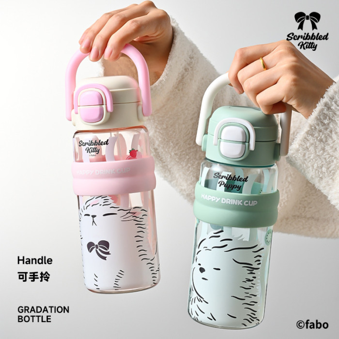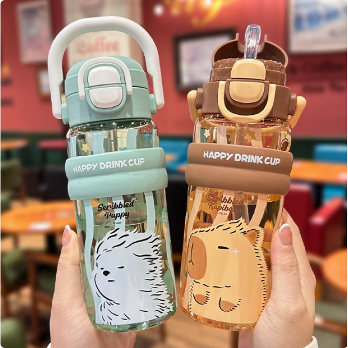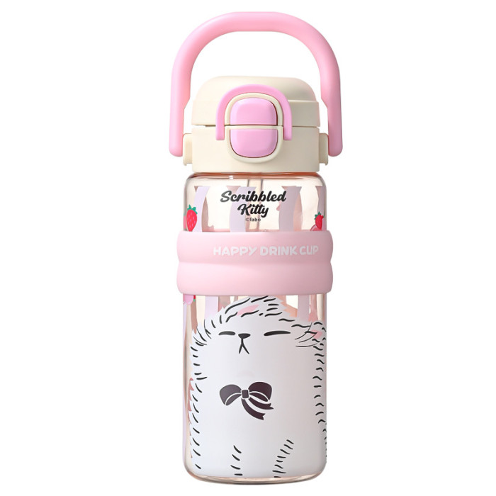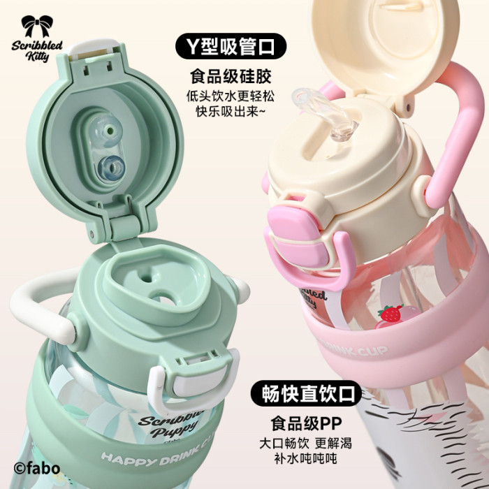 卡通提手隨手塑膠杯夏季戶外學生雙飲吸管杯可攜式大容量太空杯