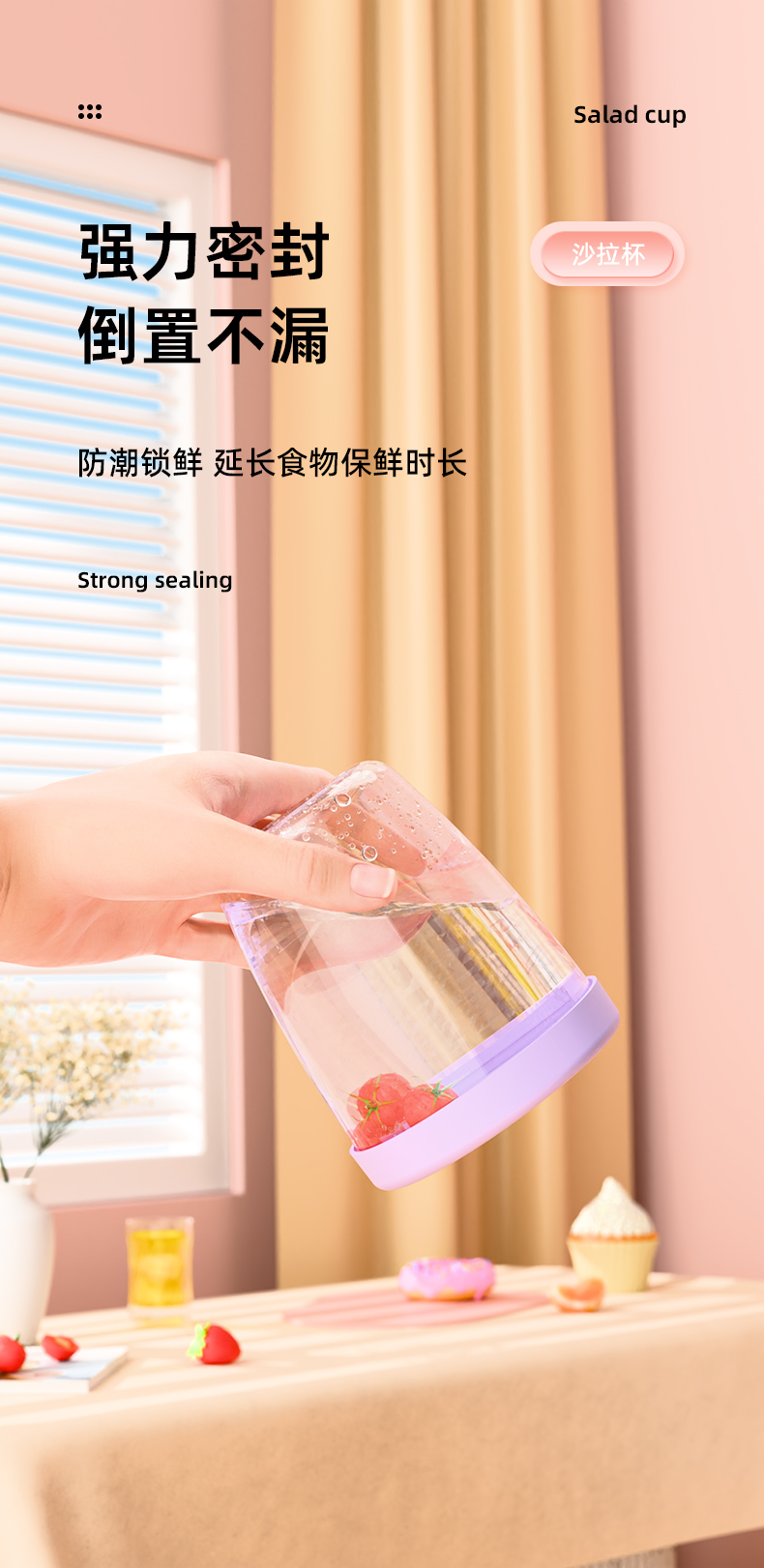 高顔值可瀝水果杯可攜式帶叉子外帶早餐碗沙拉燕麥酸牛奶杯便當盒