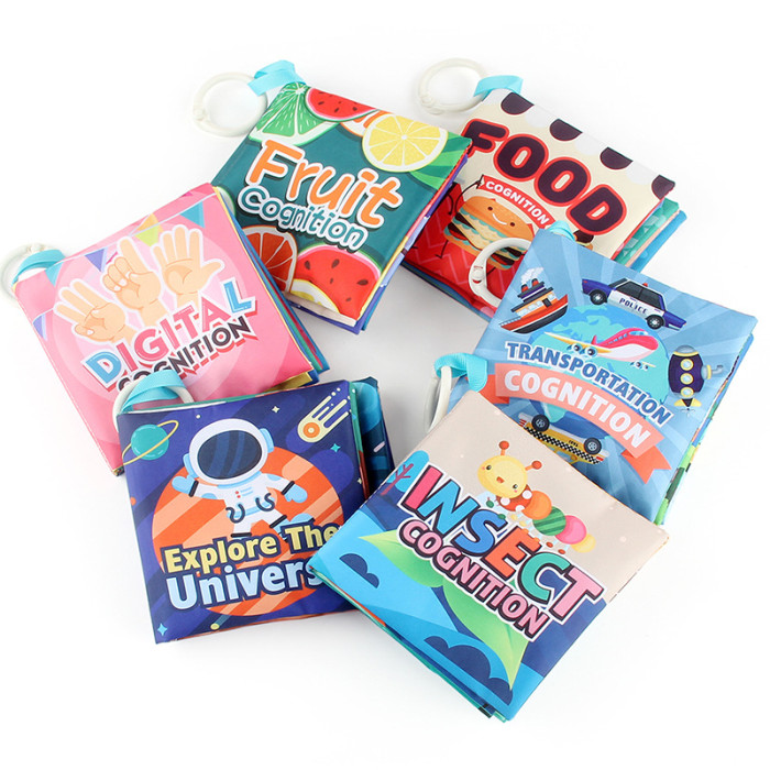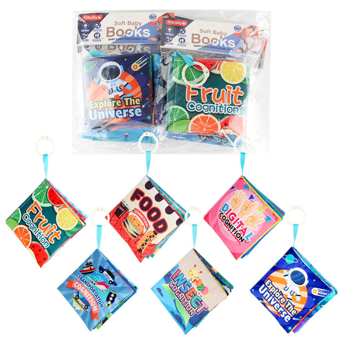 嬰兒撕不爛布書 6頁12面早教認知布書玩具可水洗1套6本
