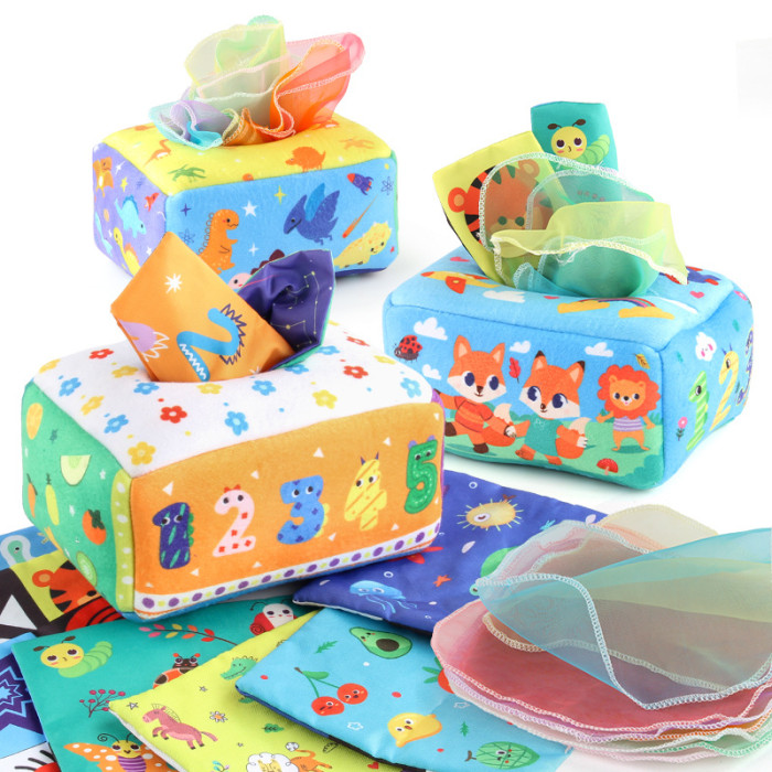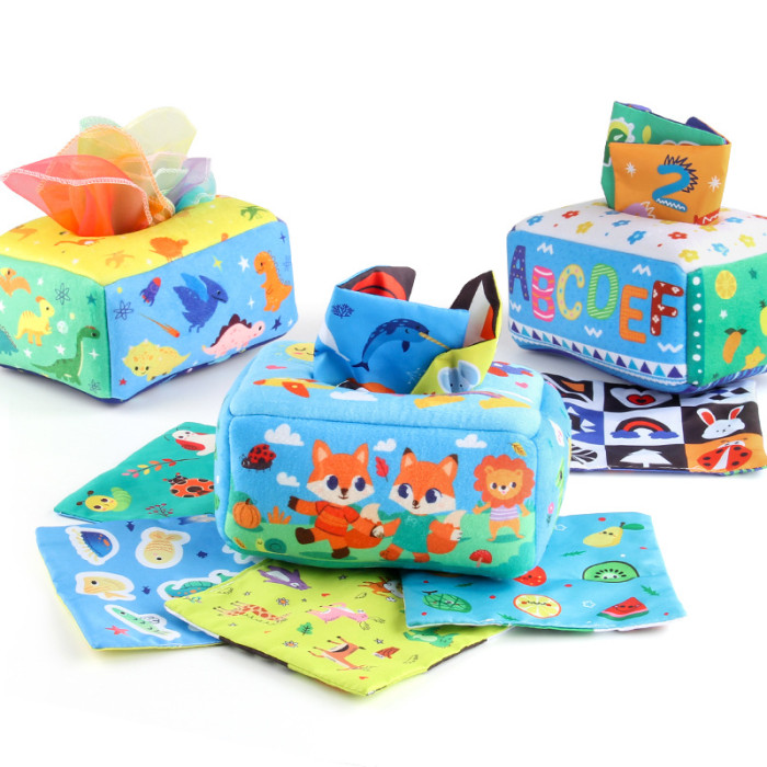 12件套寶寶布書紙巾盒套裝 動物海洋布書早教益智嬰兒玩具