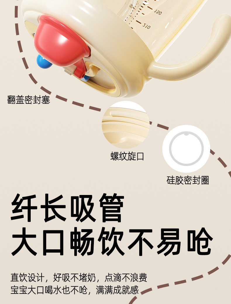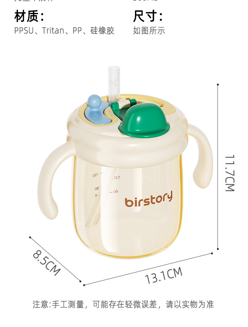 兒童牛奶杯ppsu奶瓶直飲水杯寶寶喝奶吸管杯刻度雙飲學飲杯1-3嵗