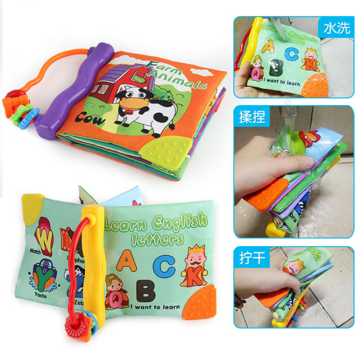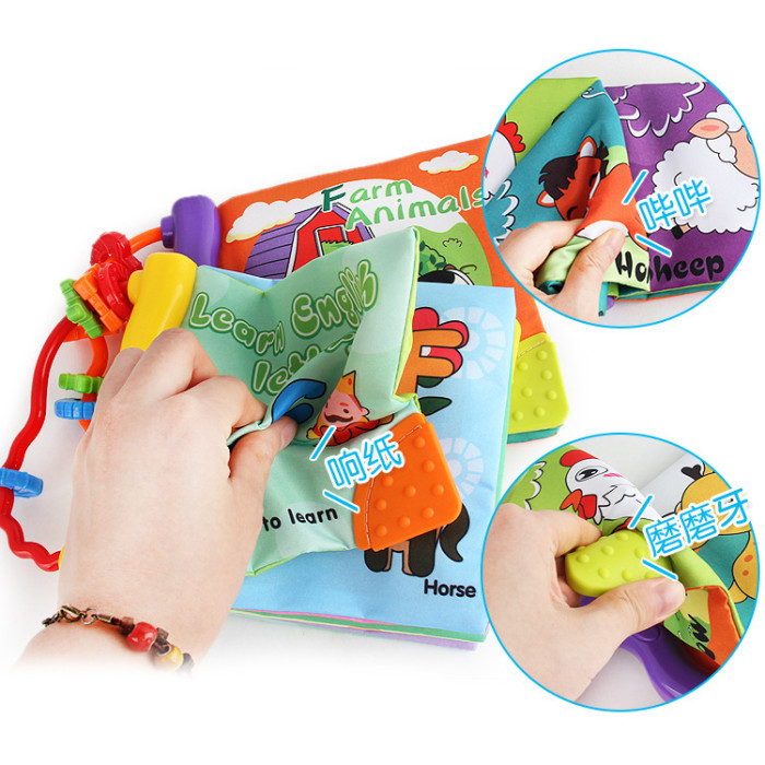 嬰幼兒早教益智英文動物認知布書帶響紙BB器寶寶手掌書帶牙膠