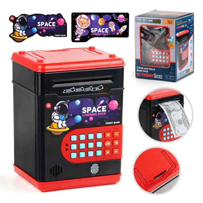大容量指紋儲蓄罐兒童密碼箱 帶音樂自動卷錢存錢罐創意