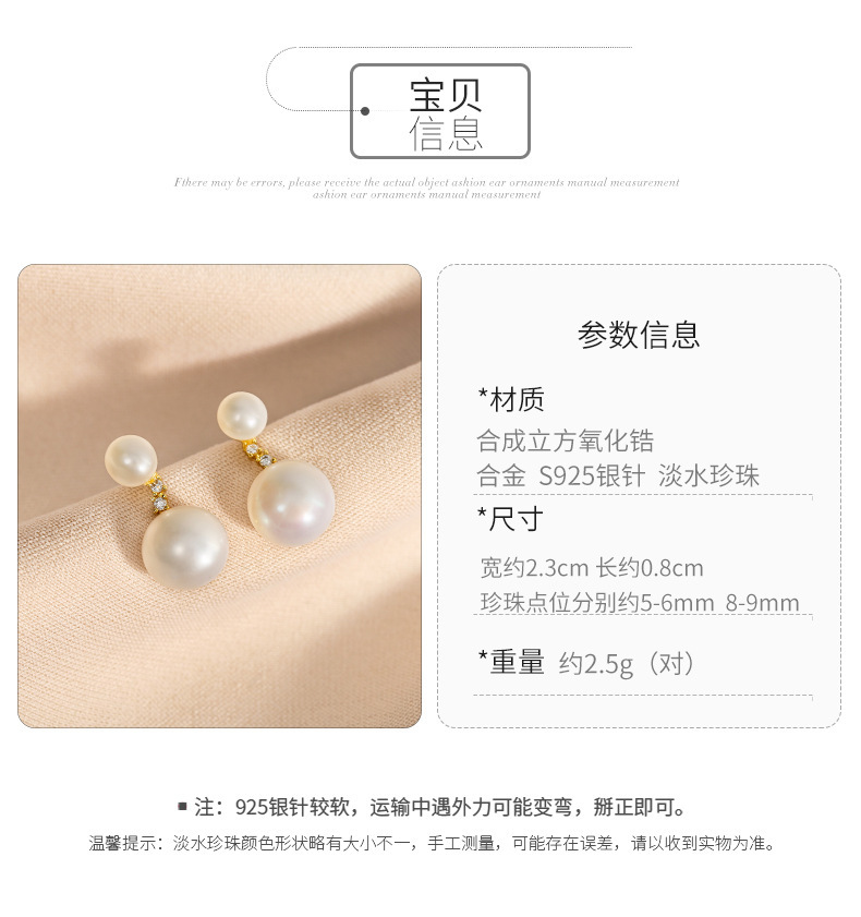 925銀針淡水珍珠時尚耳環氣質高級感耳墜2023新款潮網紅簡約耳飾