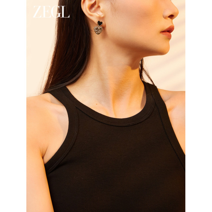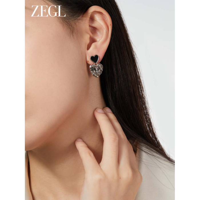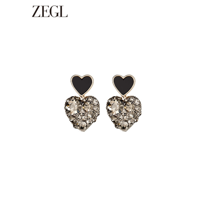 ZEGL法式黑色愛心耳環女新款爆款耳墜高級耳釘復古銀針春季耳飾