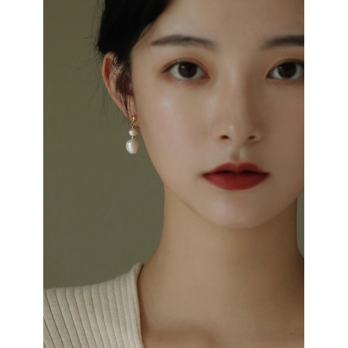 天然珍珠耳夾女福祿夏巴洛克耳環新中式耳釘質感輕奢耳飾復古耳墜