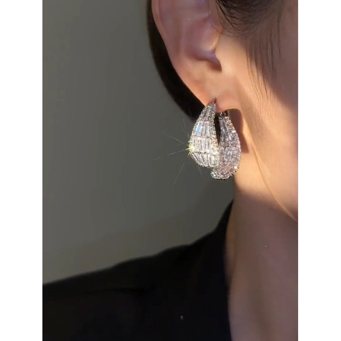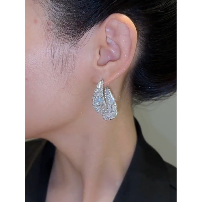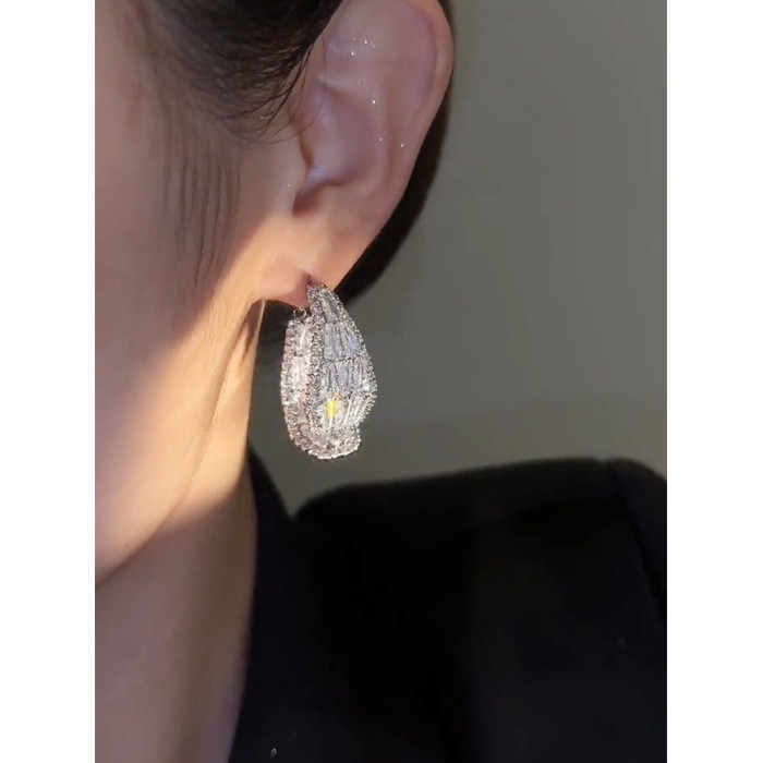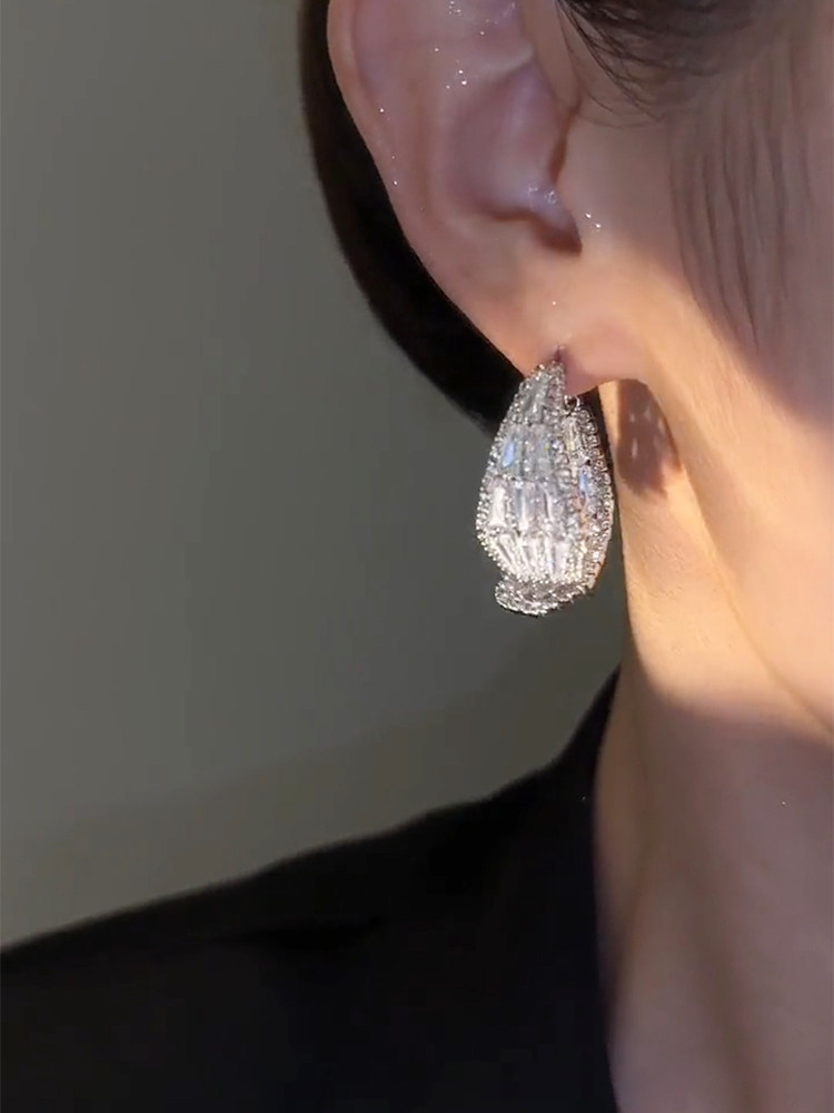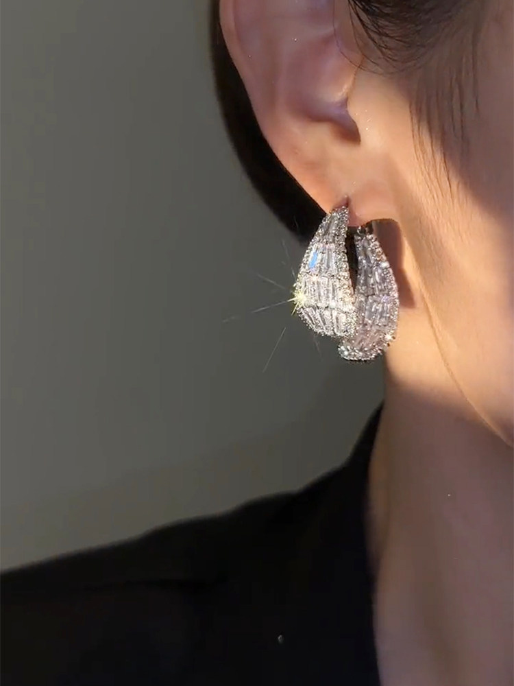 輕奢高級感鋯石交叉耳環女2023年新款爆款潮時尚個性小衆銀針耳飾