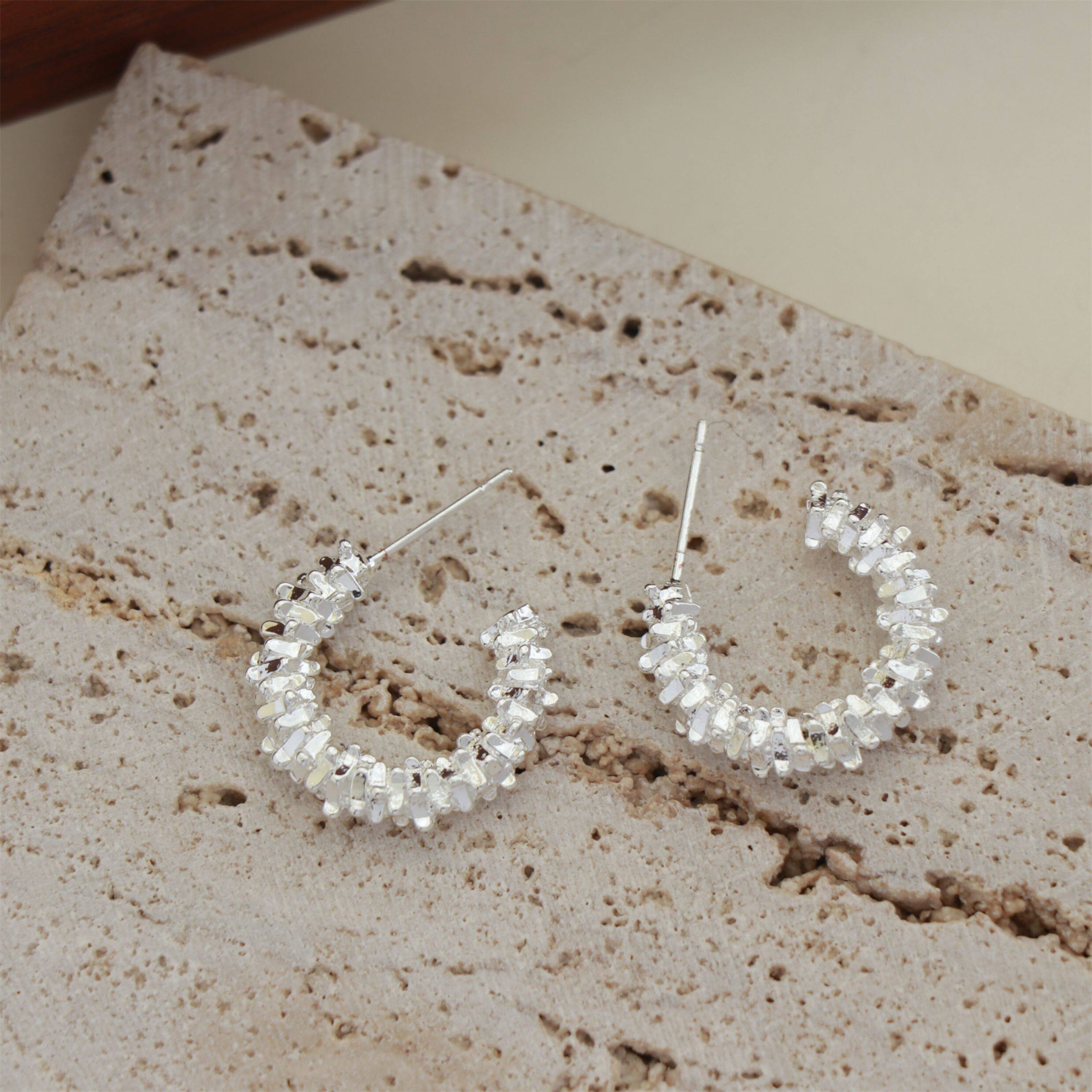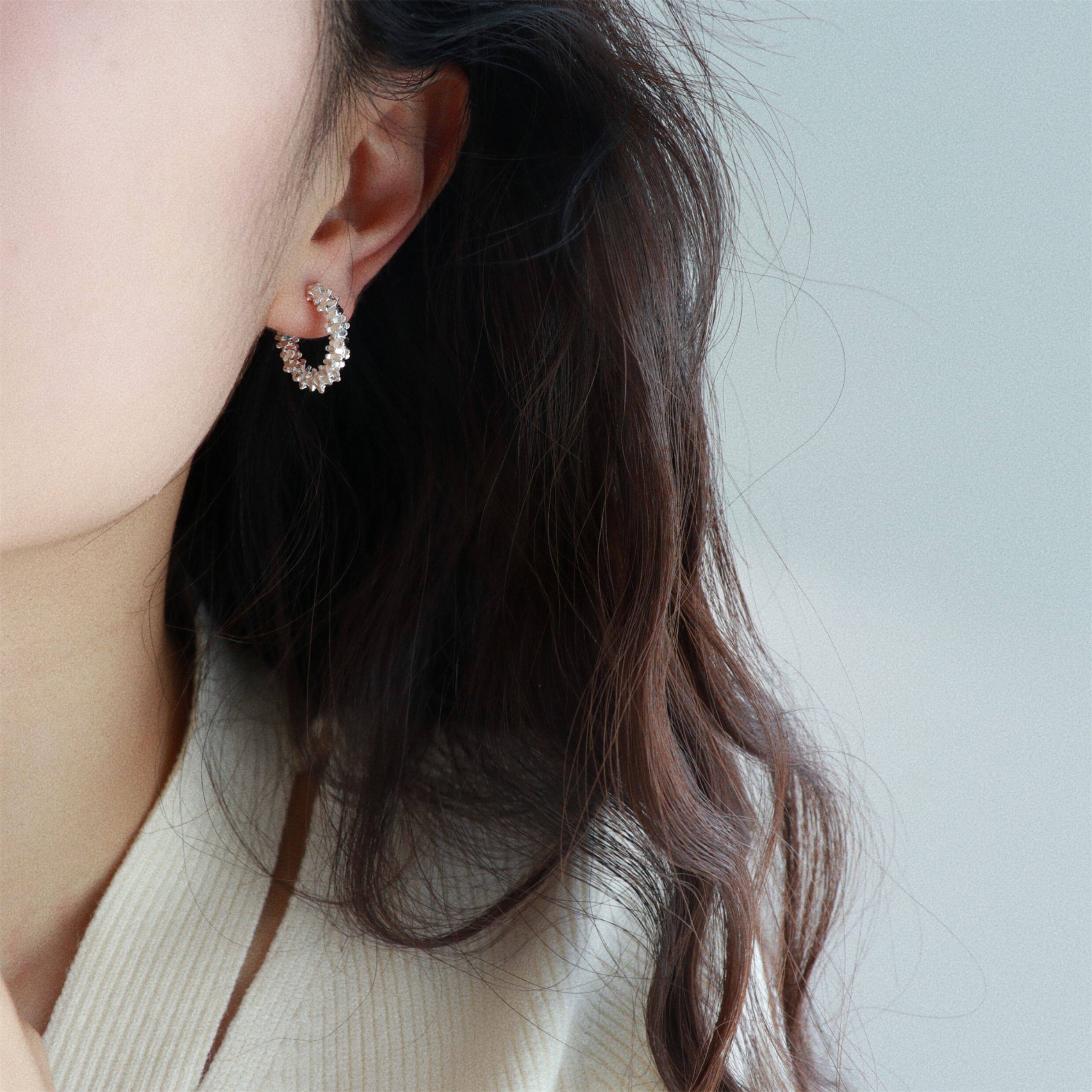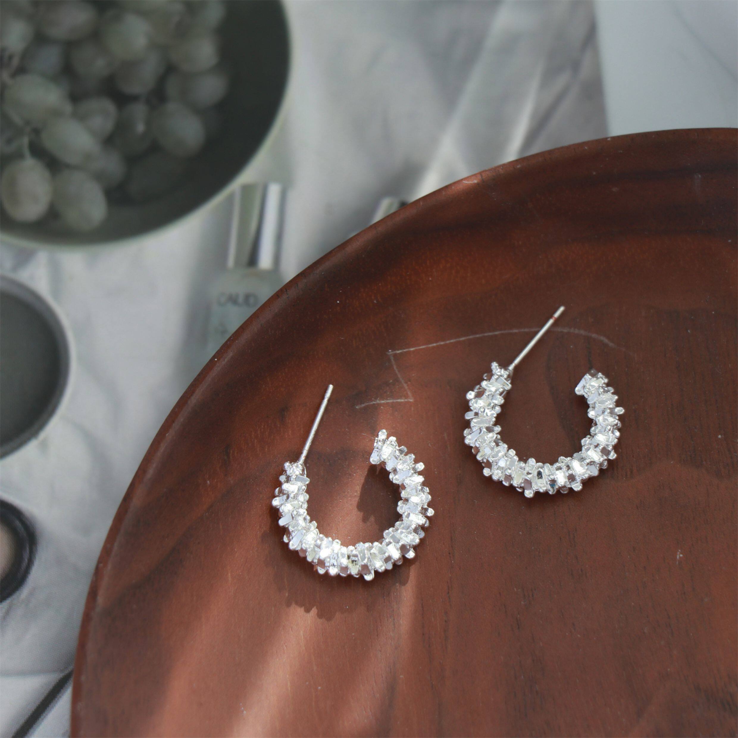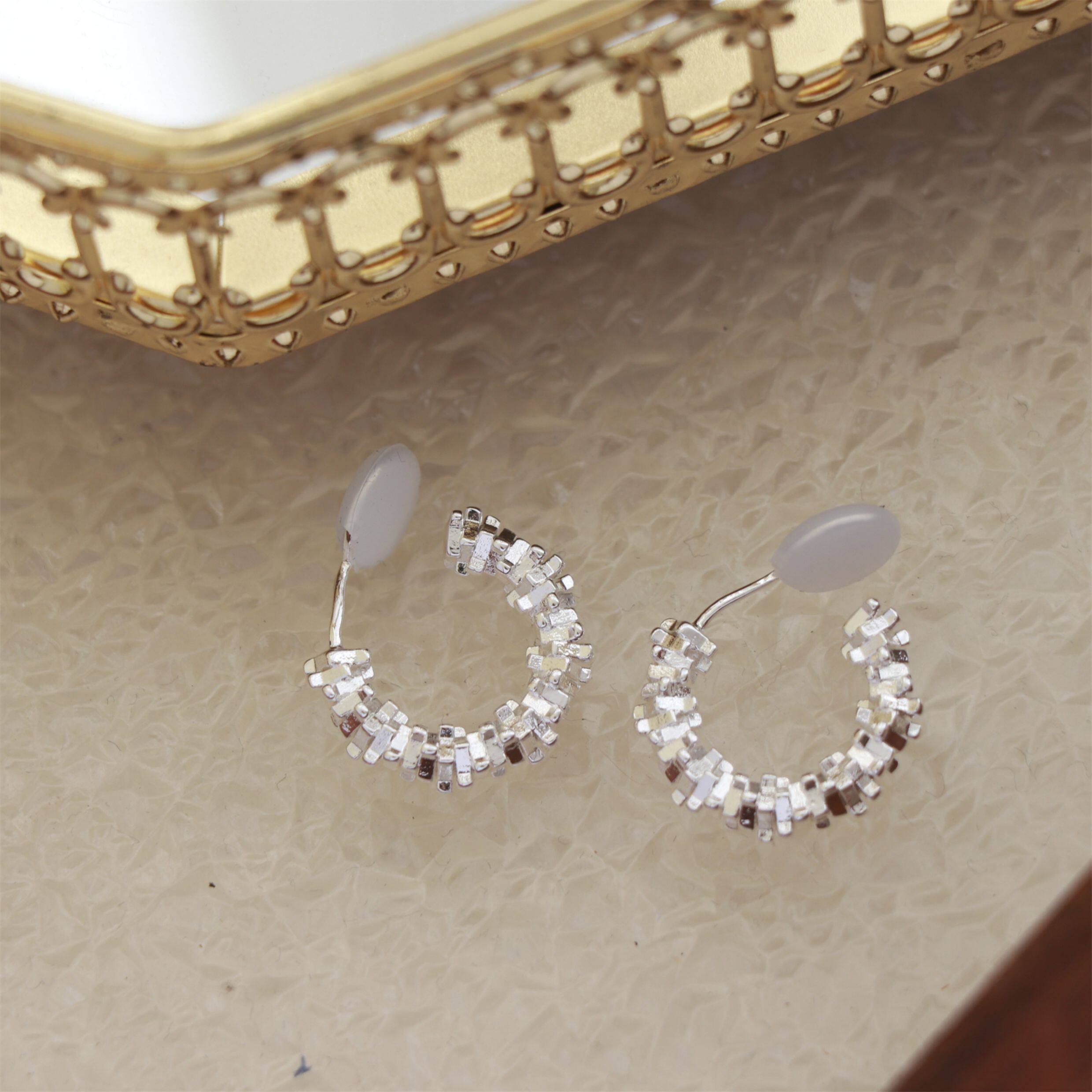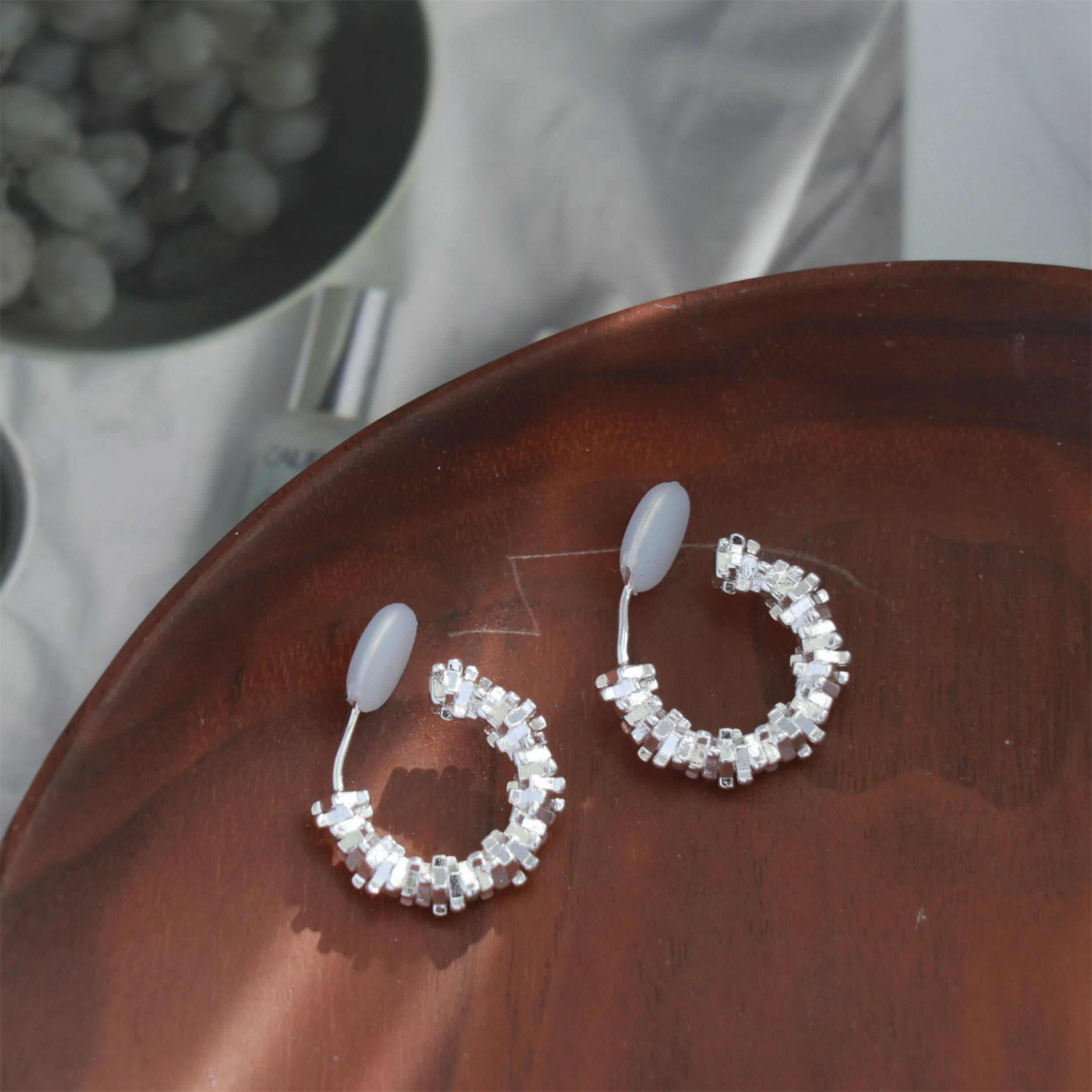 因缺斯汀s925銀針波光粼粼金屬耳圈碎銀子無耳洞蚊香盤耳夾女小衆