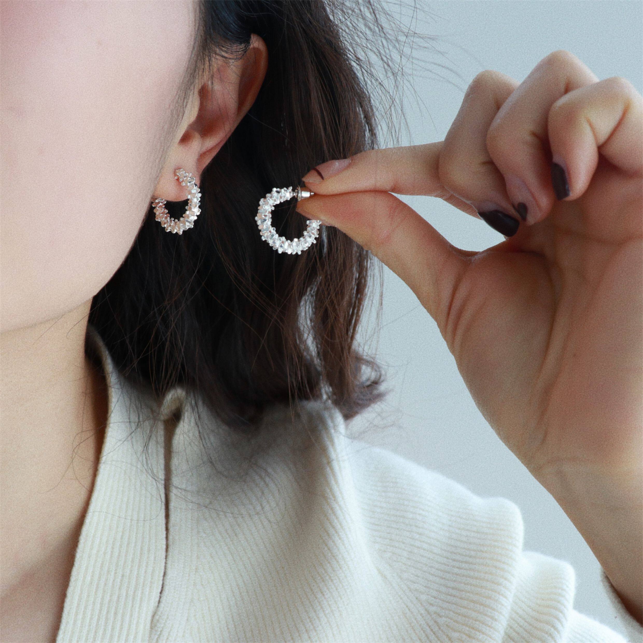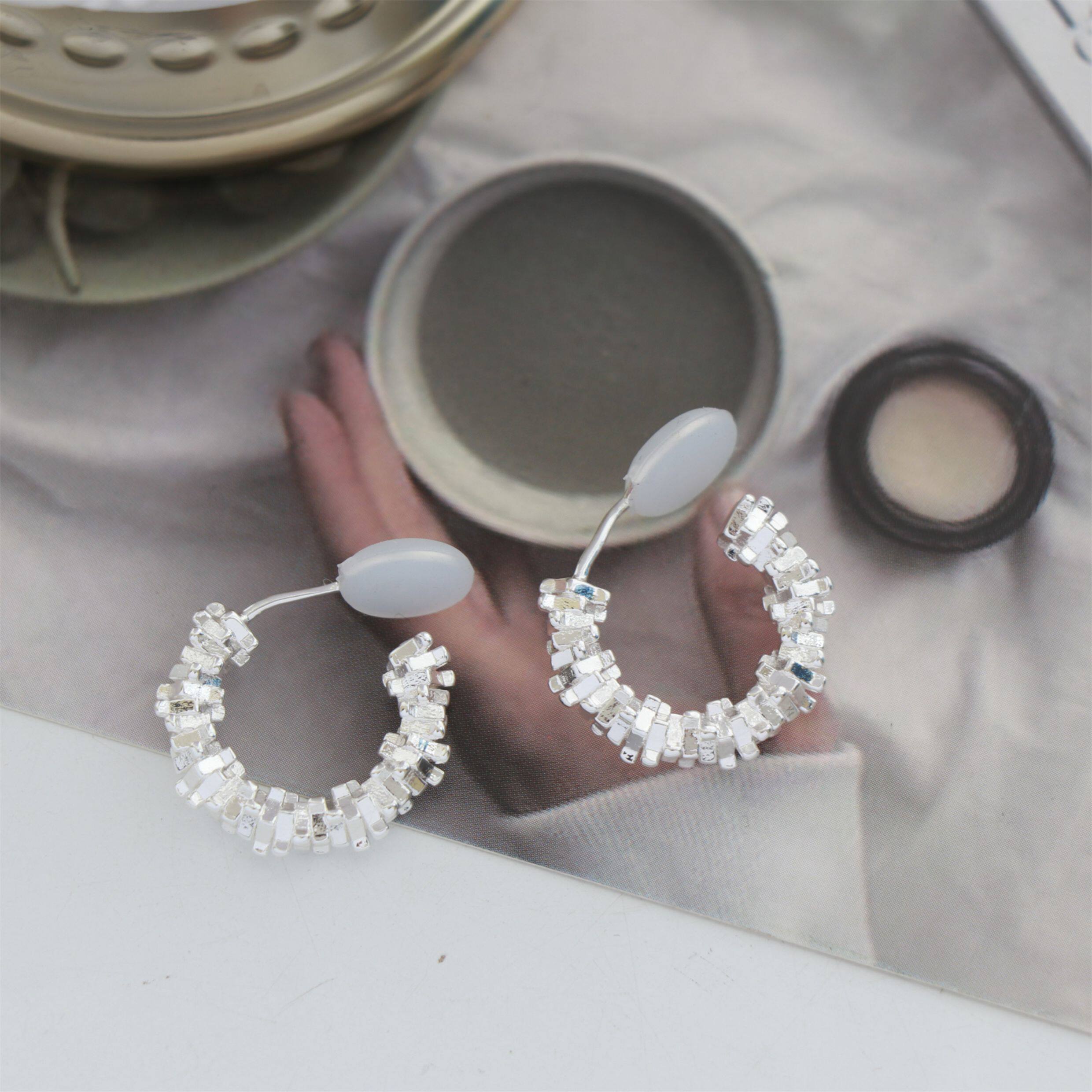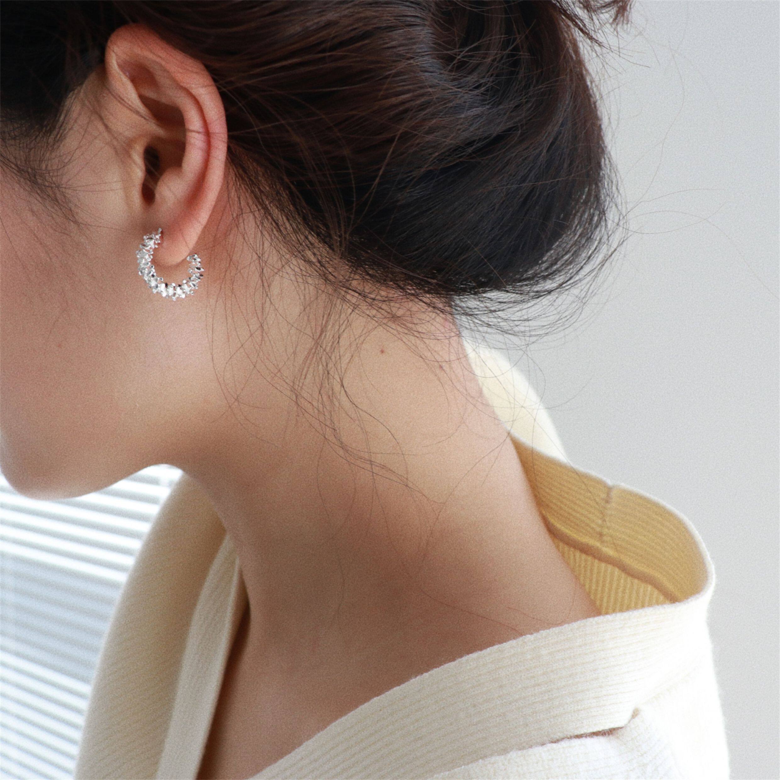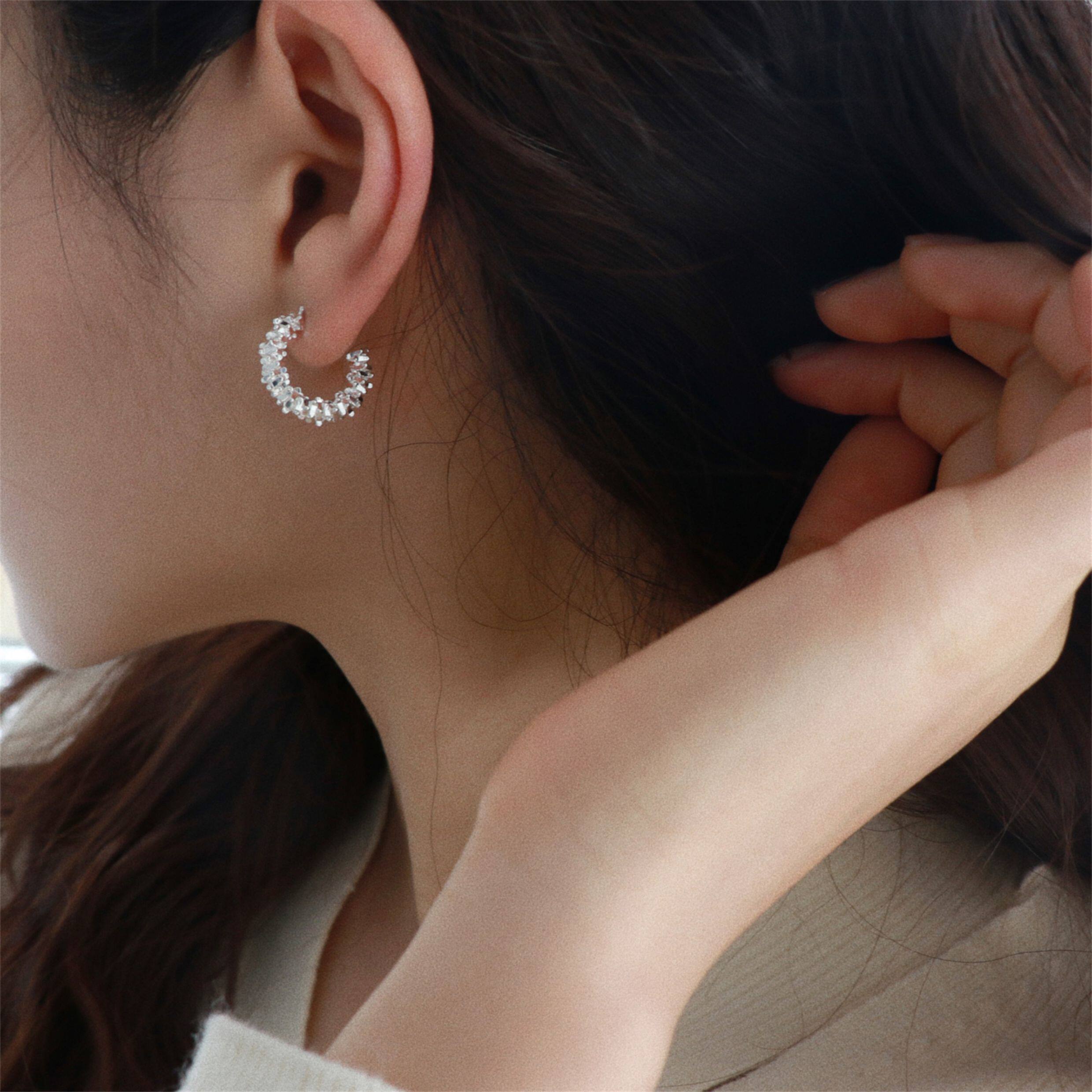 因缺斯汀s925銀針波光粼粼金屬耳圈碎銀子無耳洞蚊香盤耳夾女小衆
