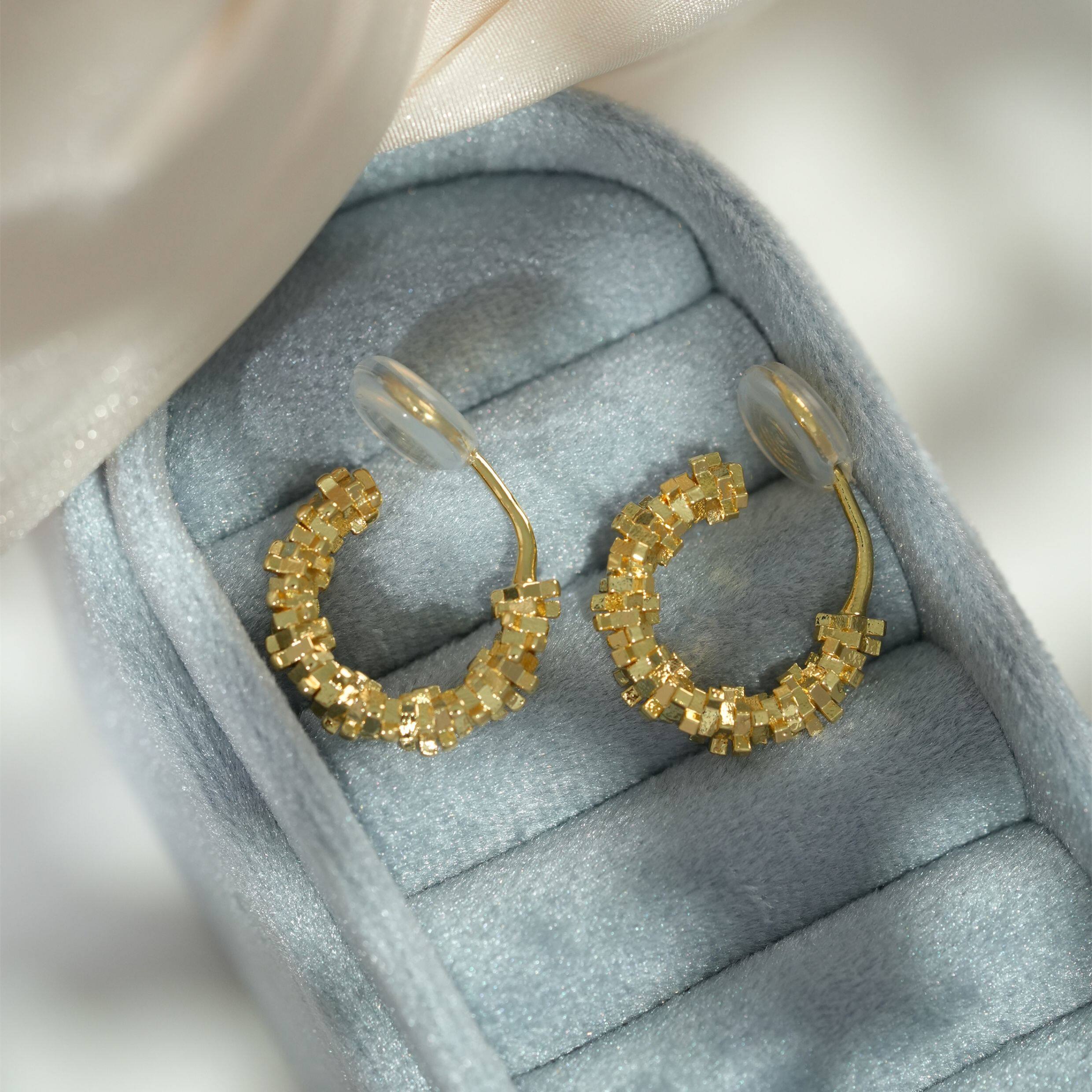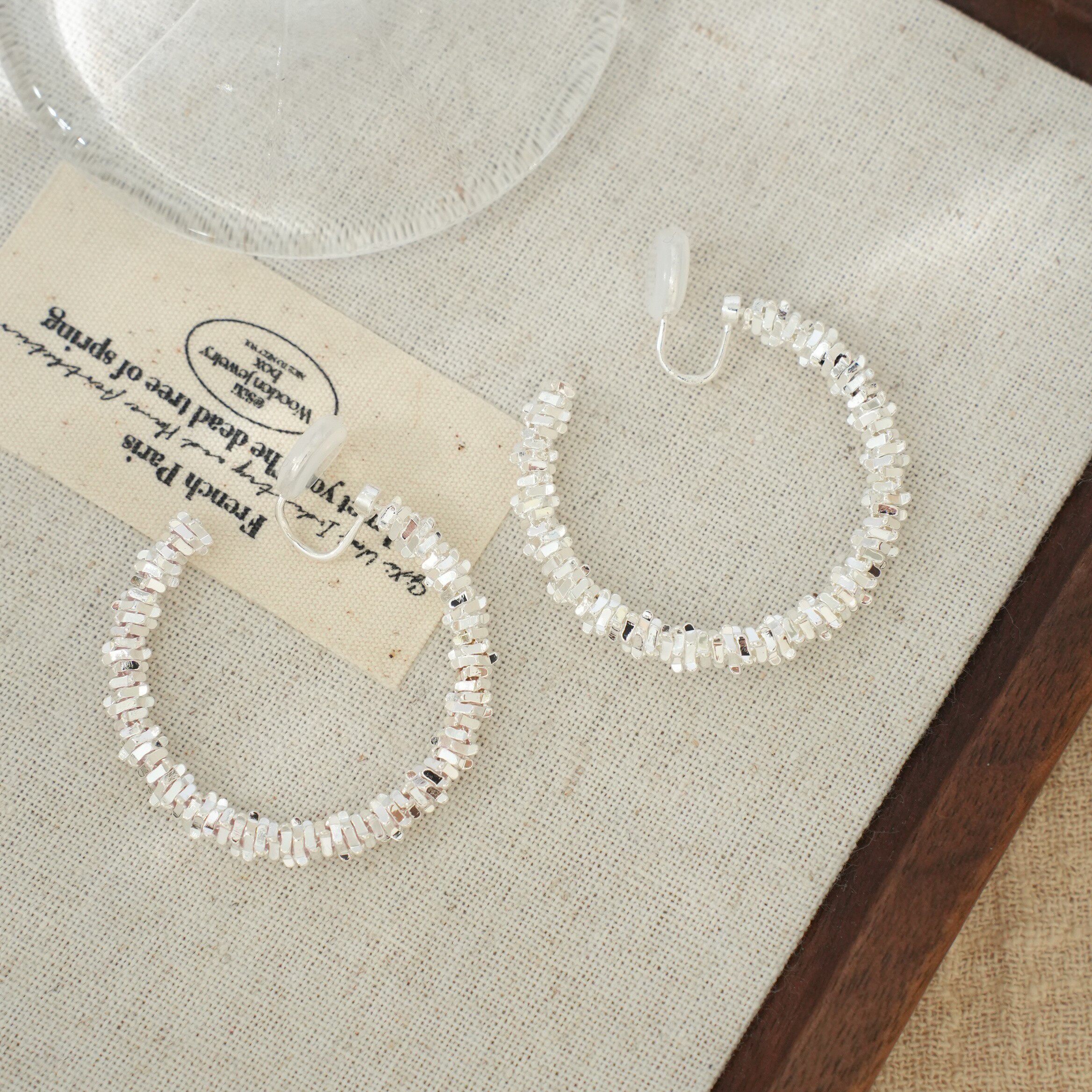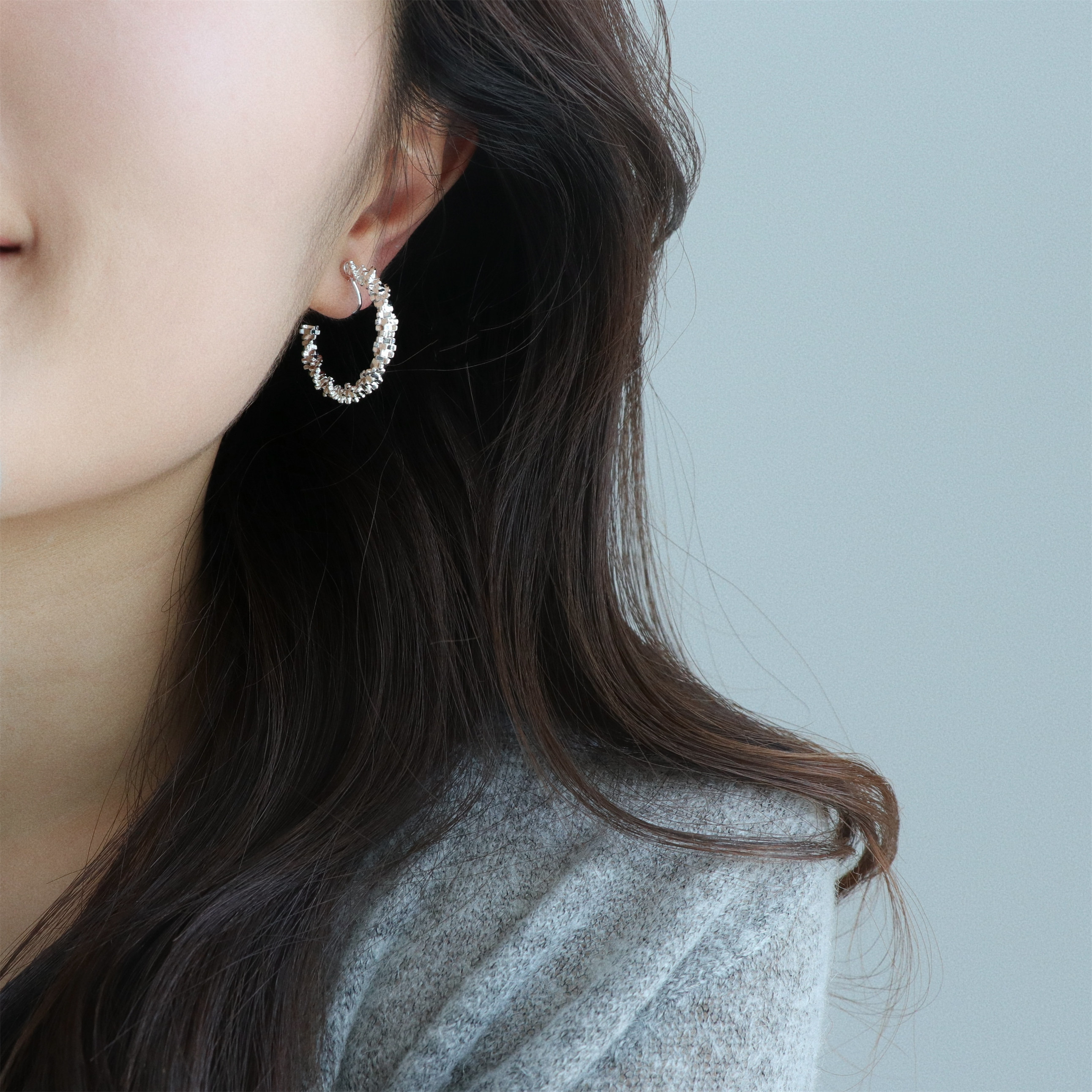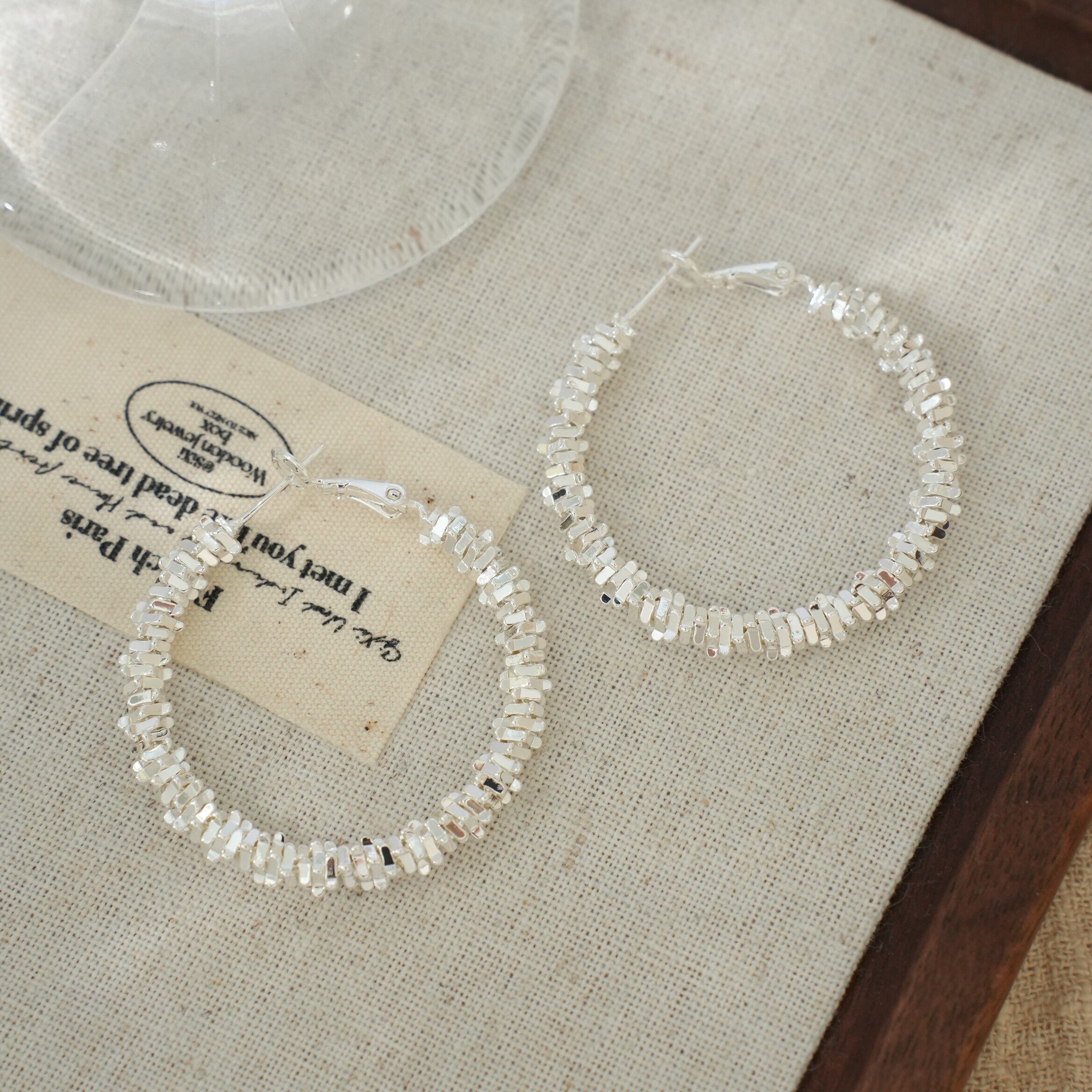 因缺斯汀s925銀針波光粼粼金屬耳圈碎銀子無耳洞蚊香盤耳夾女小衆
