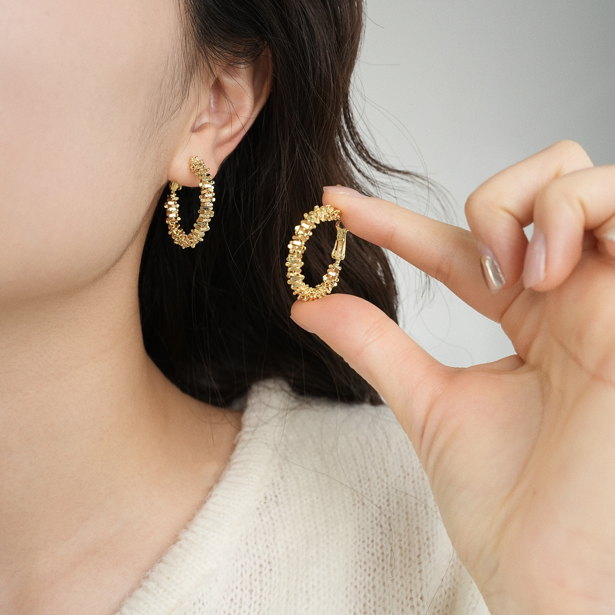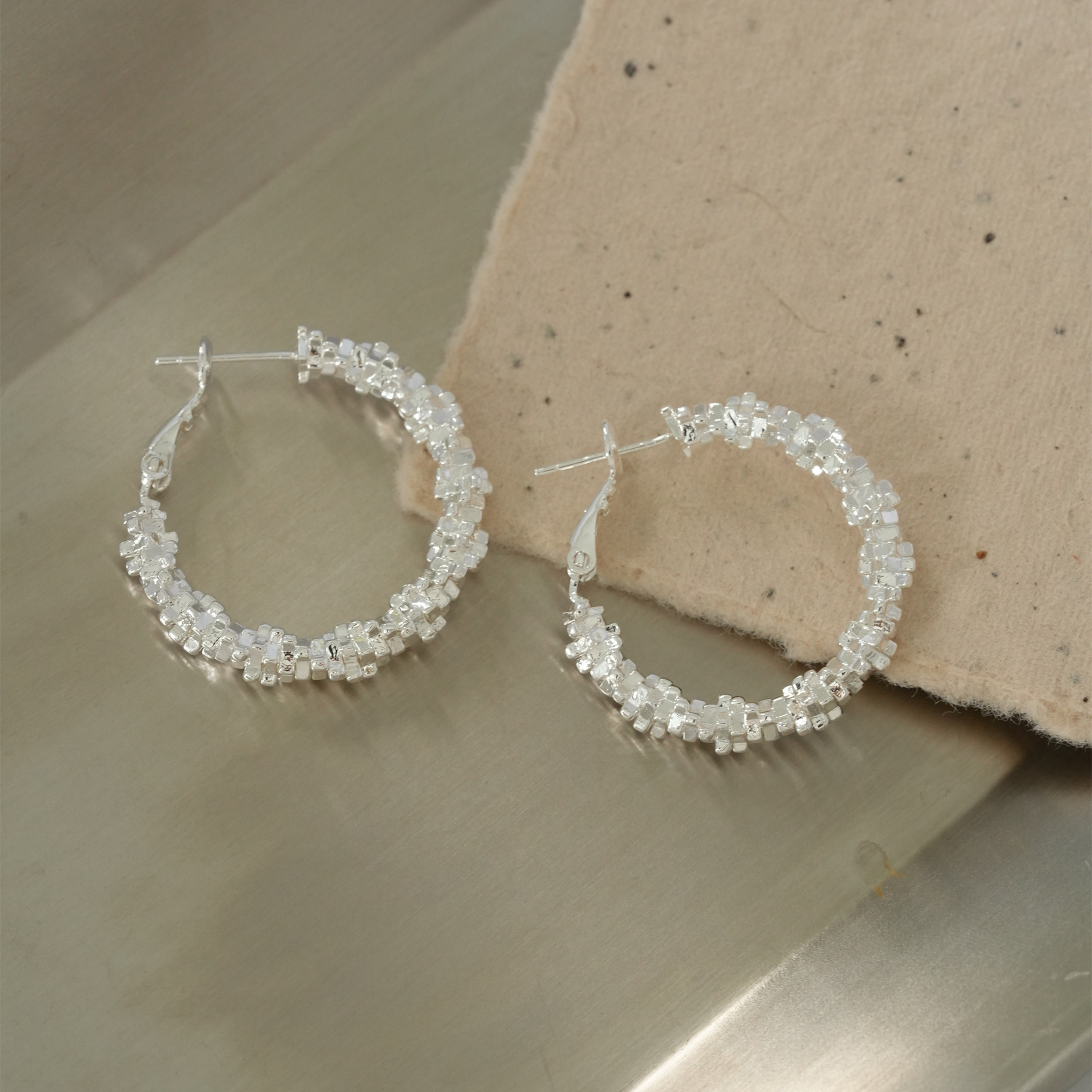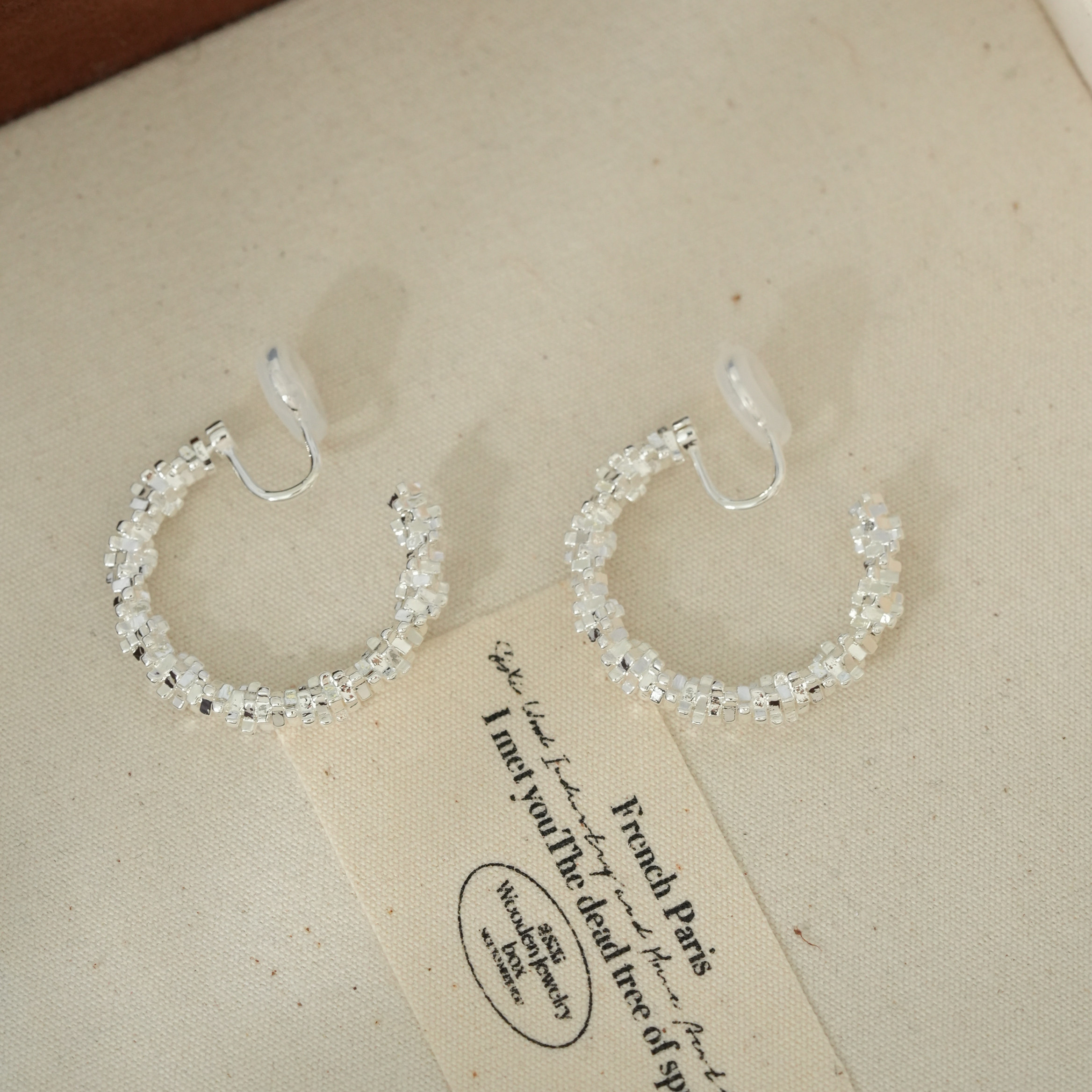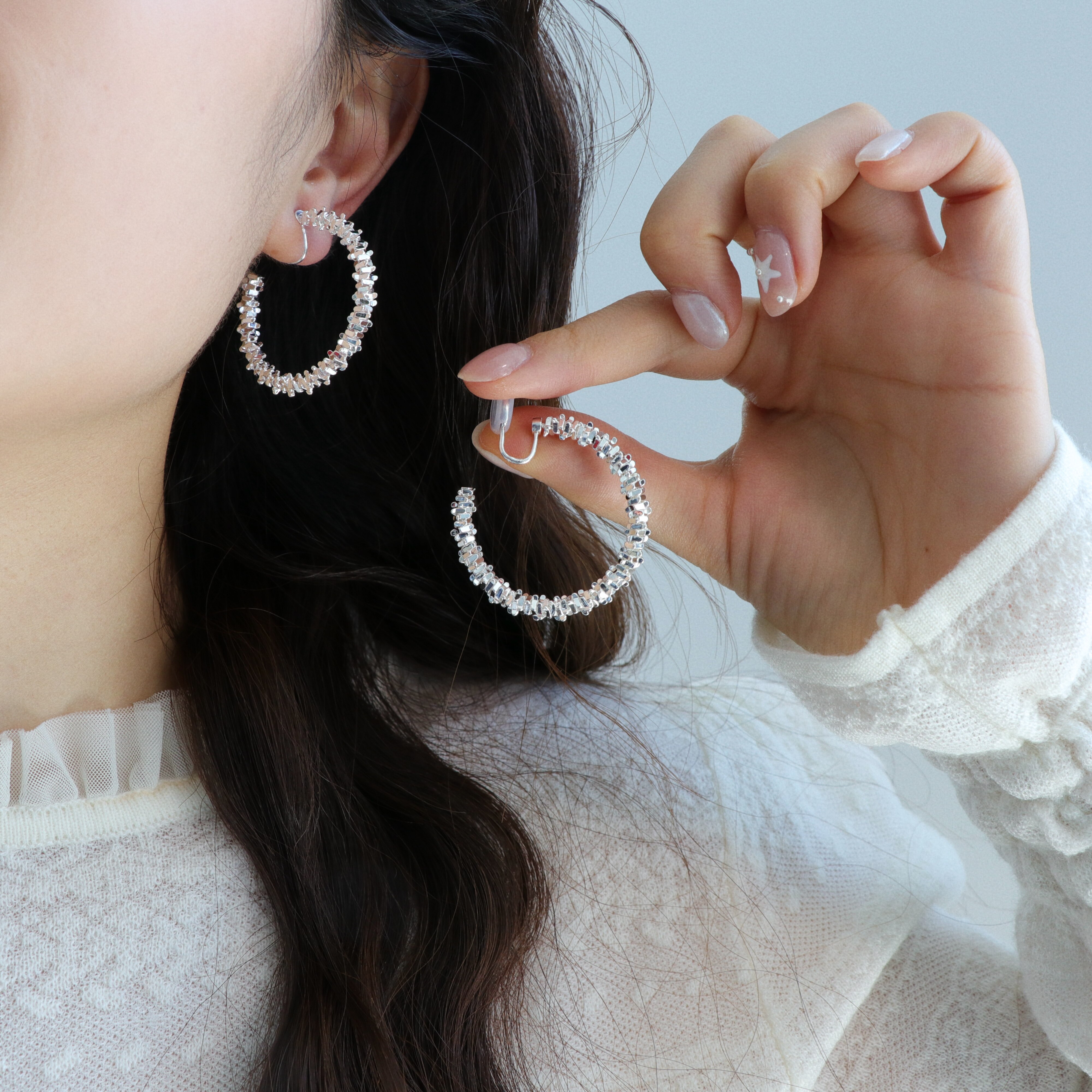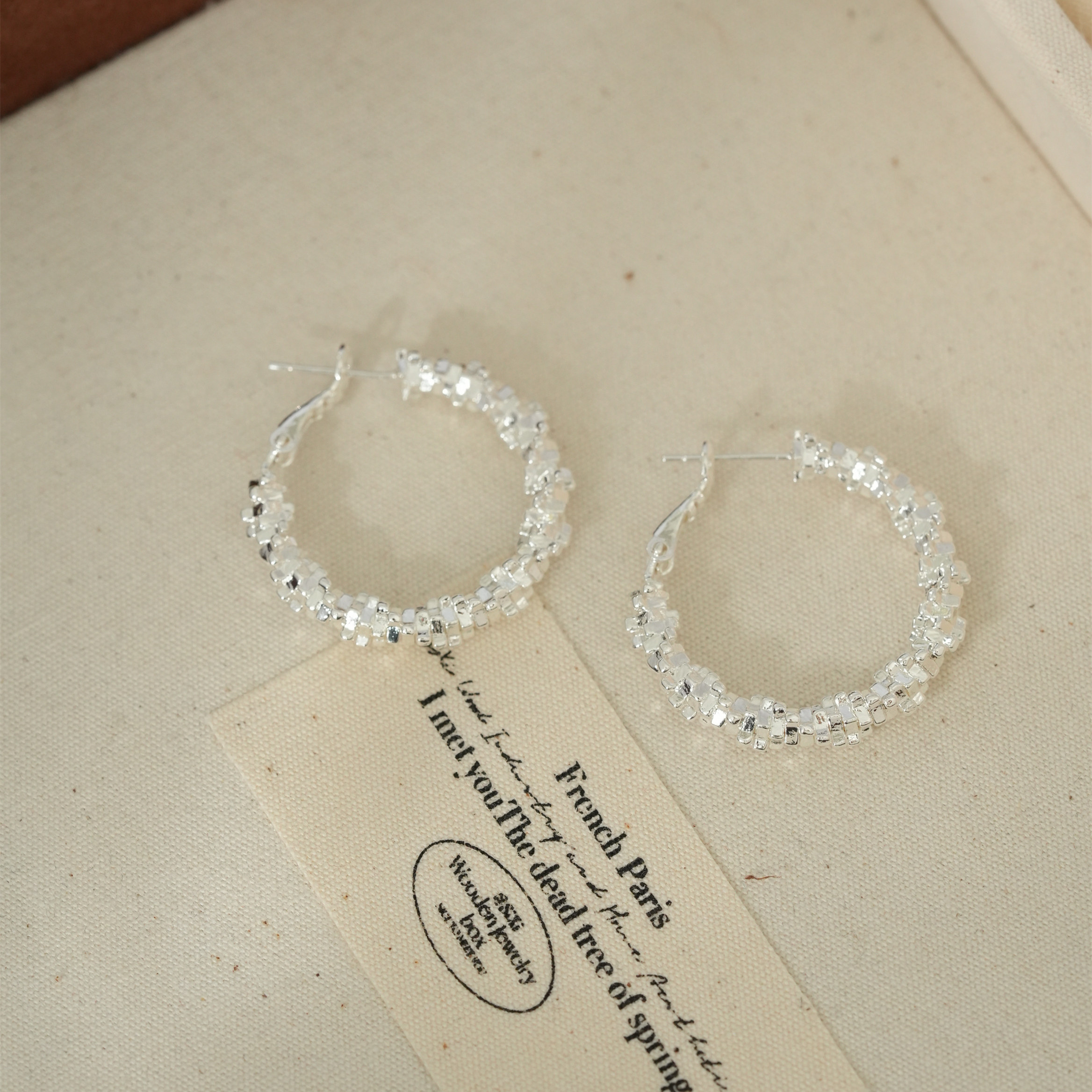 因缺斯汀s925銀針波光粼粼金屬耳圈碎銀子無耳洞蚊香盤耳夾女小衆