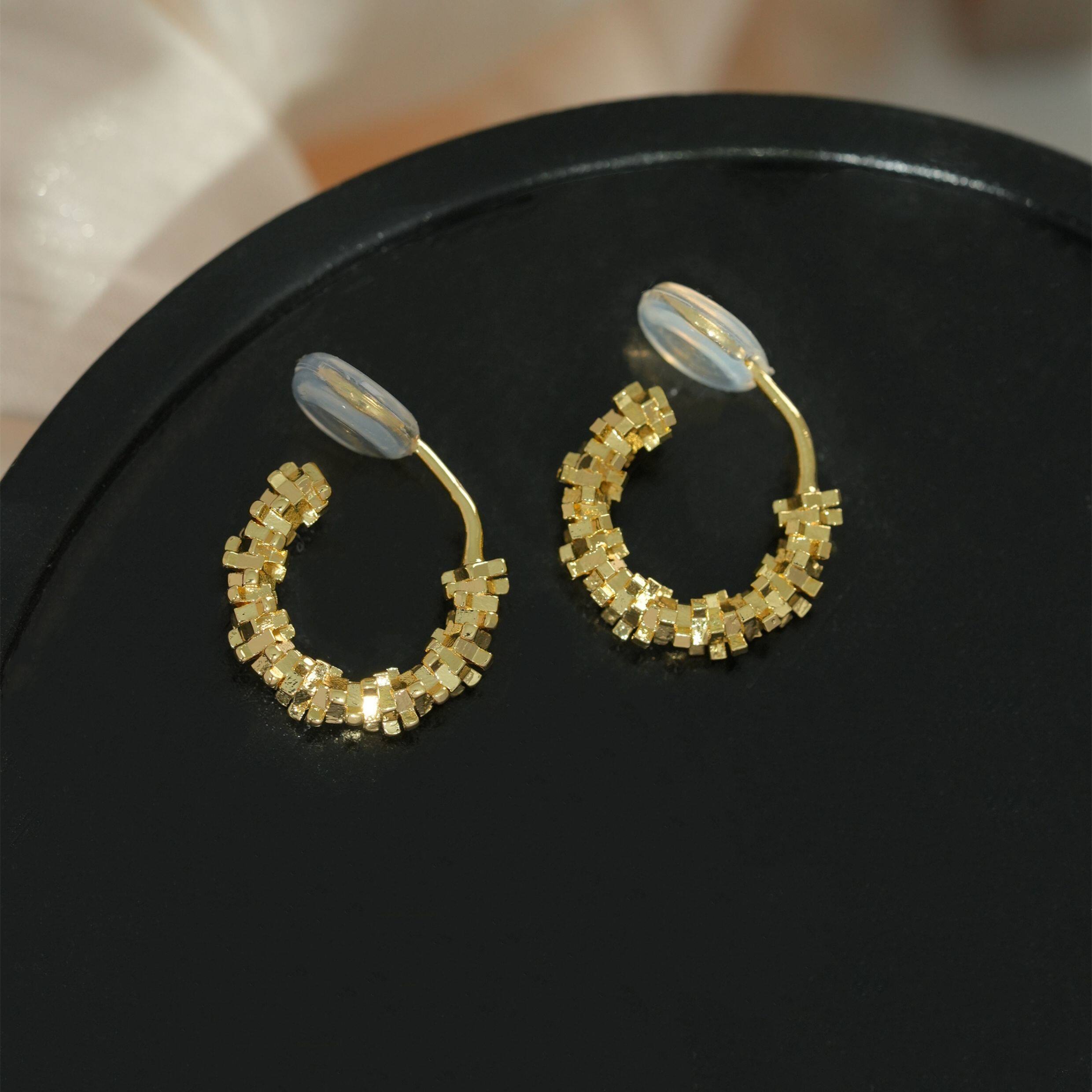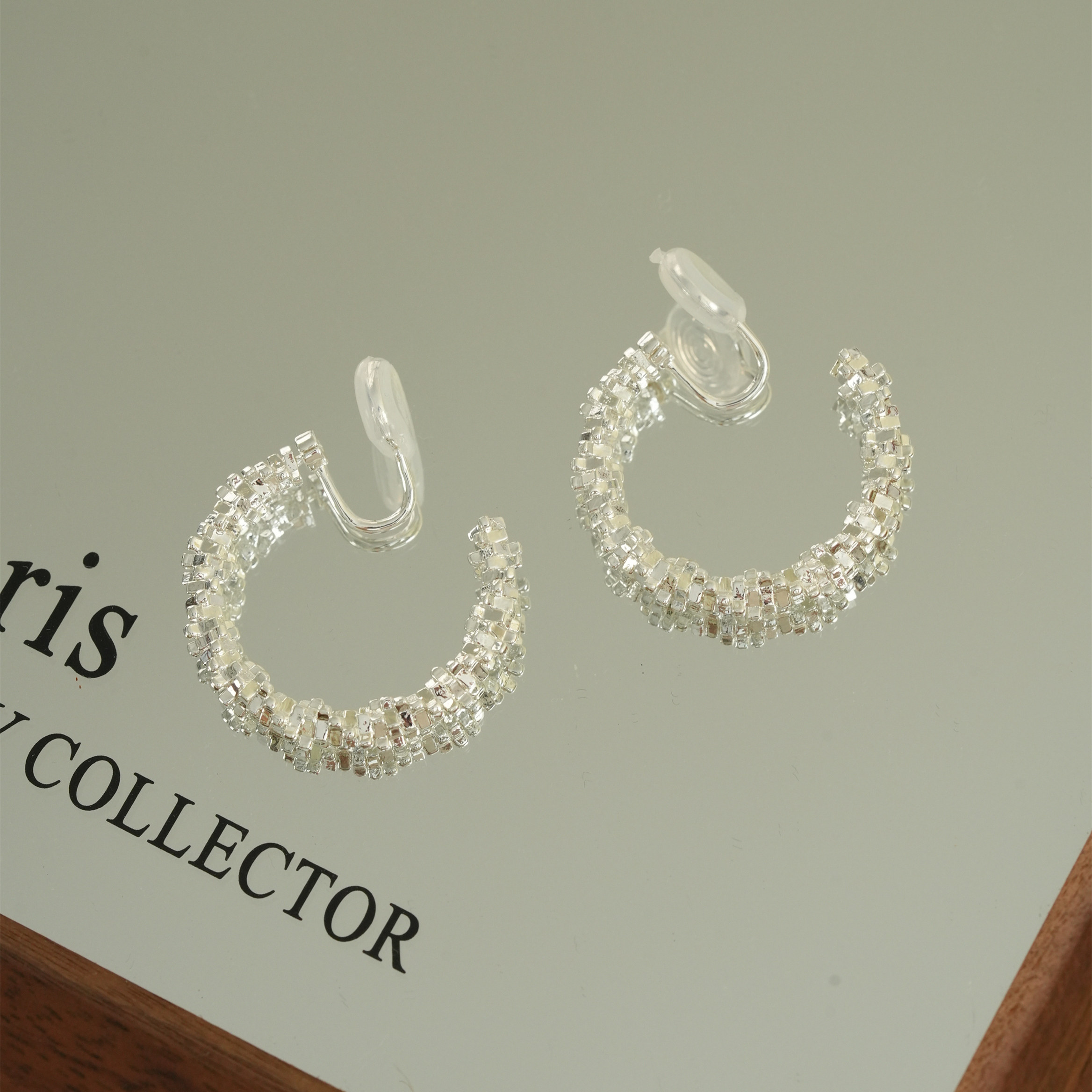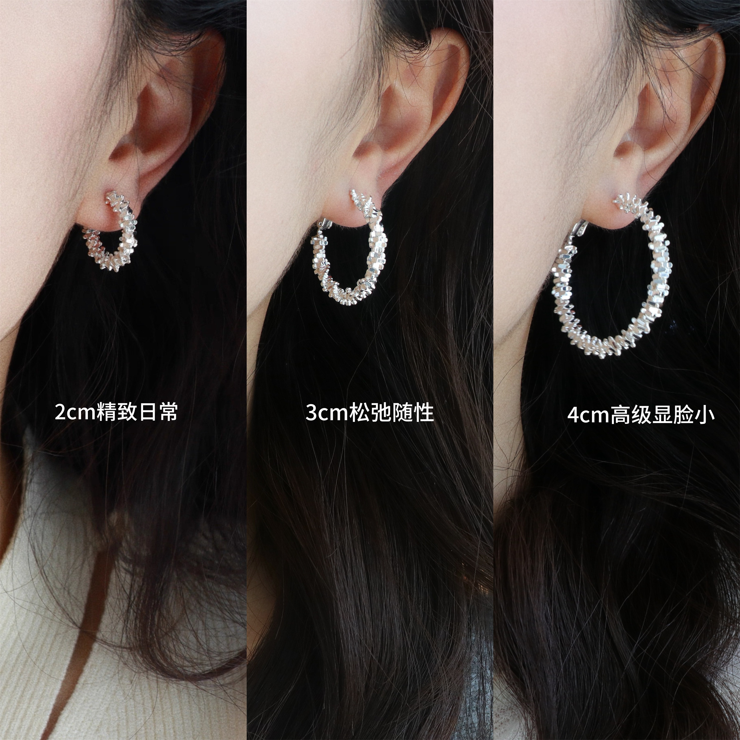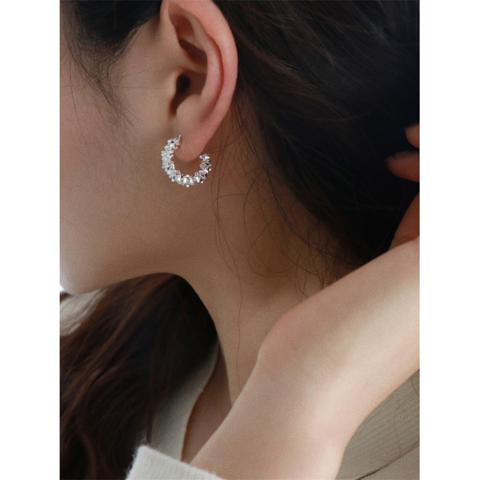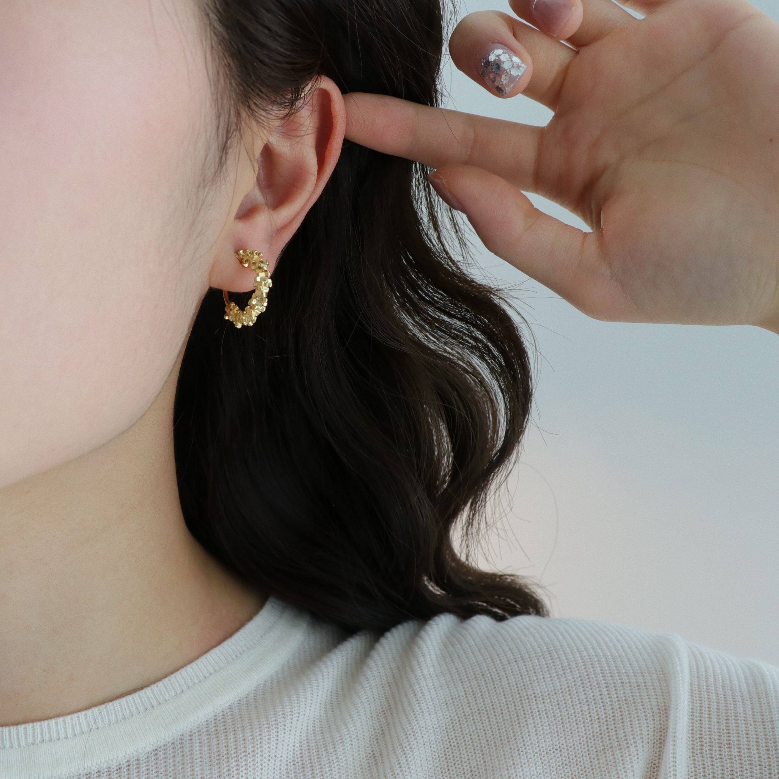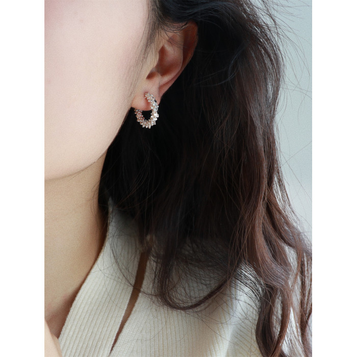 因缺斯汀s925銀針波光粼粼金屬耳圈碎銀子無耳洞蚊香盤耳夾女小衆