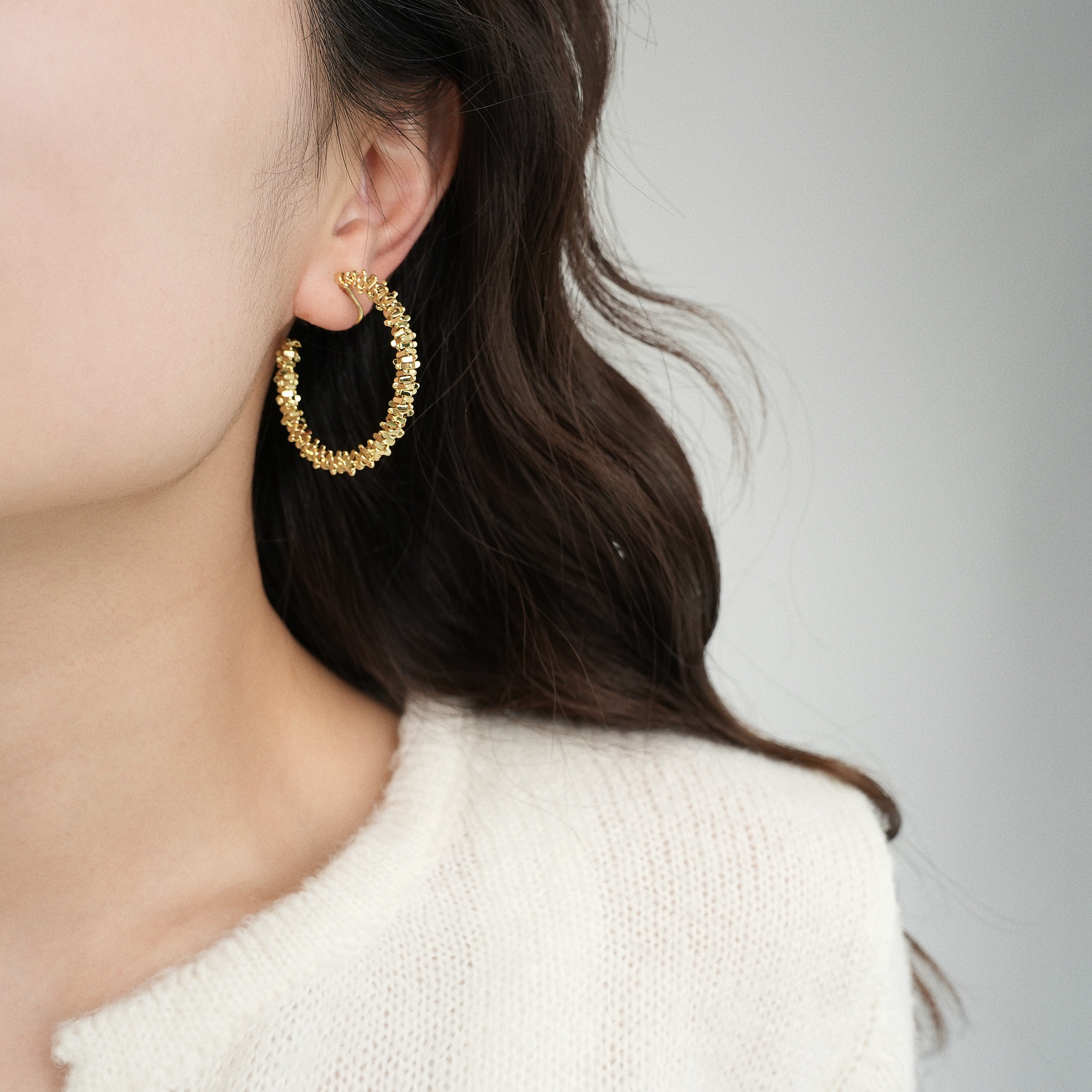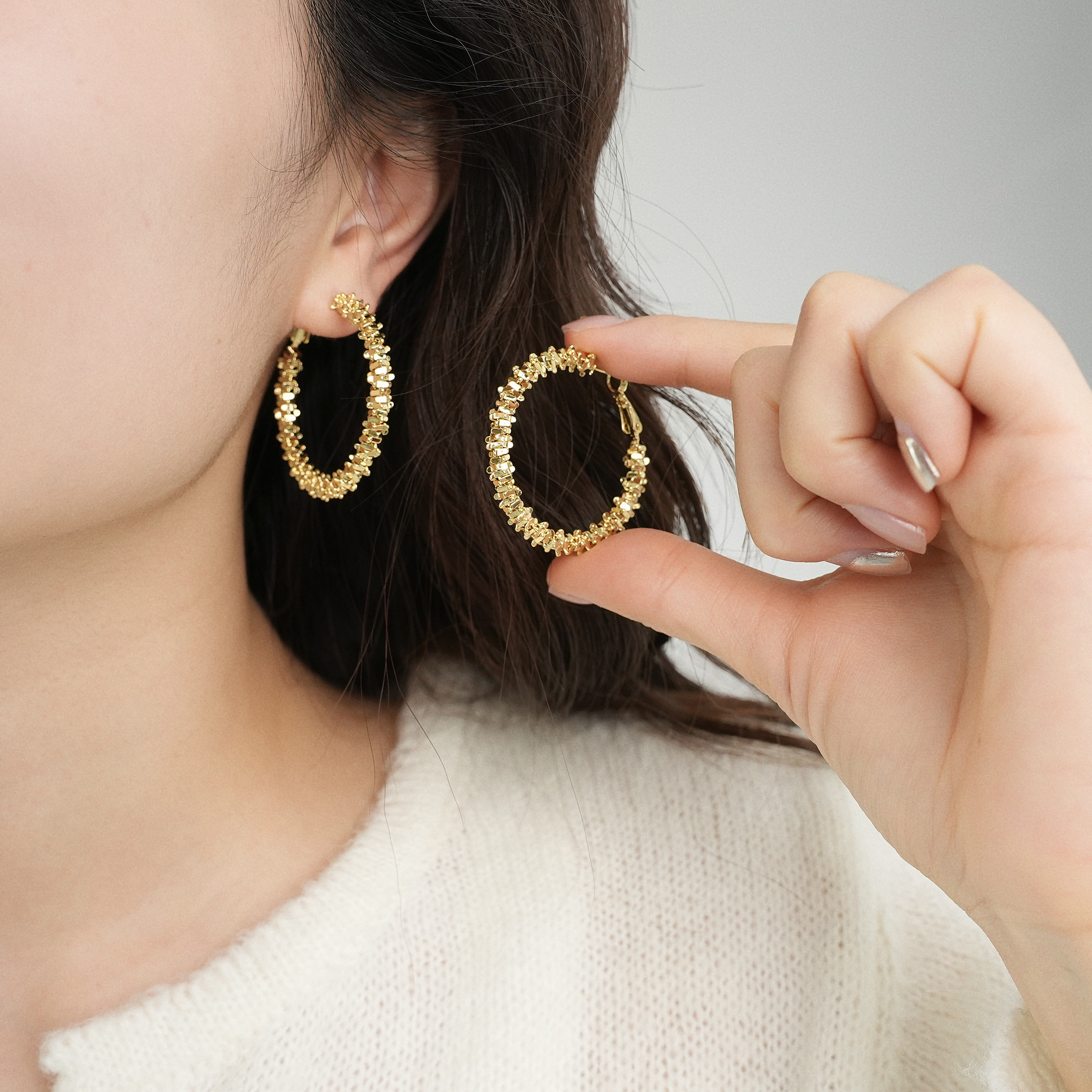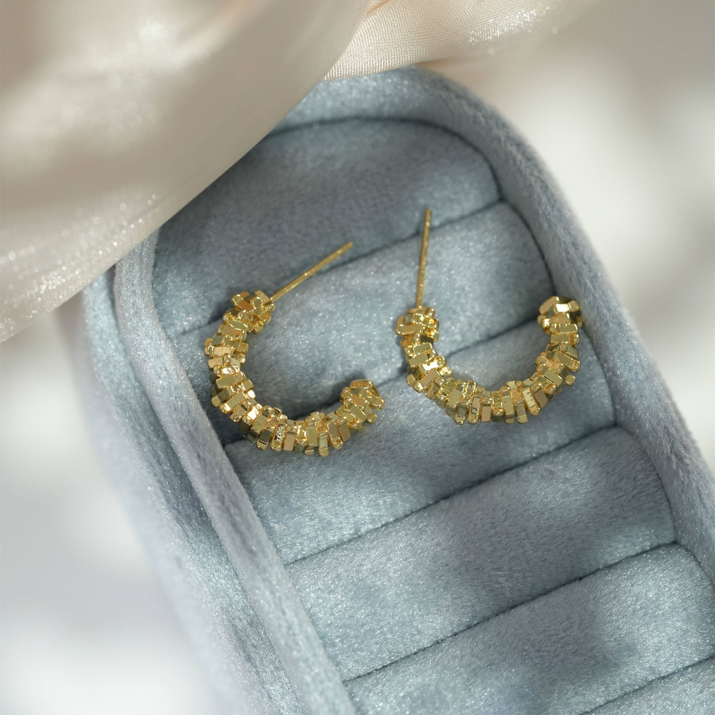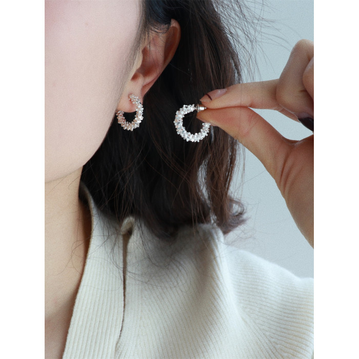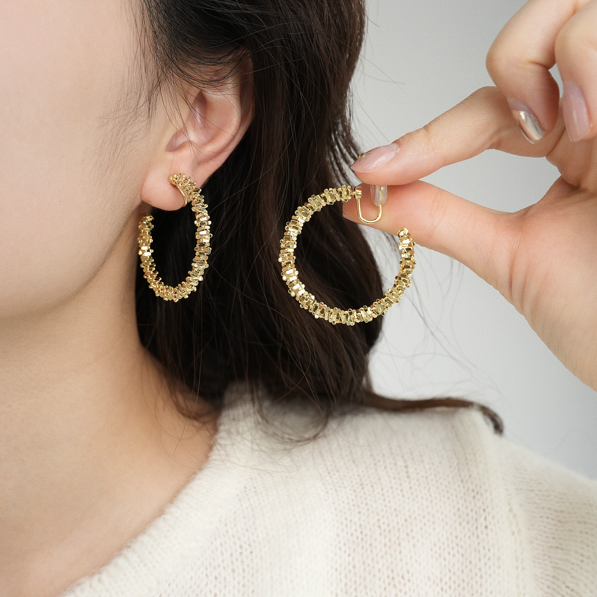 因缺斯汀s925銀針波光粼粼金屬耳圈碎銀子無耳洞蚊香盤耳夾女小衆