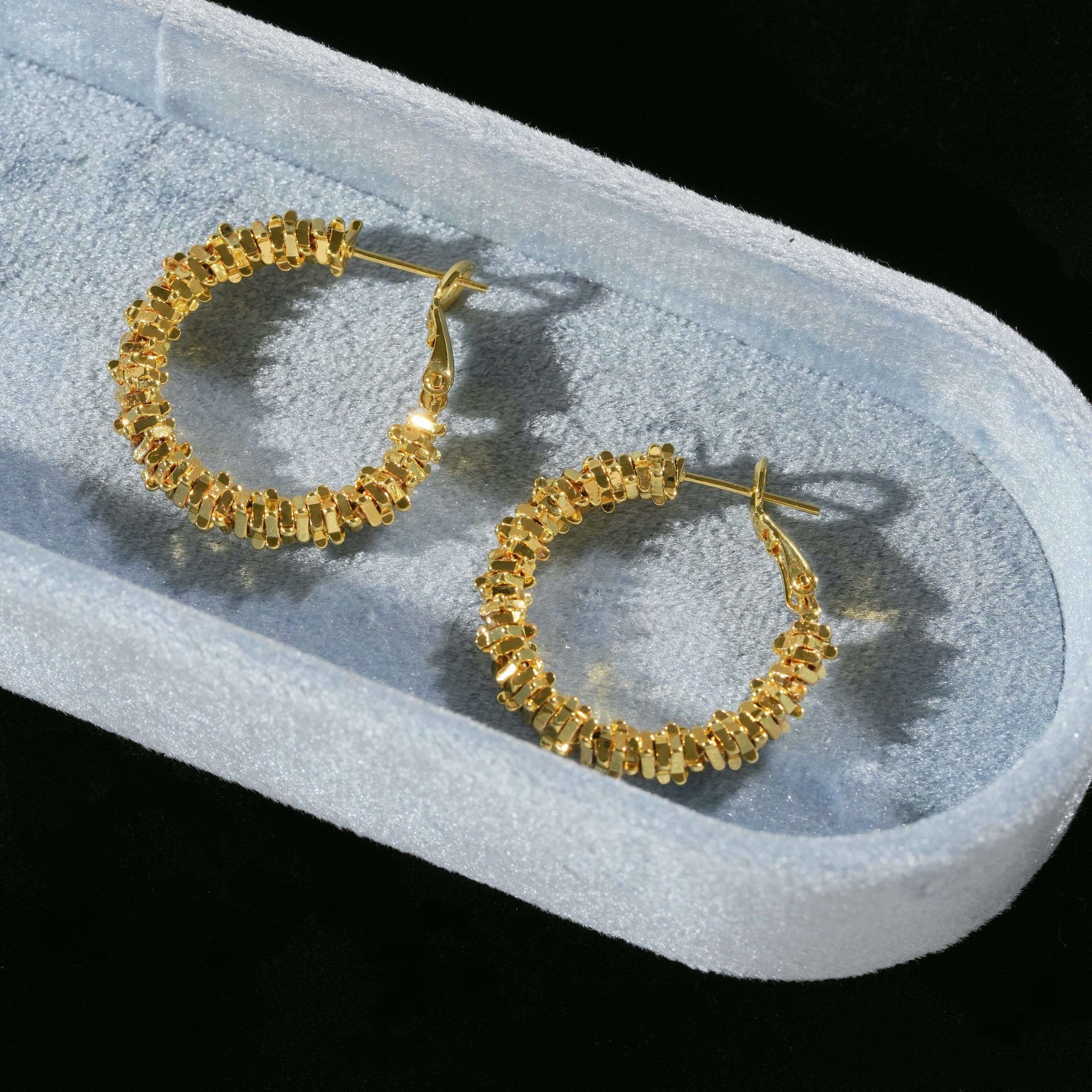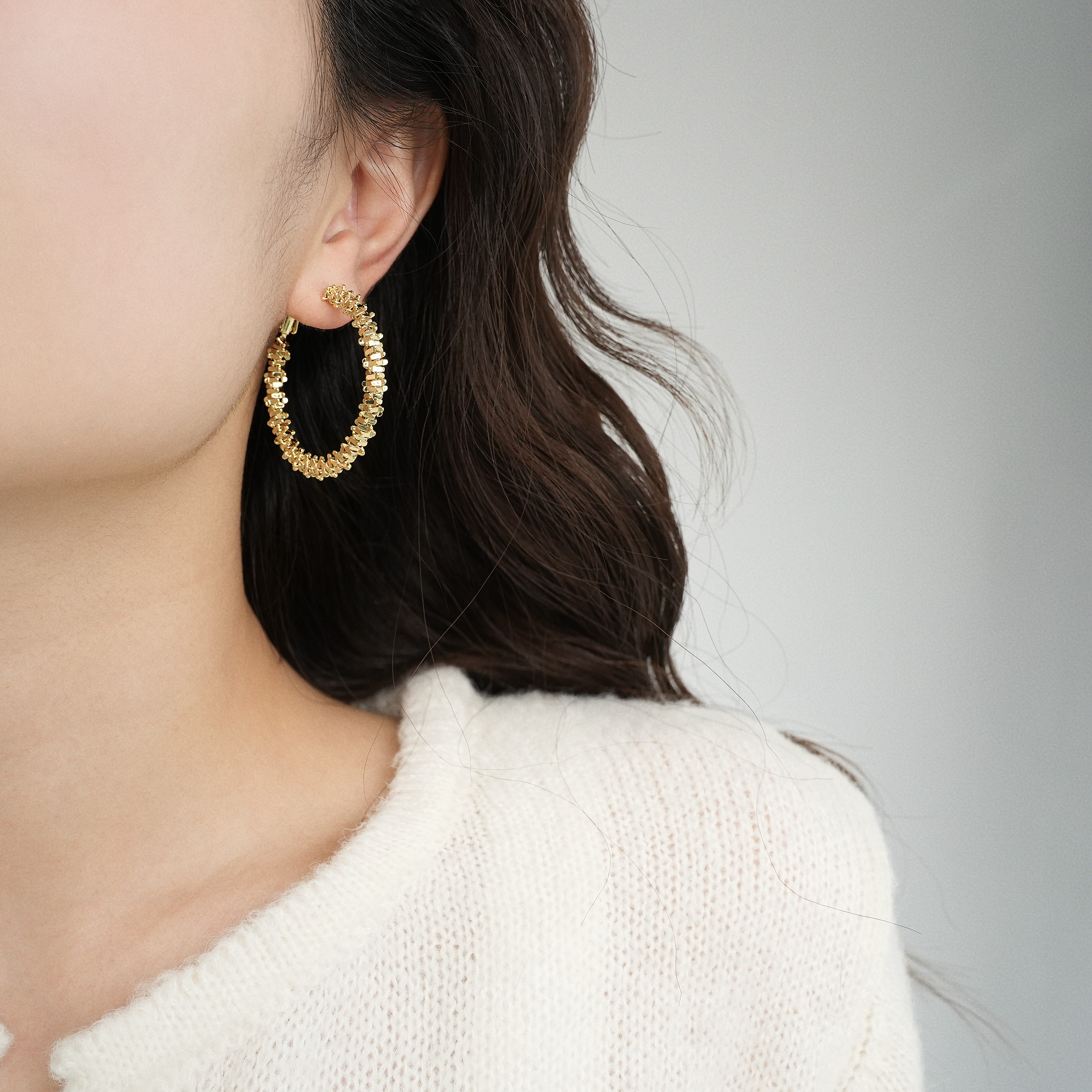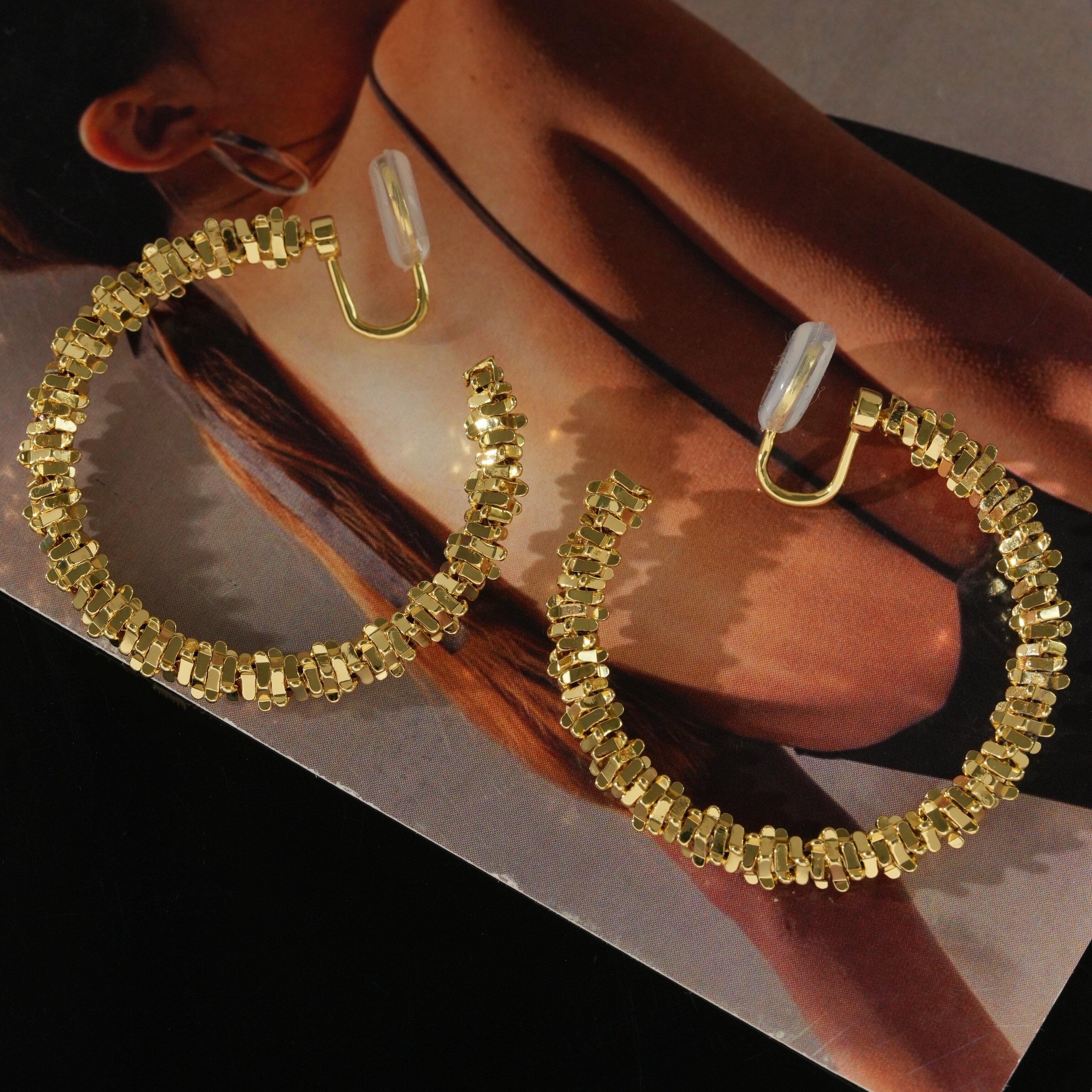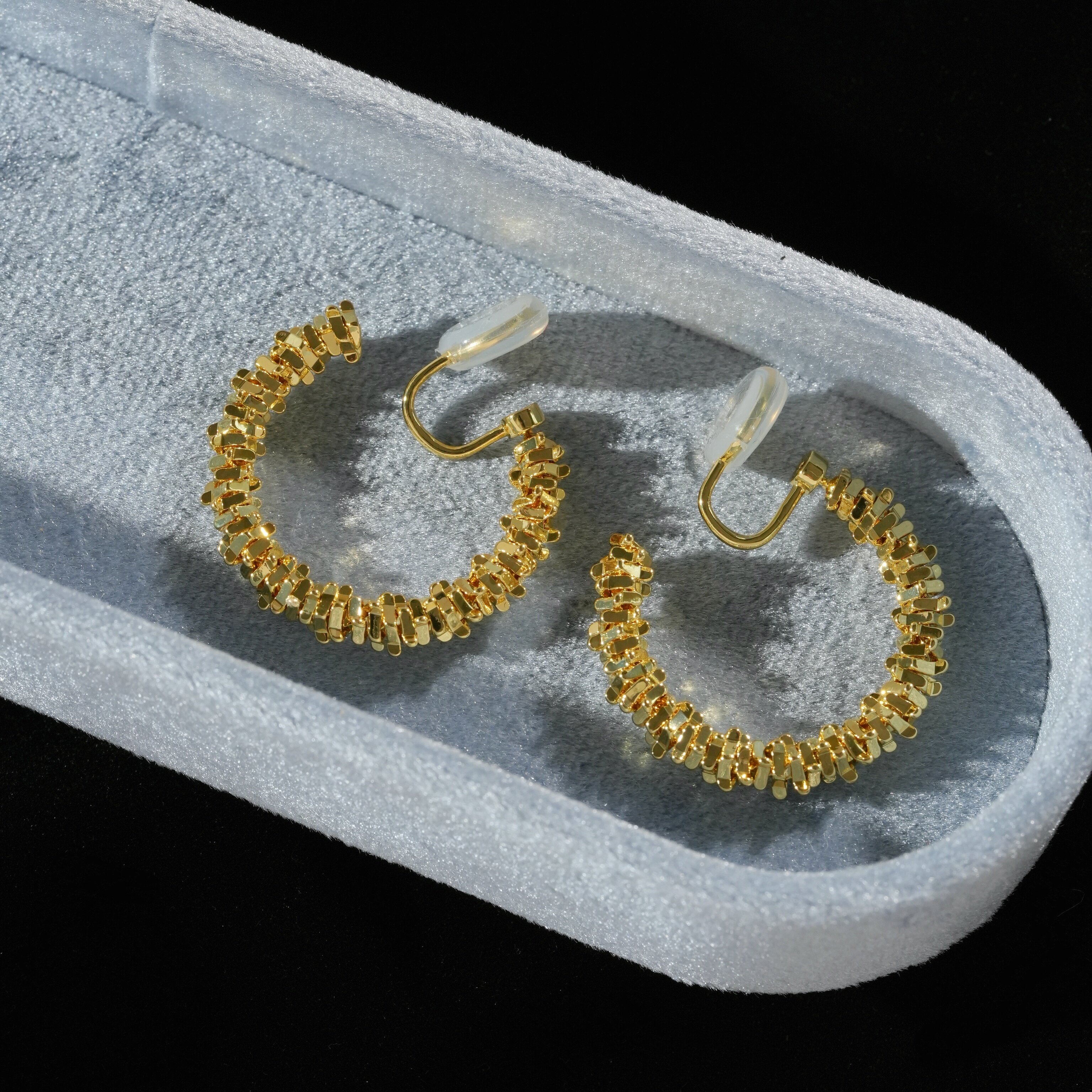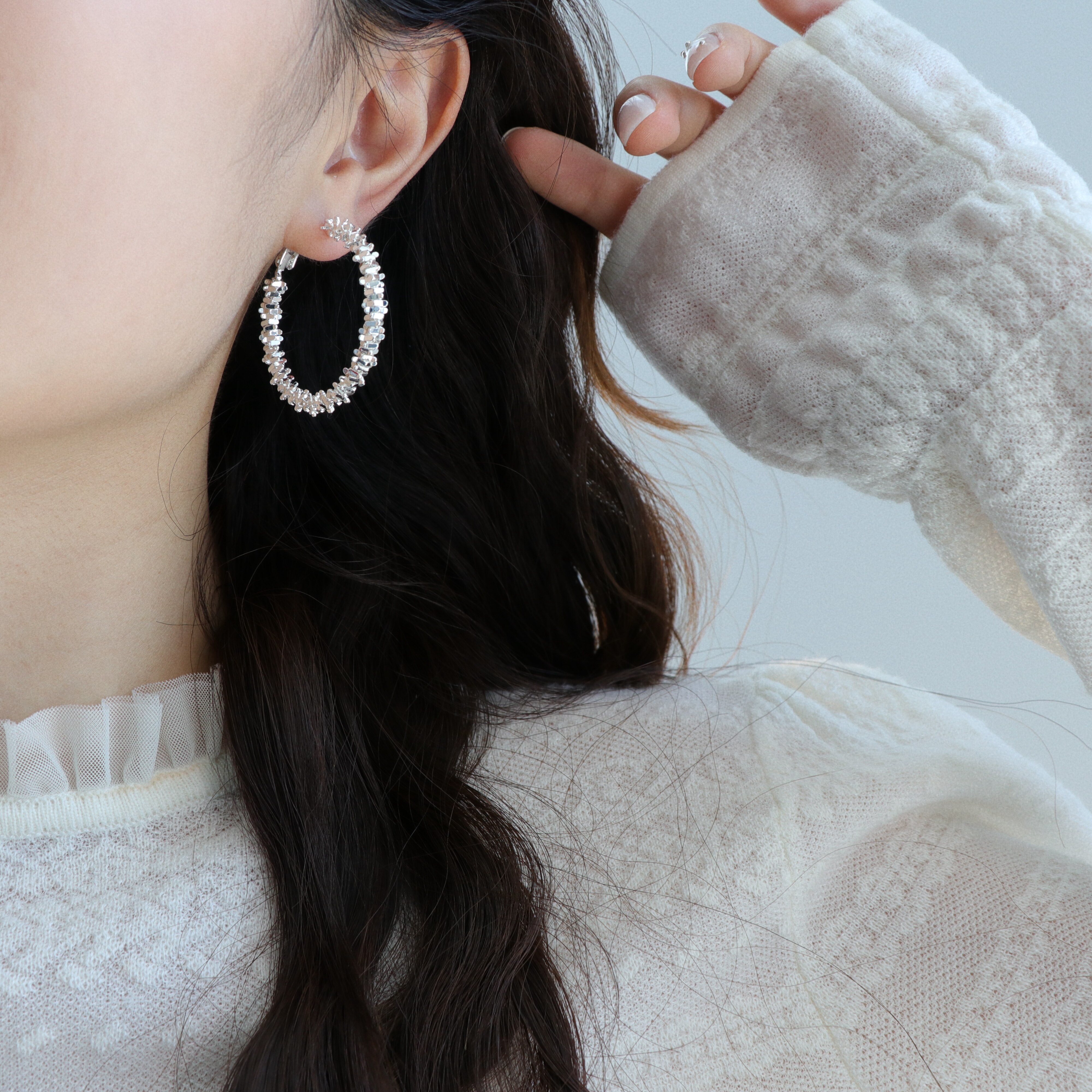 因缺斯汀s925銀針波光粼粼金屬耳圈碎銀子無耳洞蚊香盤耳夾女小衆
