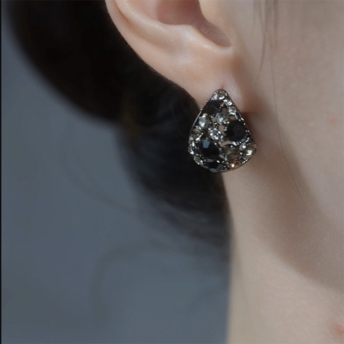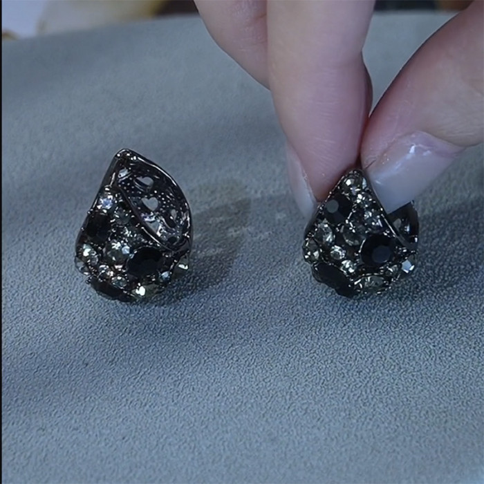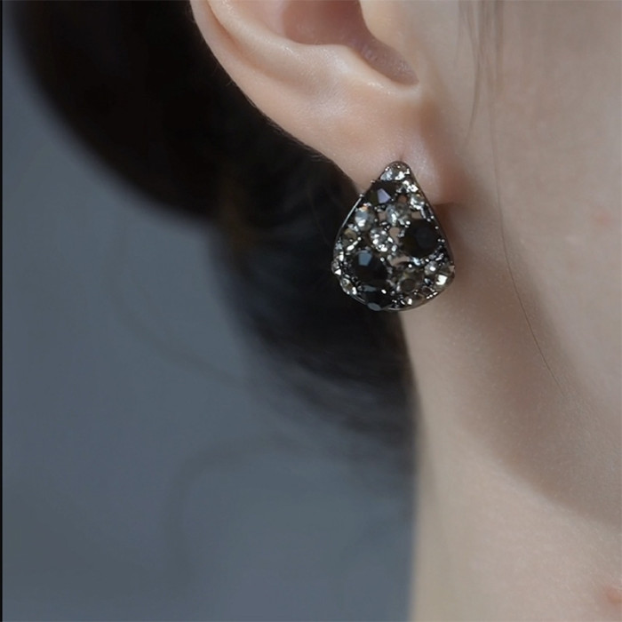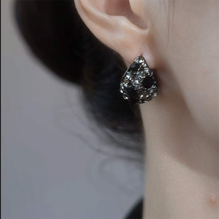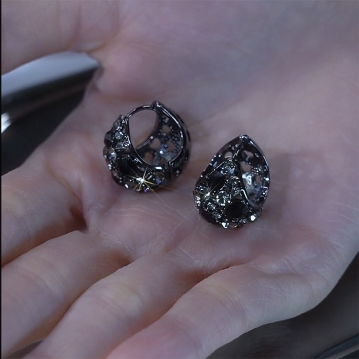 黑色鋯石時尚花籃耳釦女小衆個性高級感輕奢耳環2025網紅爆款耳飾