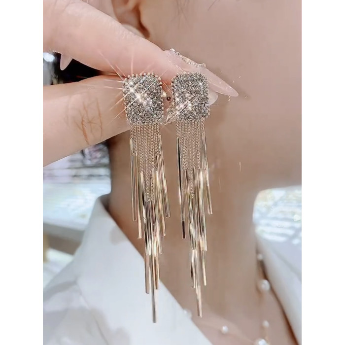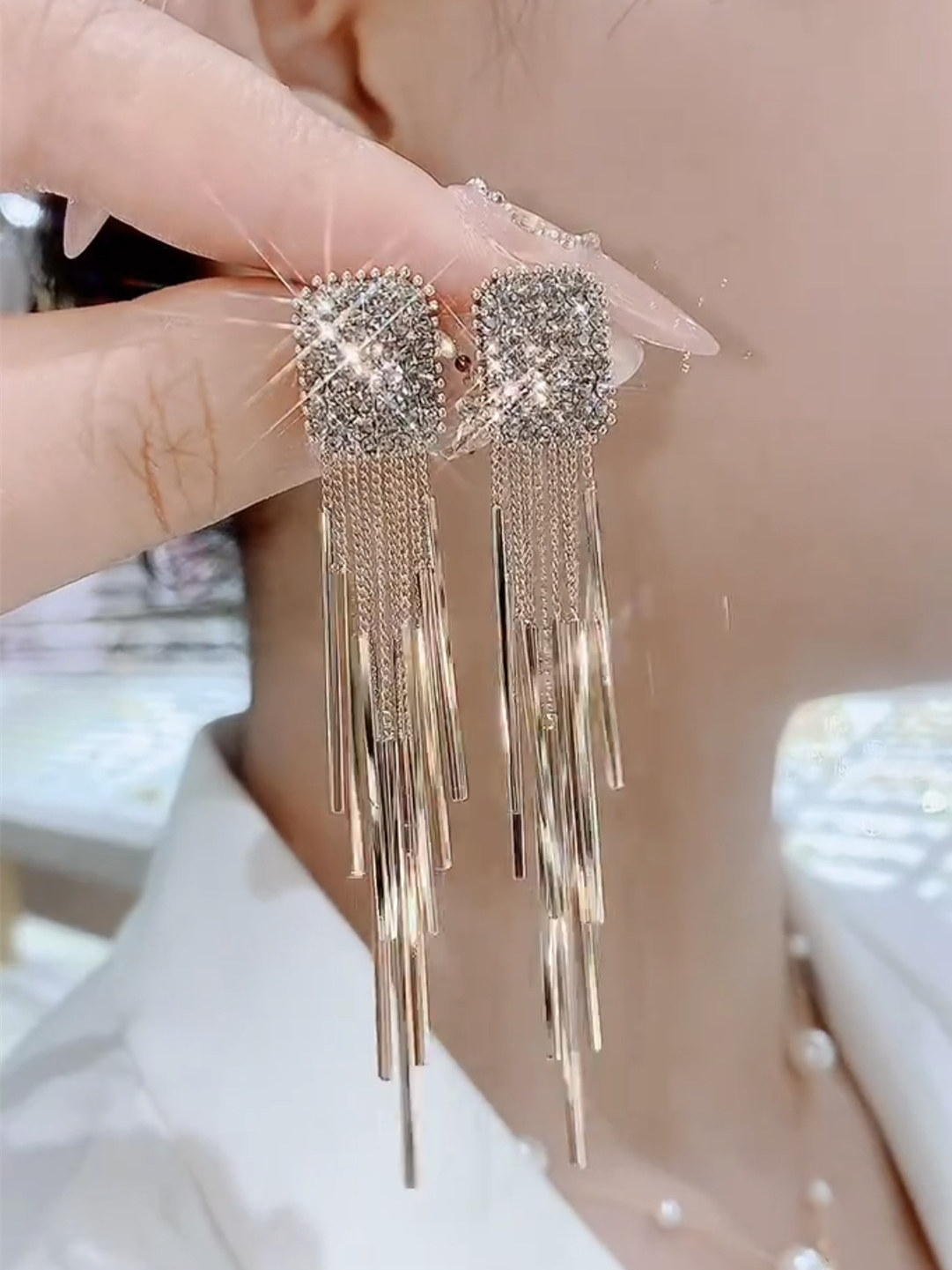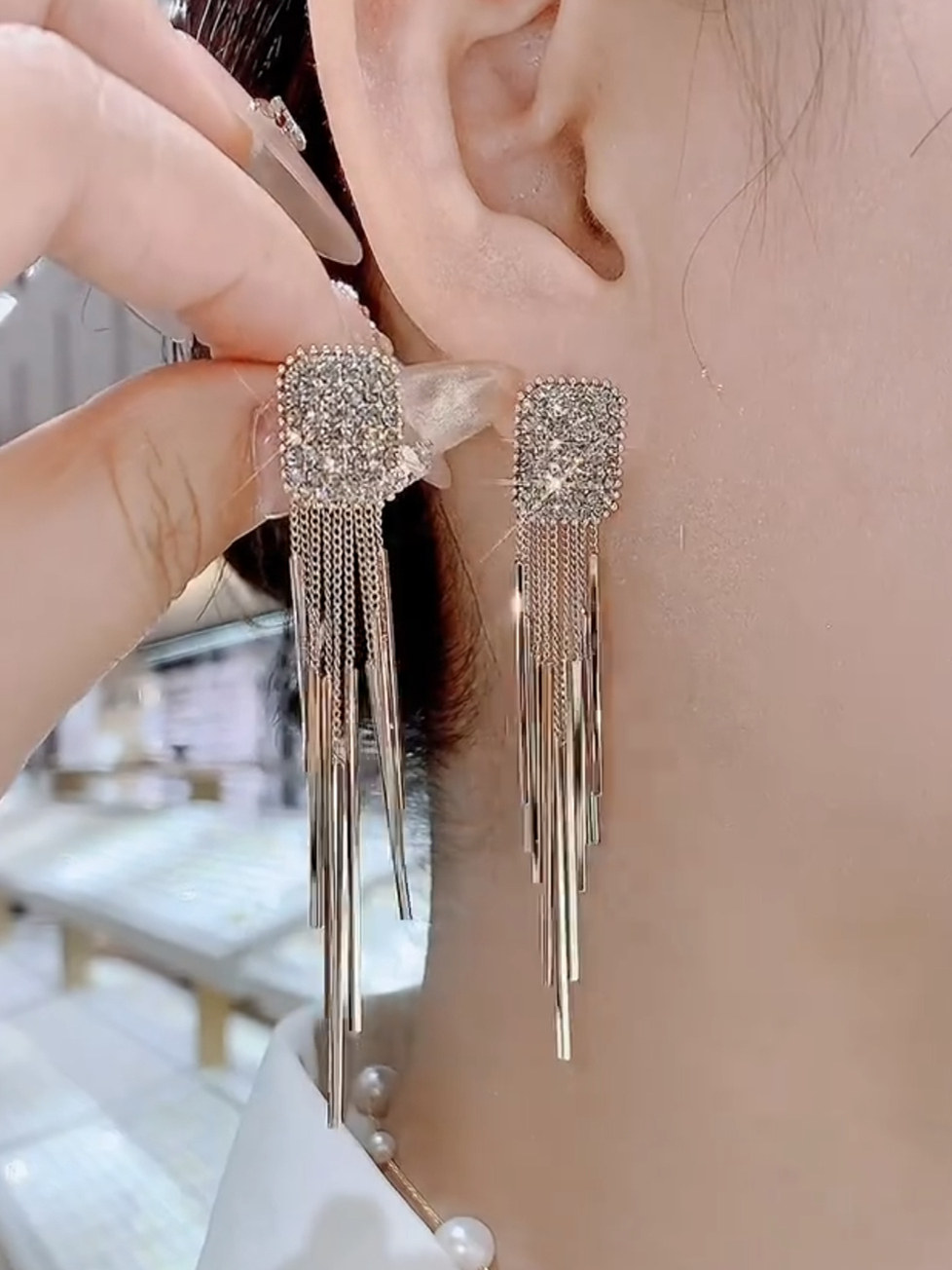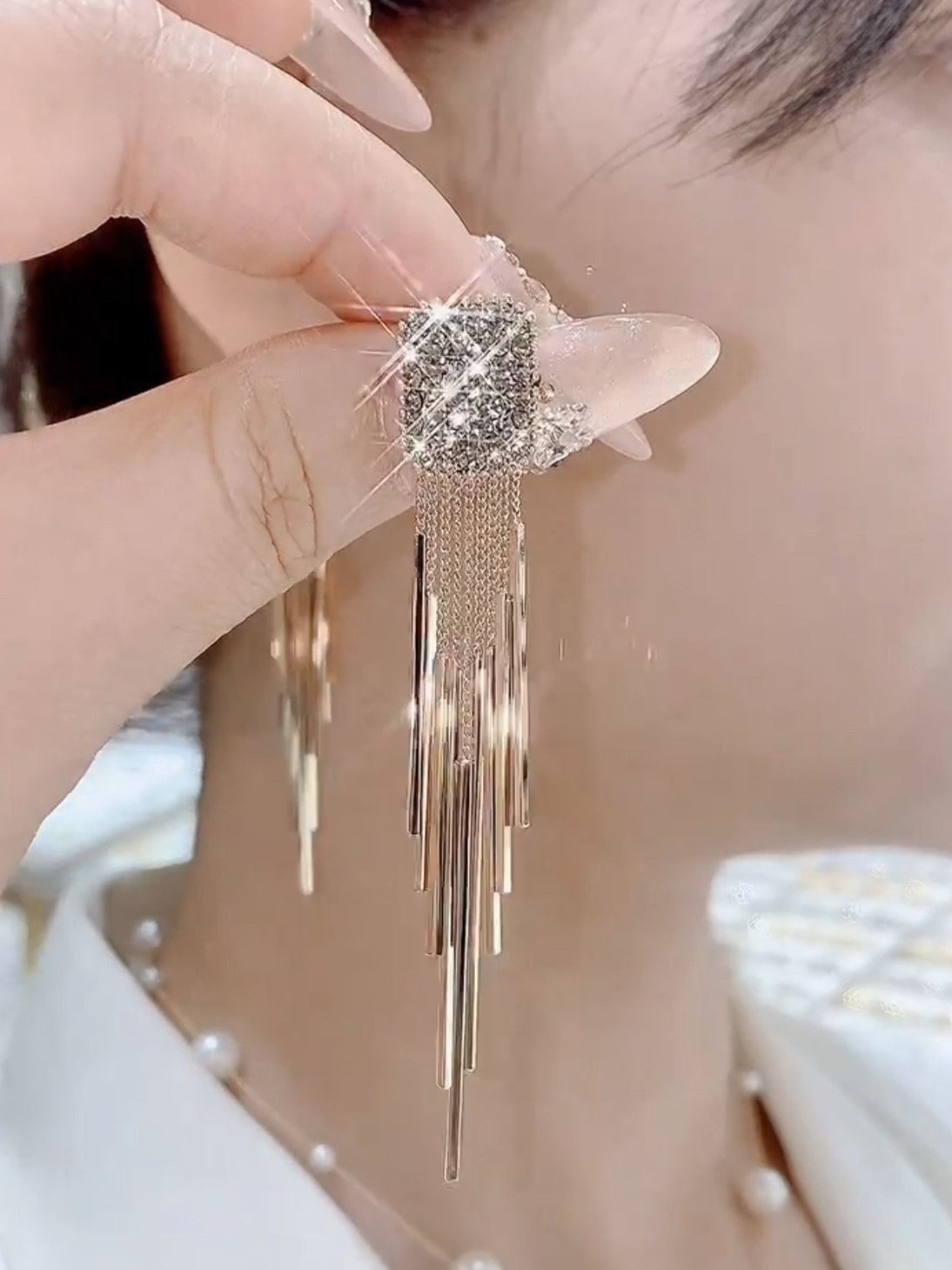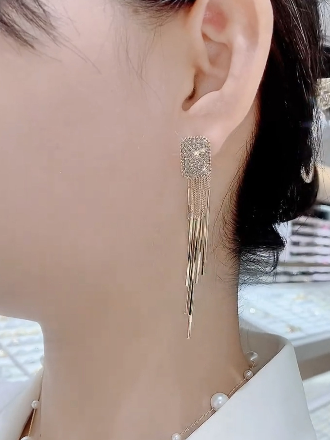 原創設計感金色長款流蘇耳釘耳環女奢華鑲鑽氣質配飾2025新款耳墜