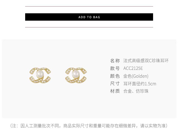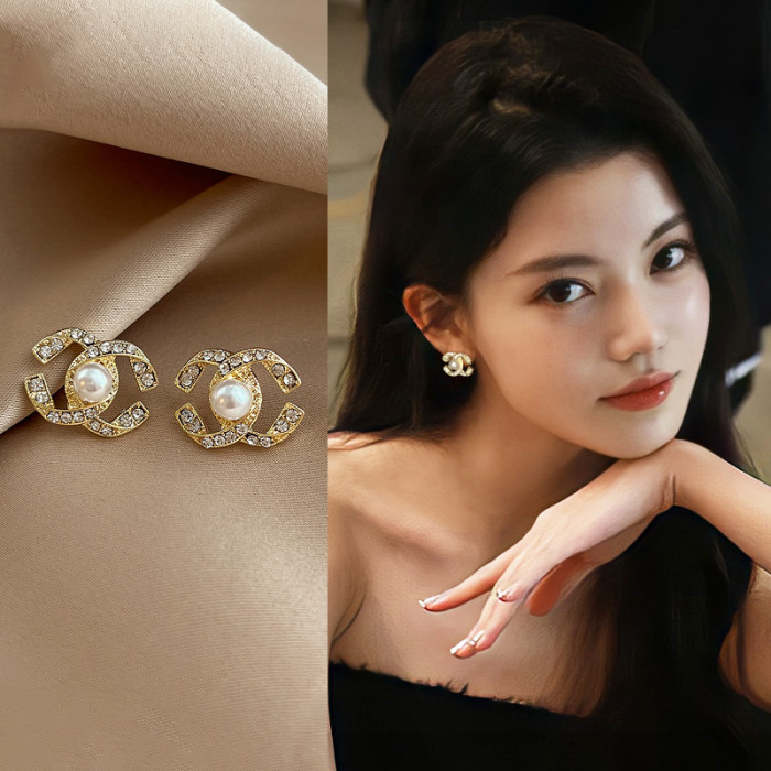小香風雙C耳夾女士無耳洞耳環輕奢高級感耳釘氣質珍珠款耳墜耳飾