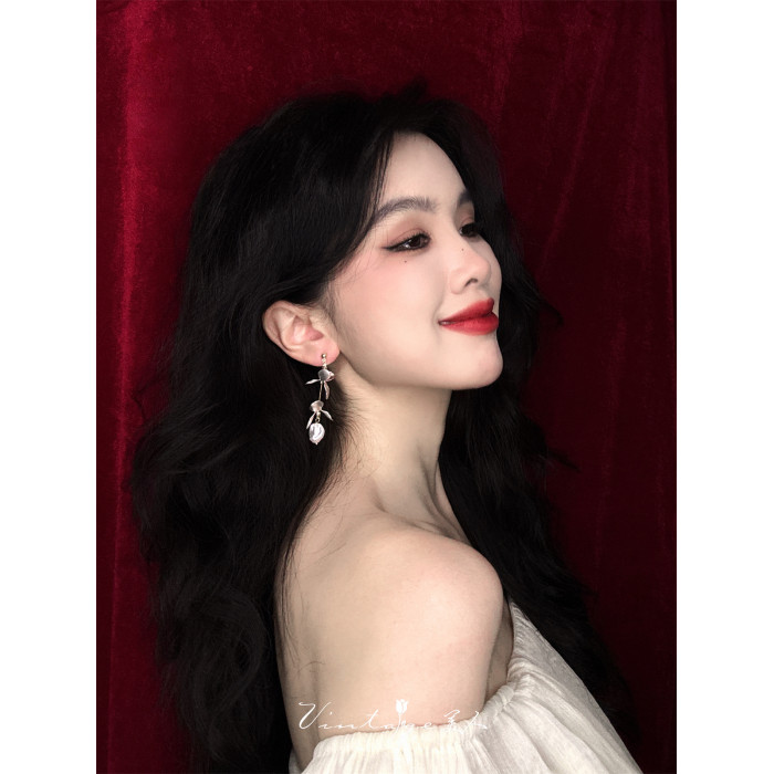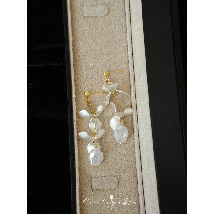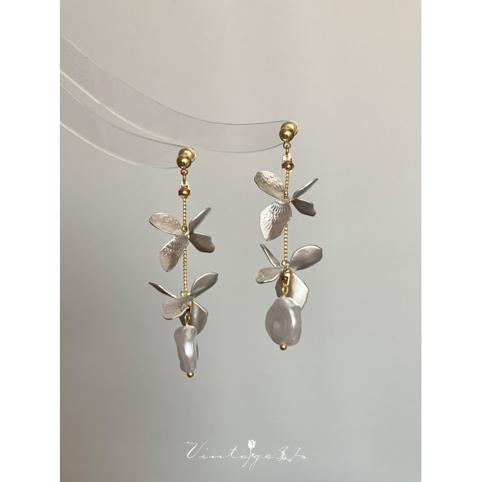 「鳶尾」系列 法式復古文藝森系原創高級感小衆花朵珍珠耳環/耳夾