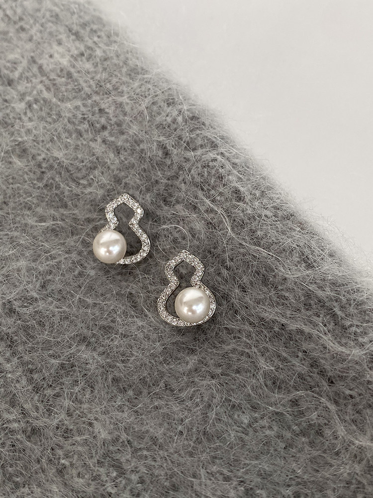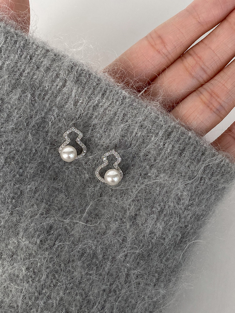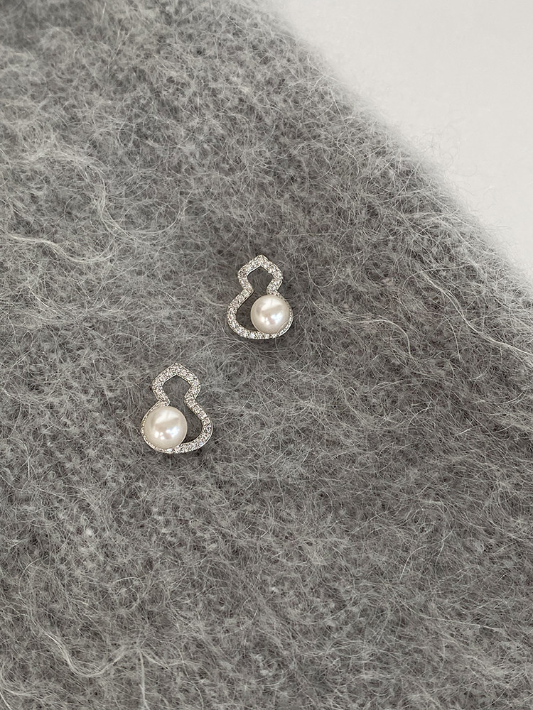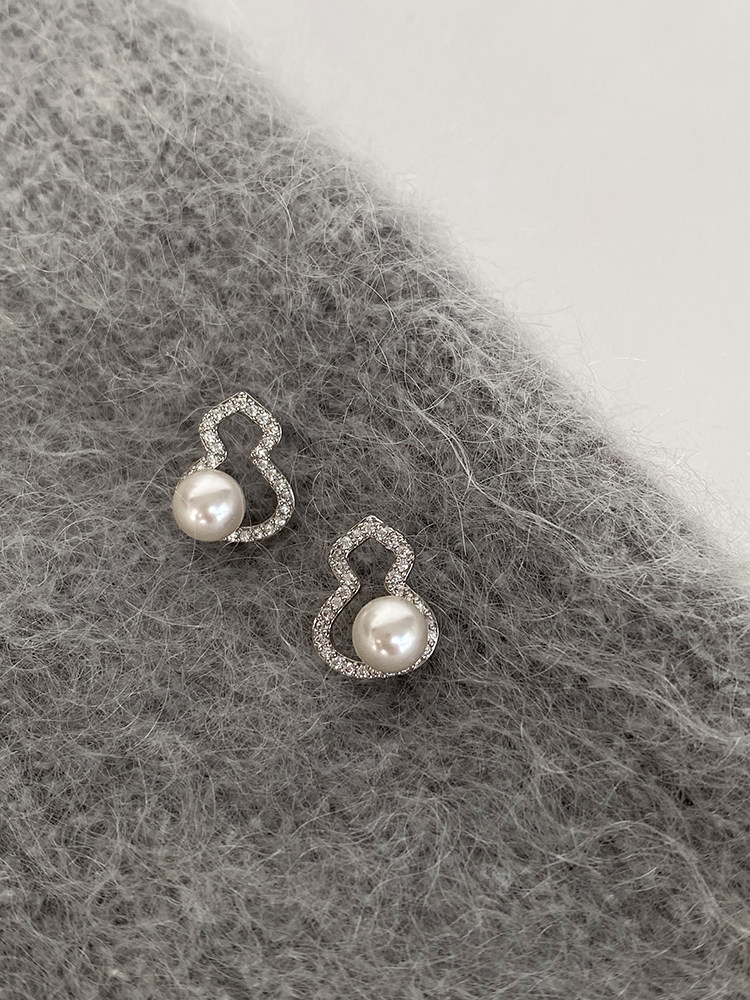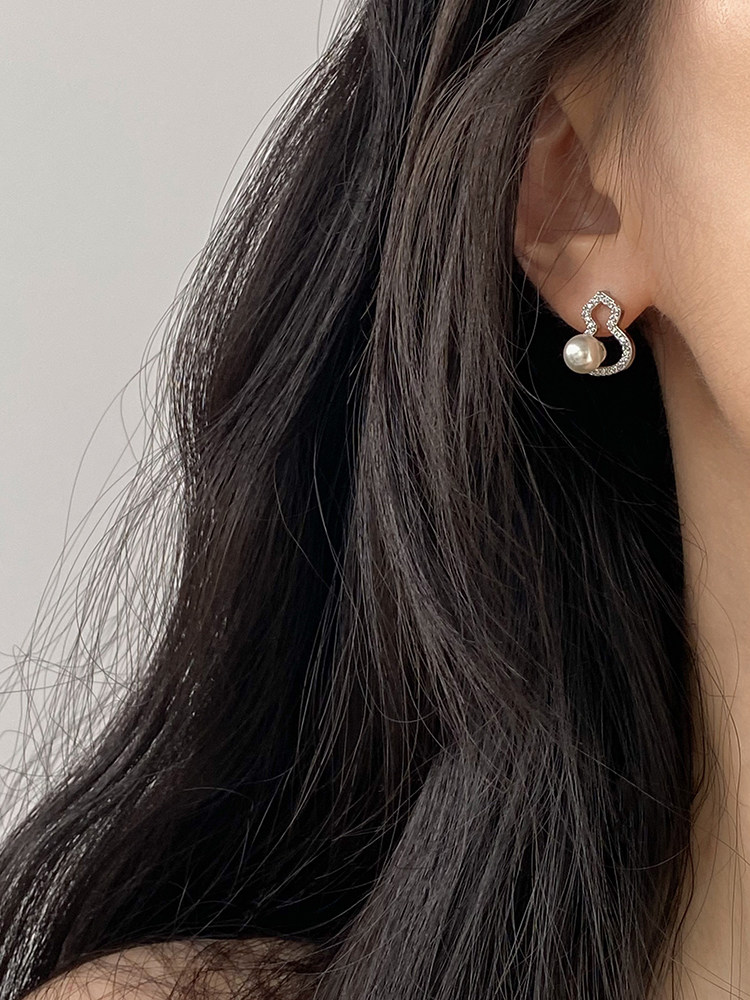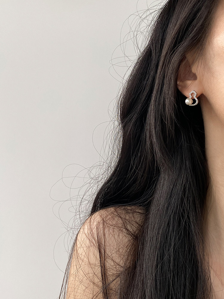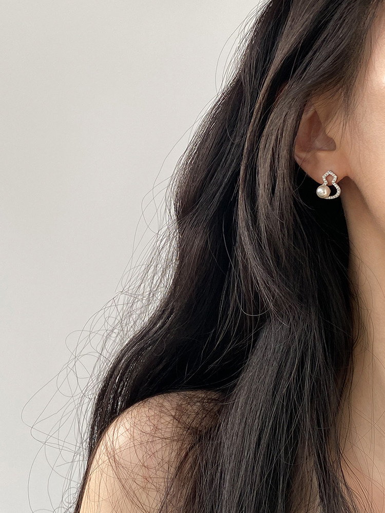 DOUDOUSTORE新中式施家珍珠葫蘆耳釘高級感微鑲鋯石耳環福祿女