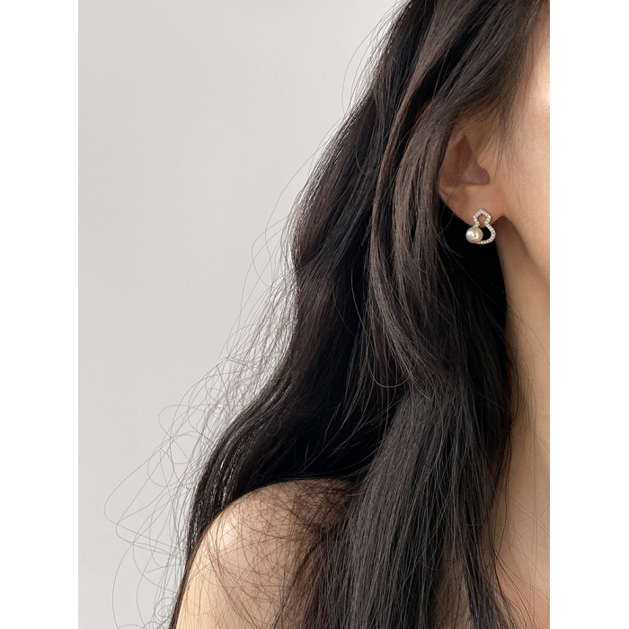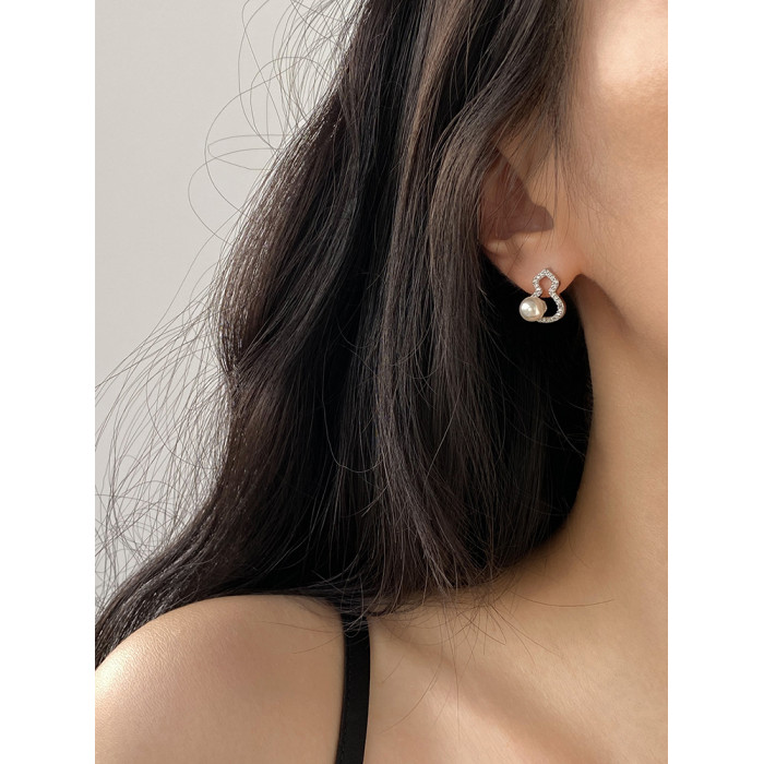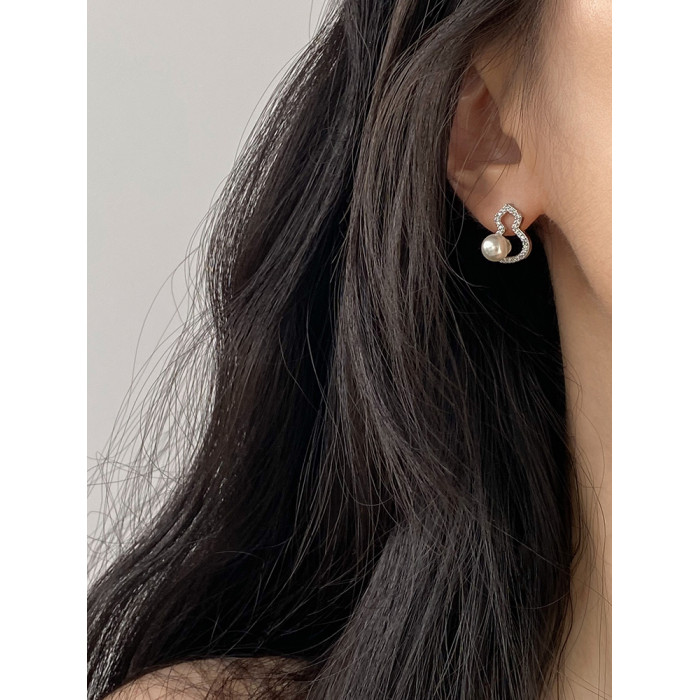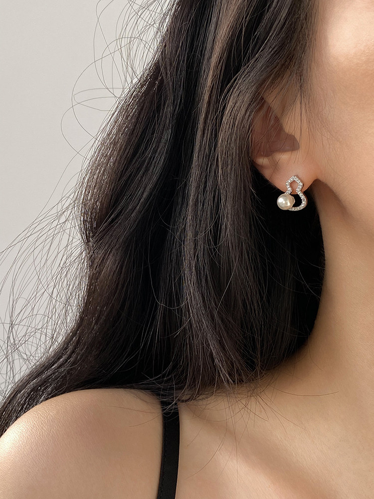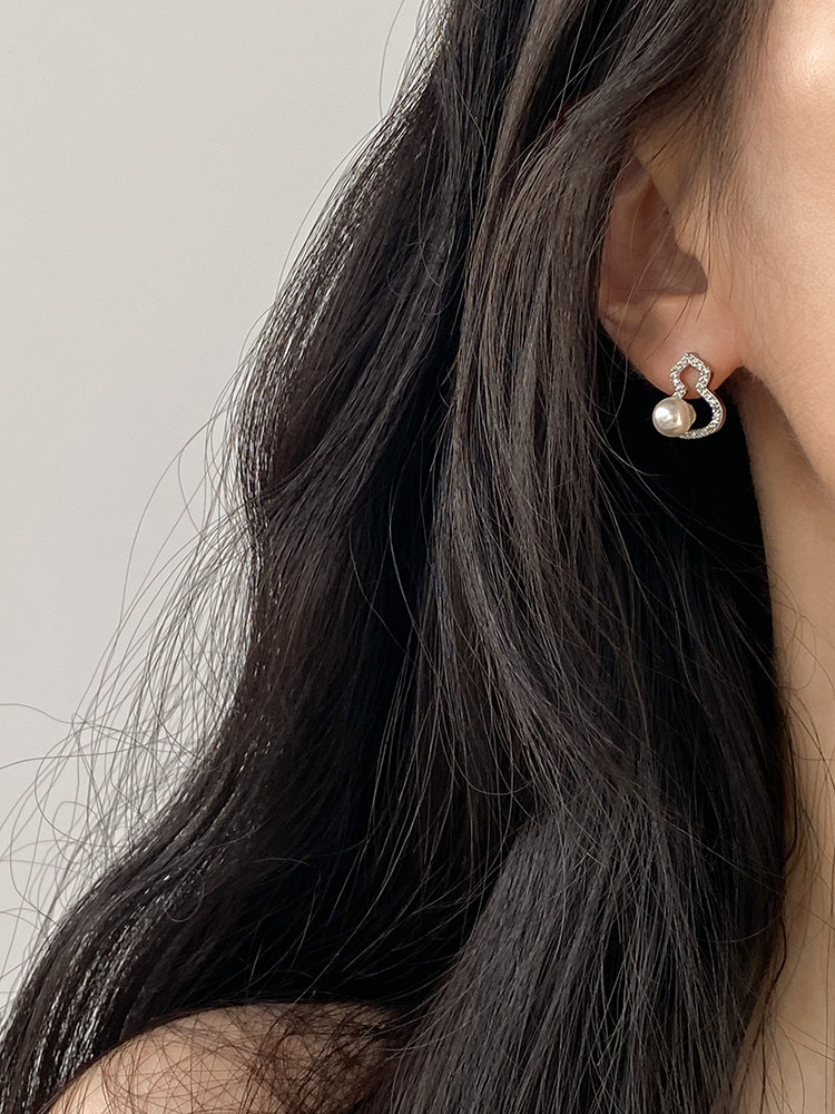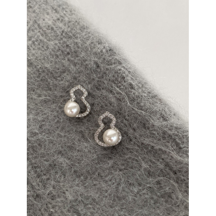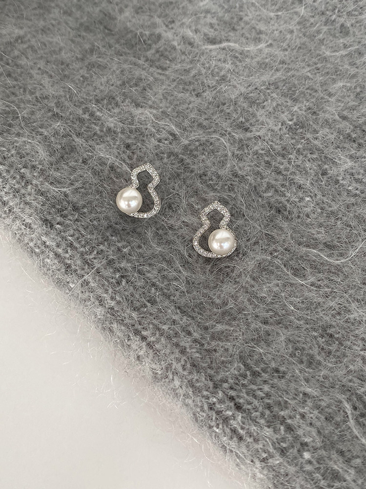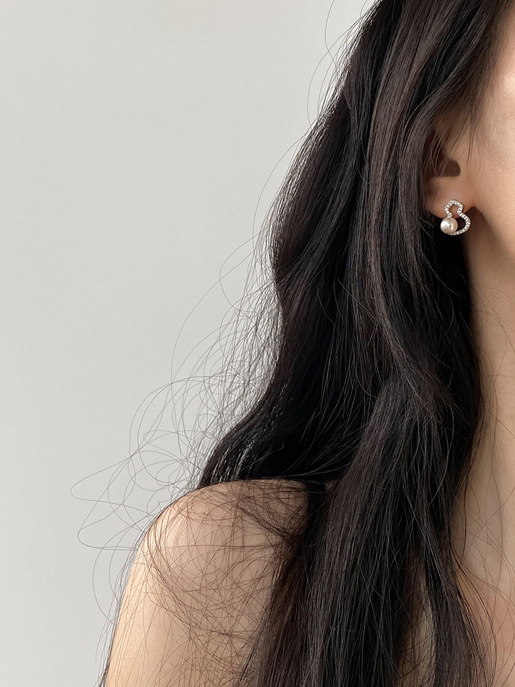 DOUDOUSTORE新中式施家珍珠葫蘆耳釘高級感微鑲鋯石耳環福祿女