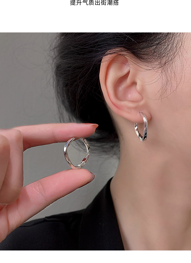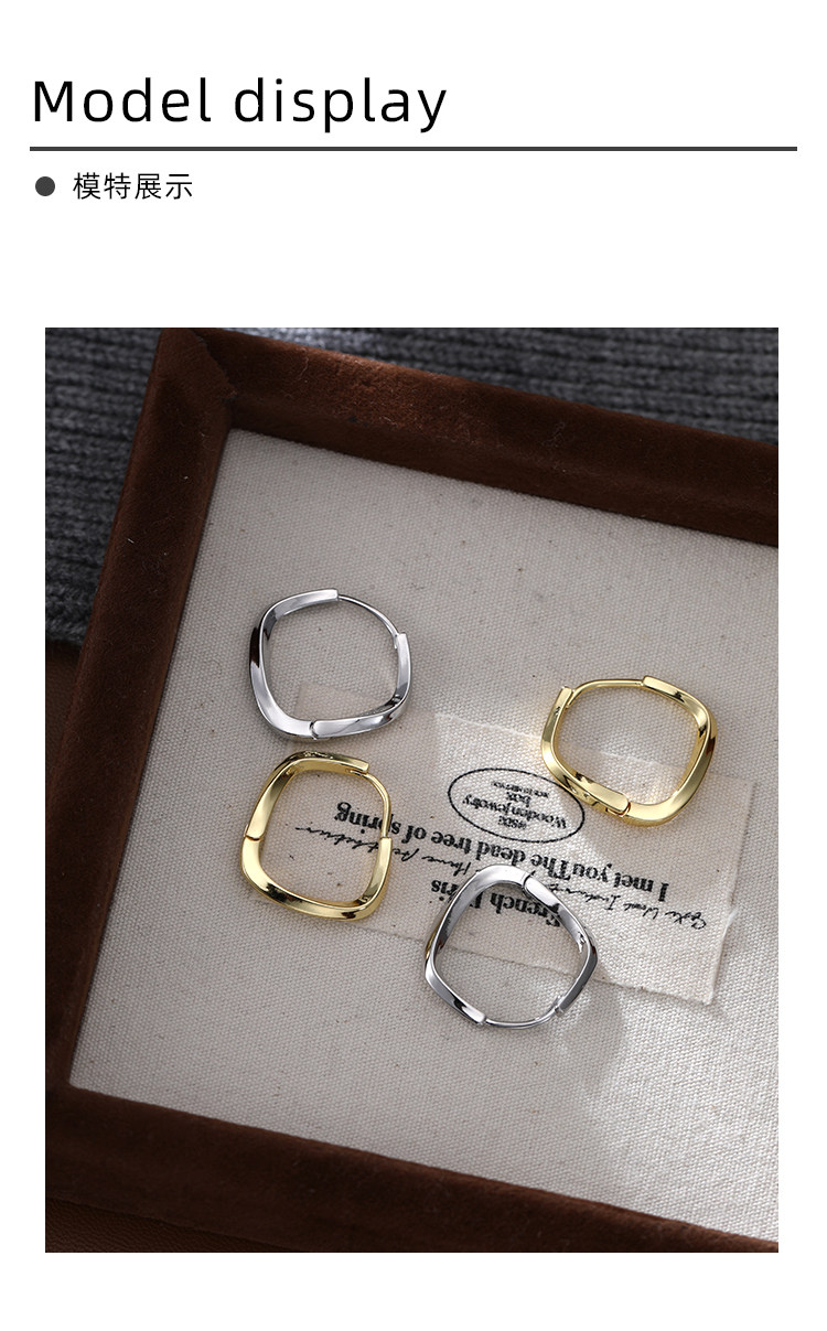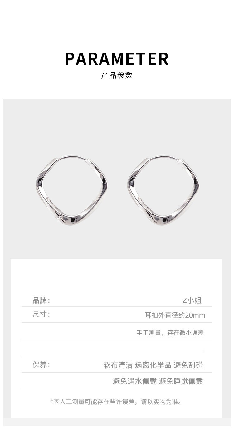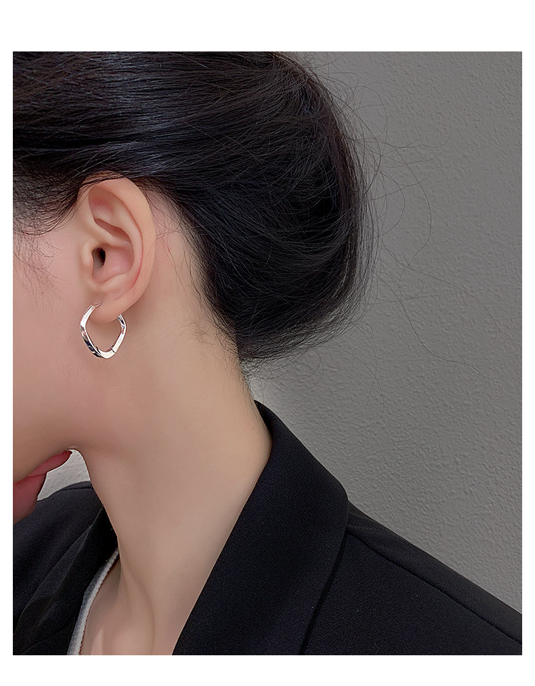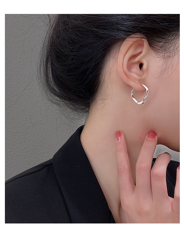 Z小姐 925銀幾何方形素圈耳環小衆設計2025新款爆款耳飾ins冷淡風
