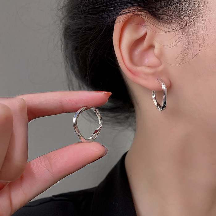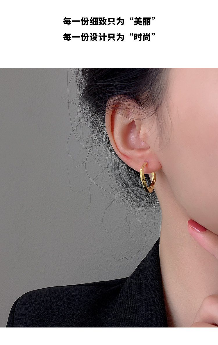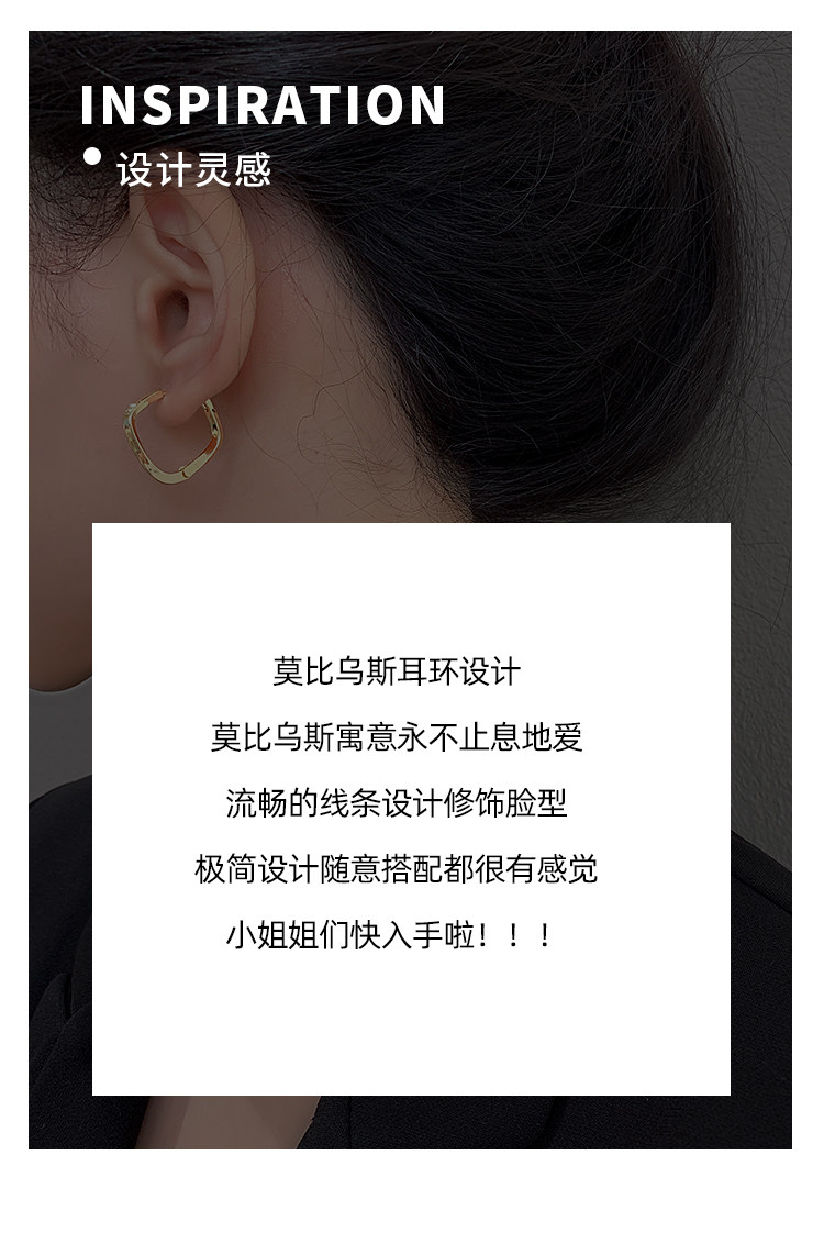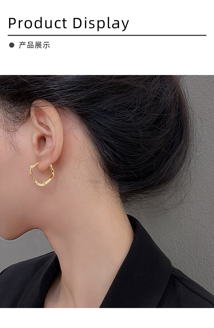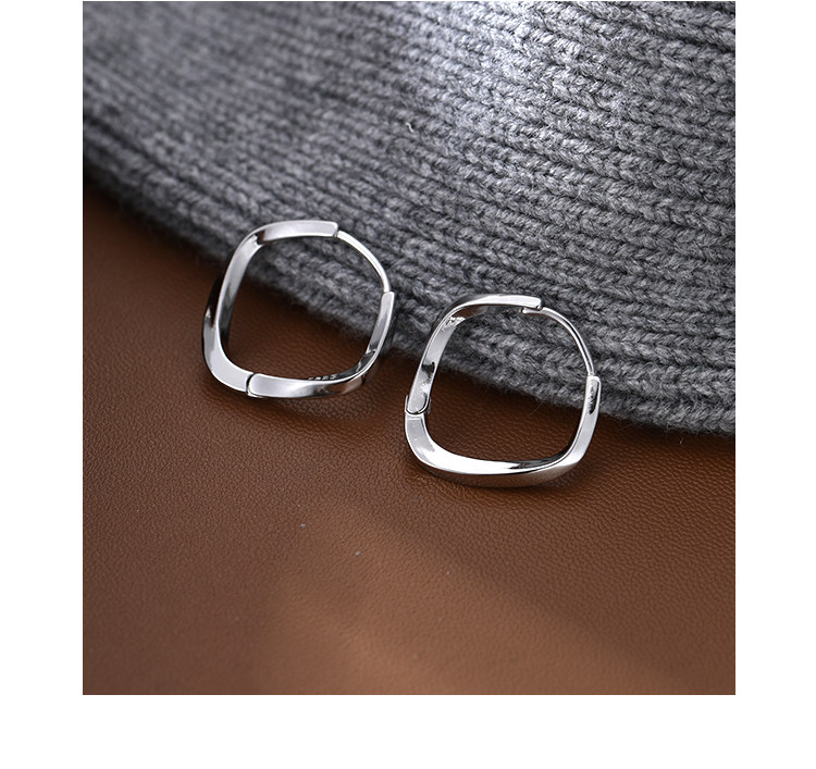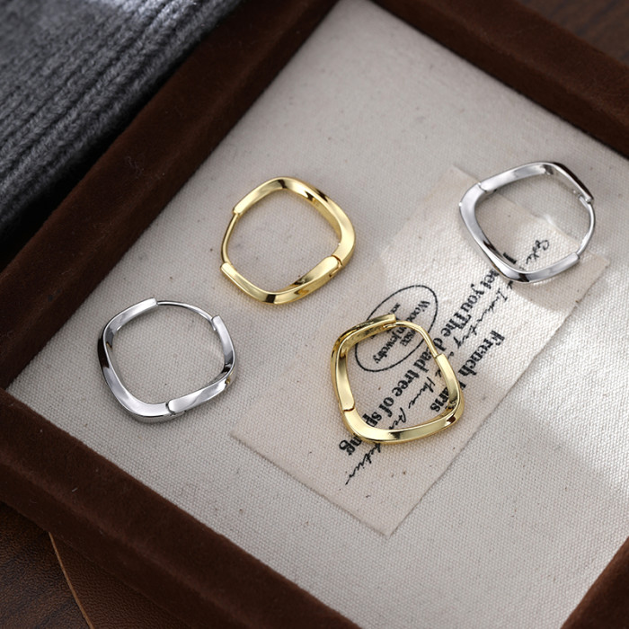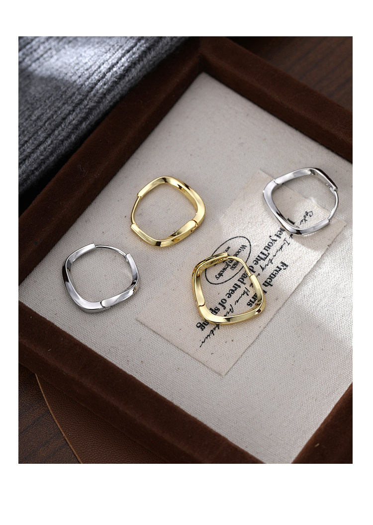 Z小姐 925銀幾何方形素圈耳環小衆設計2025新款爆款耳飾ins冷淡風