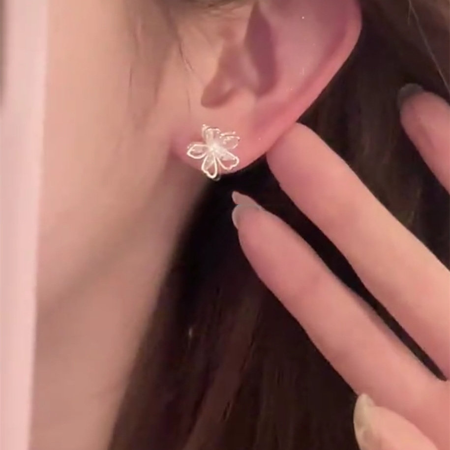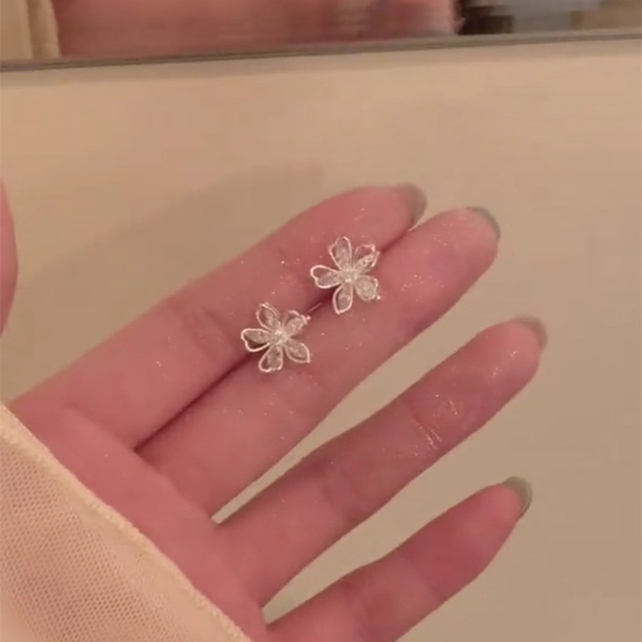 小衆設計少女感鋯石花耳釘耳環女甜美氣質百搭小款配飾素款防過敏