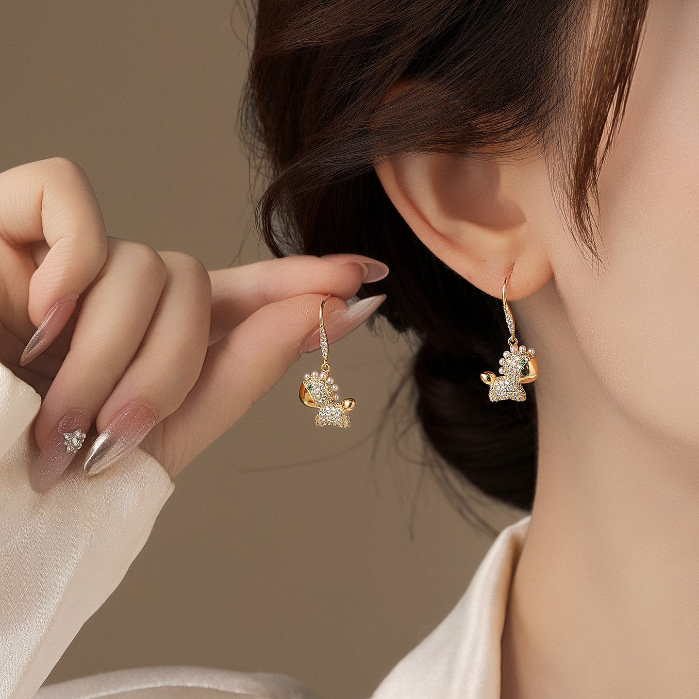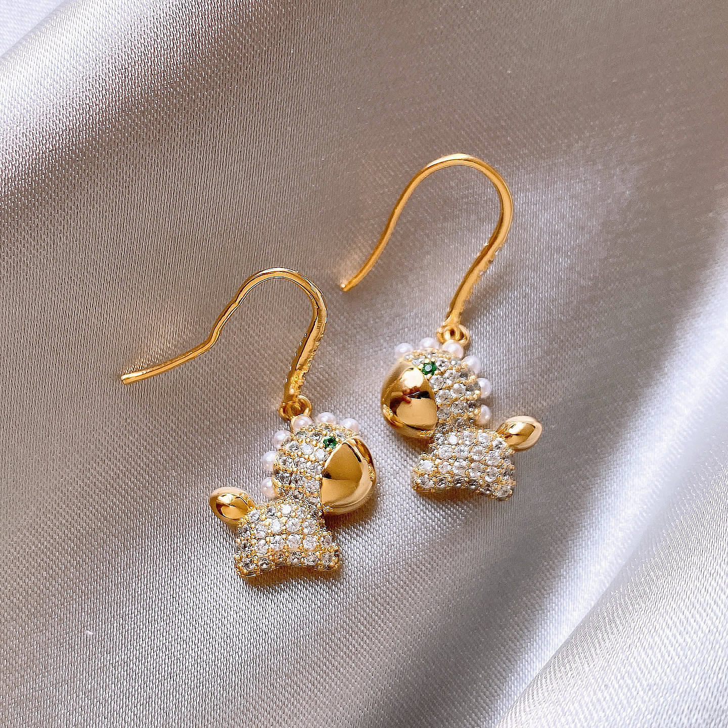 金色珍珠小馬耳環女2026新款爆款高級感耳釘巨好看的小衆獨特耳飾