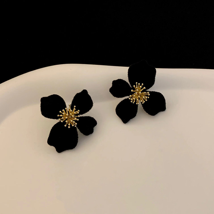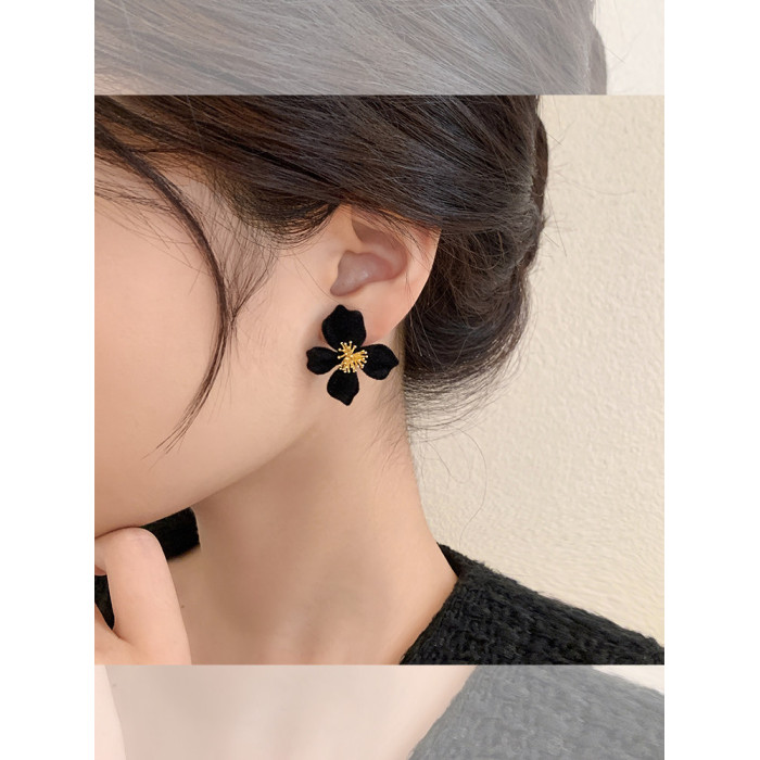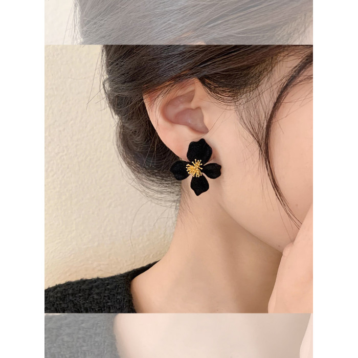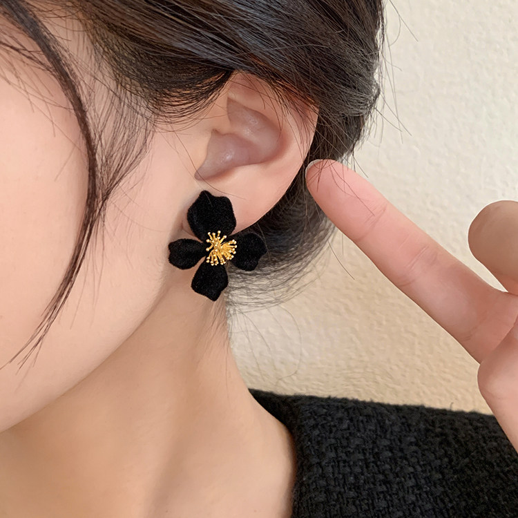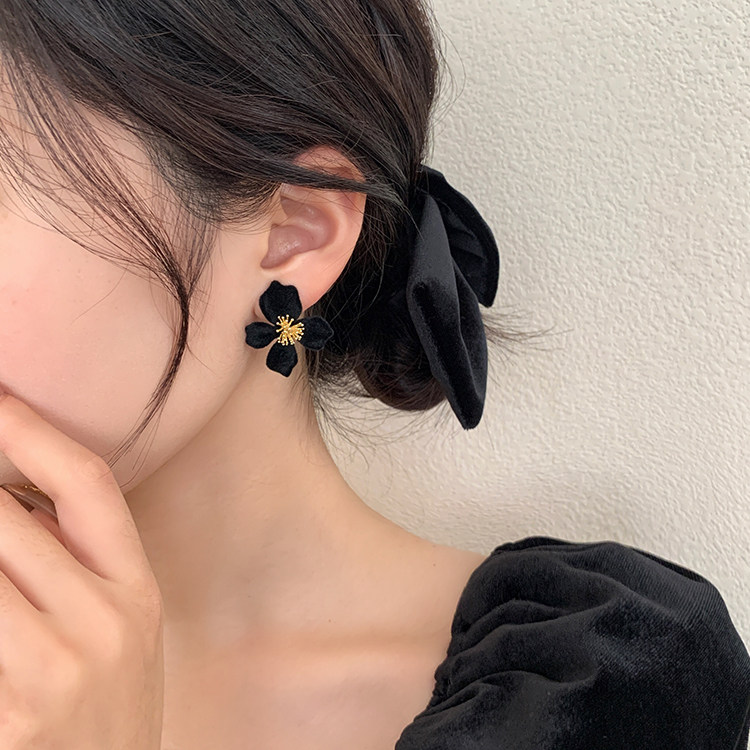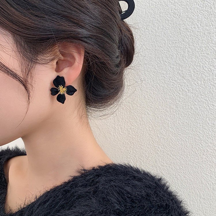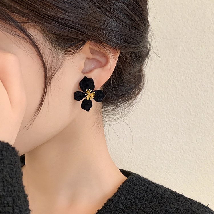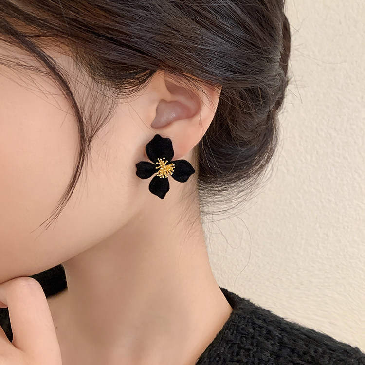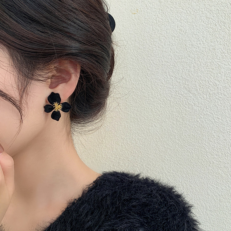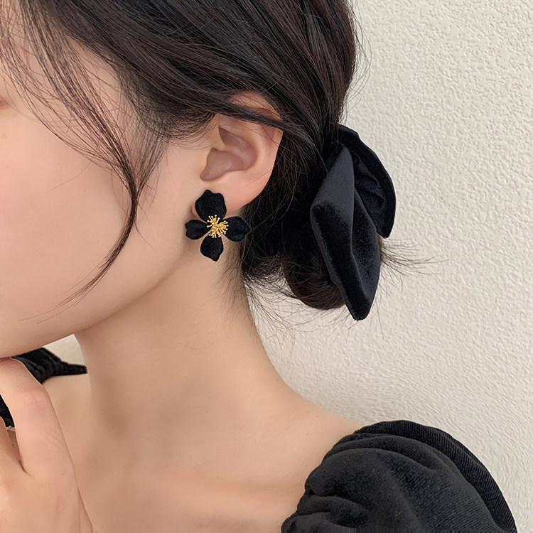 小衆設計感法式輕奢高級氣質黑色花朵耳環女秋冬獨特耳飾2026新款