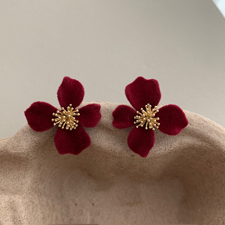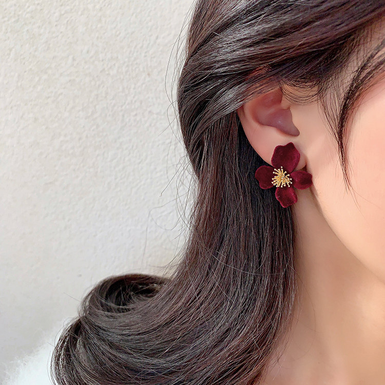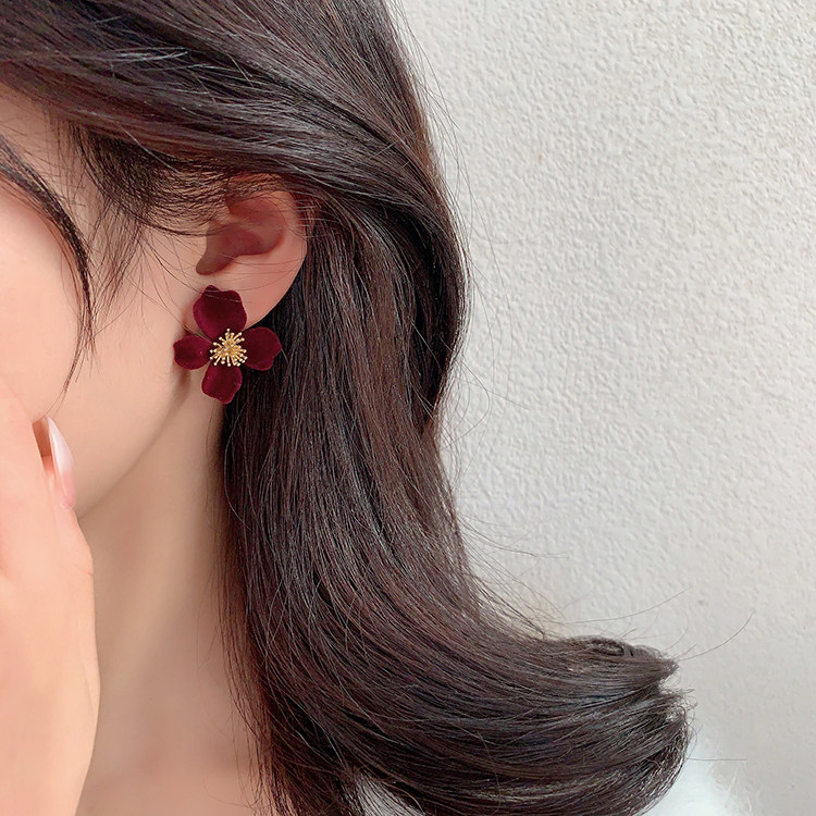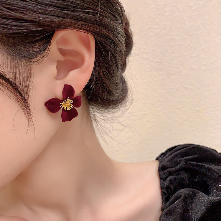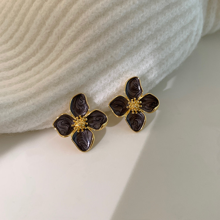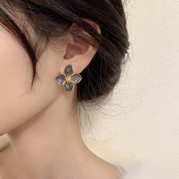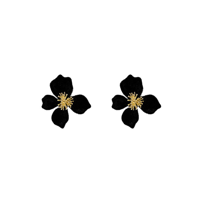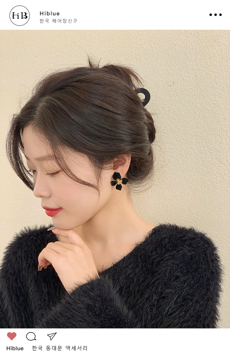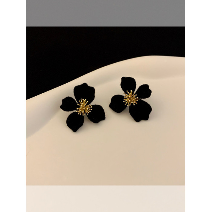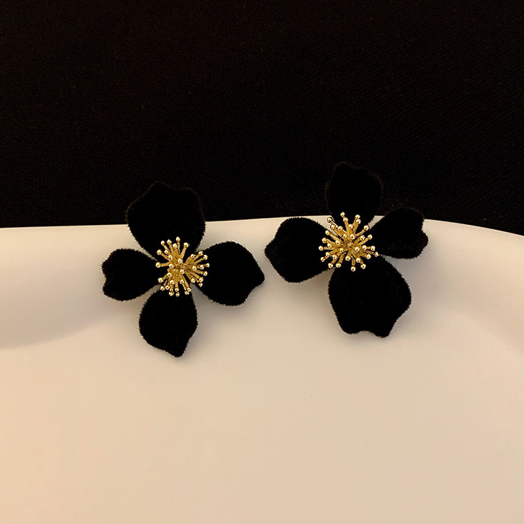 小衆設計感法式輕奢高級氣質黑色花朵耳環女秋冬獨特耳飾2026新款