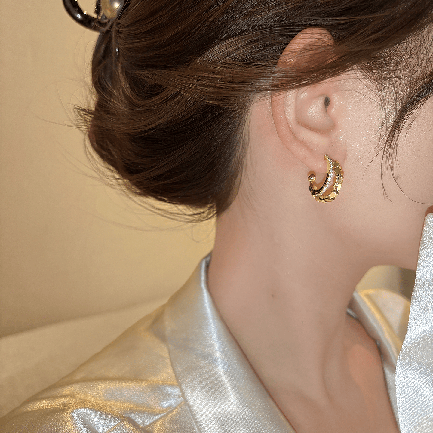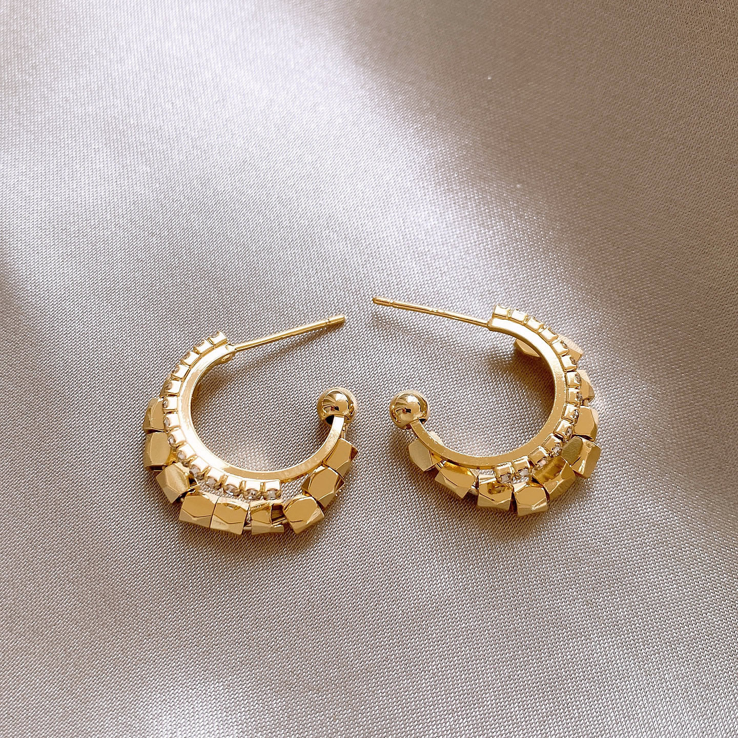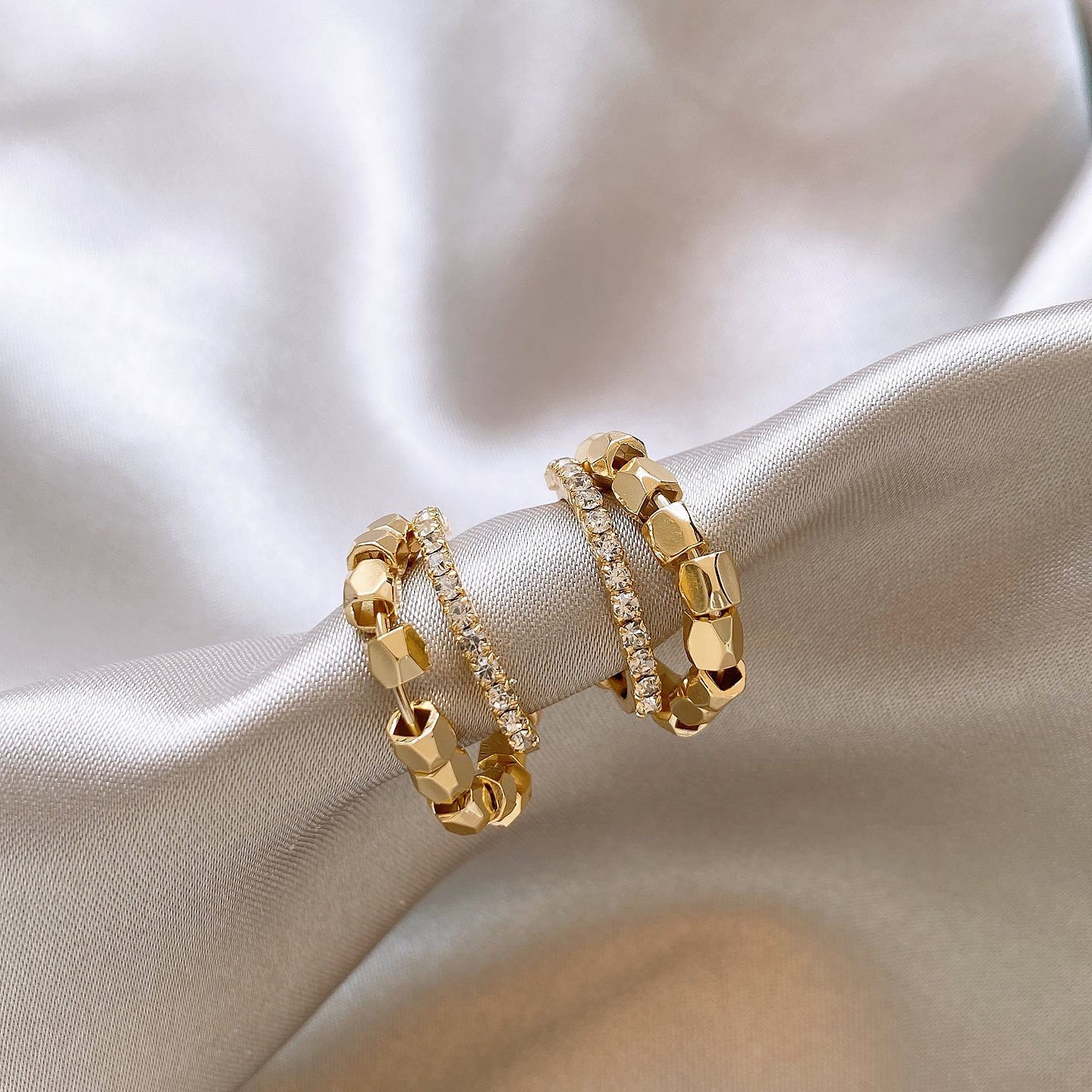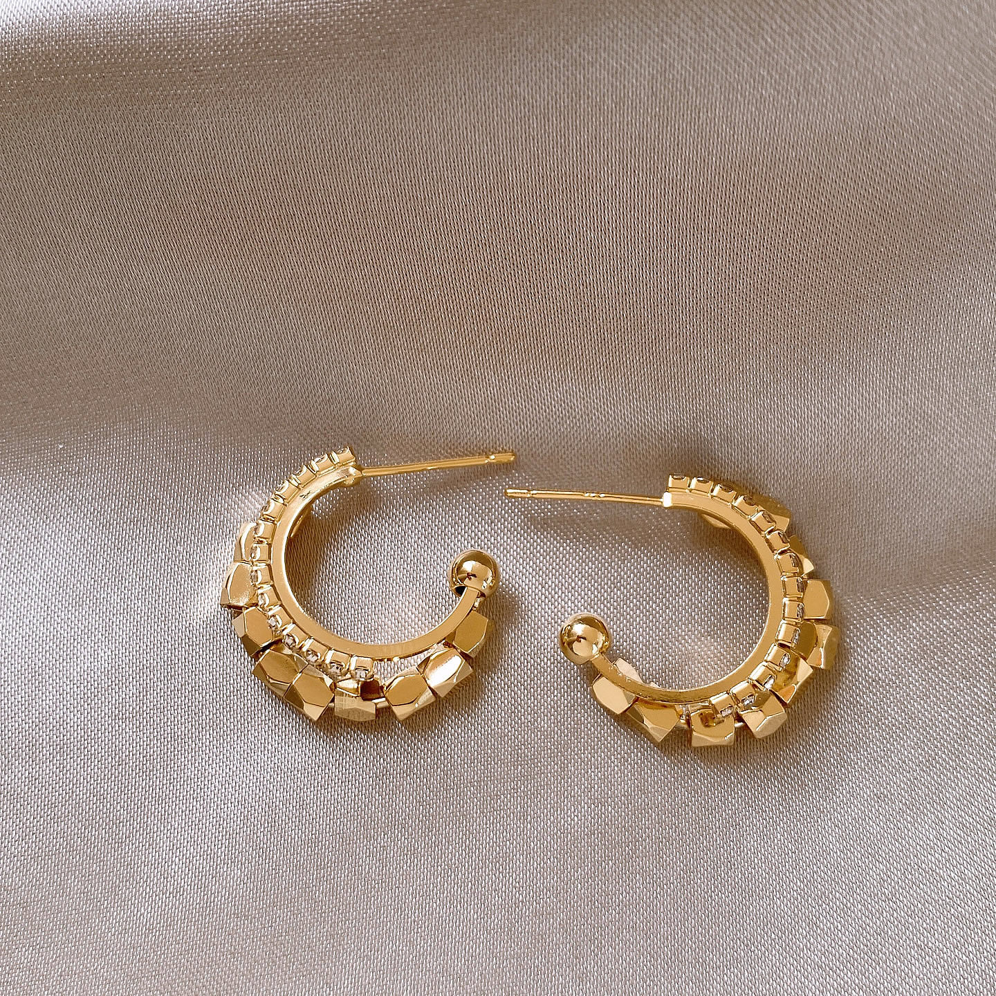 古裡雅金色碎銀子耳圈女2026新款爆款高級感輕奢耳環方圓臉耳飾品