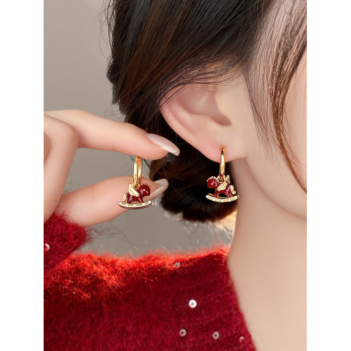 馬年小馬生肖新年耳釦耳釘超好看獨特漂亮耳環2026新款爆款高級感