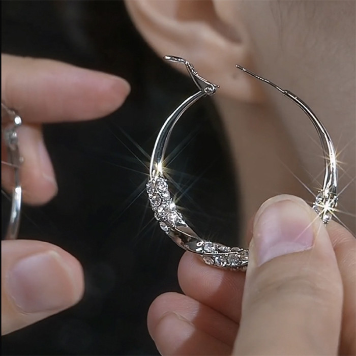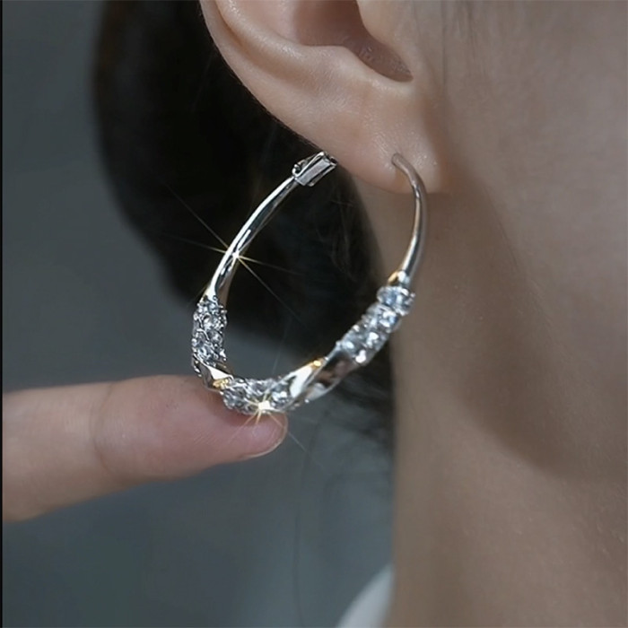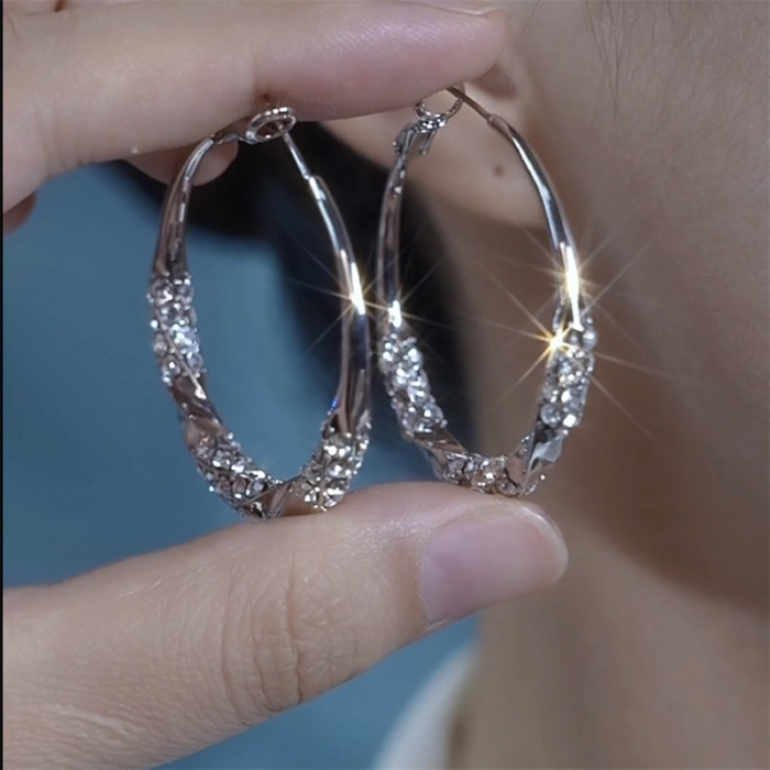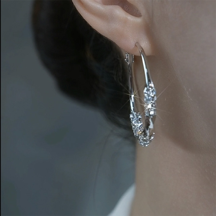 銀色鑲鑽耳圈輕奢高級感顯臉瘦大圈耳環925銀針耳釦網紅爆款耳飾