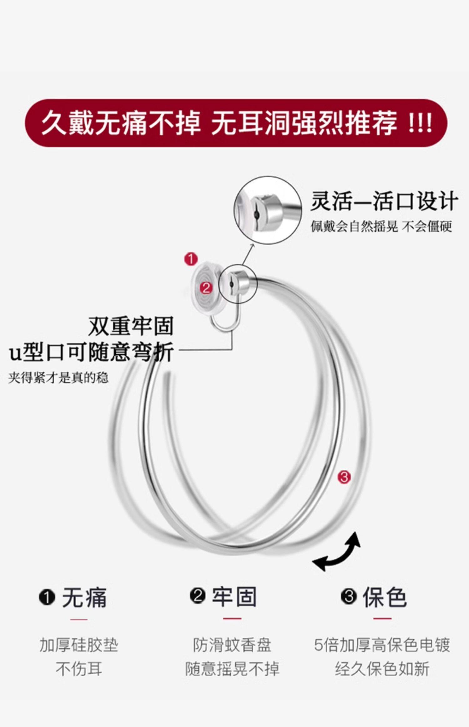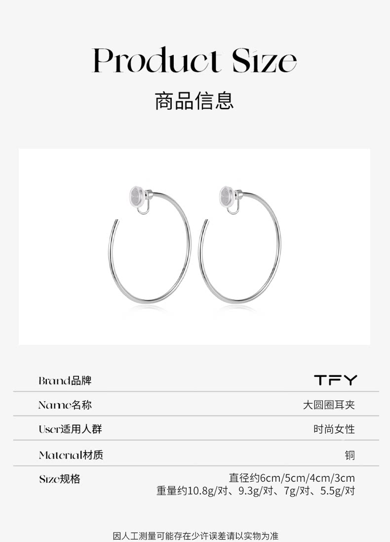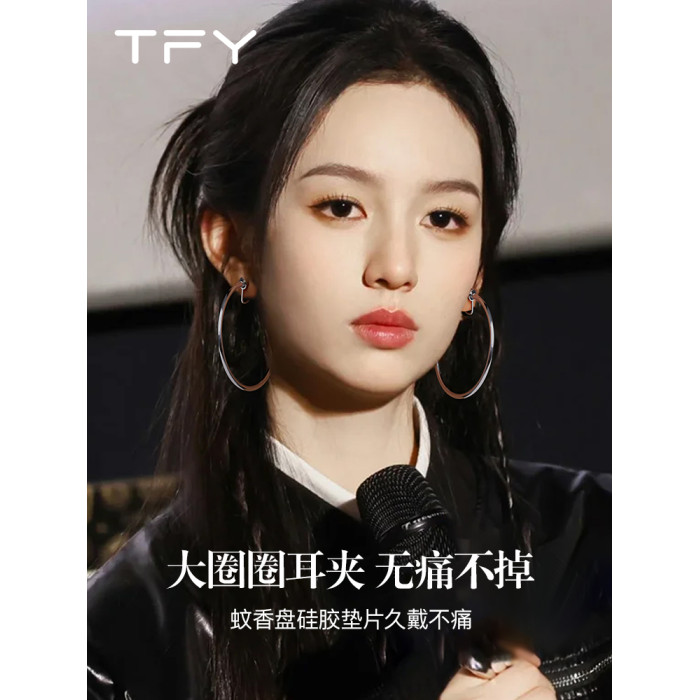 銀色大圈耳夾女無耳洞耳圈新款蚊香盤圈圈大圓圈素圈耳環圓環耳飾