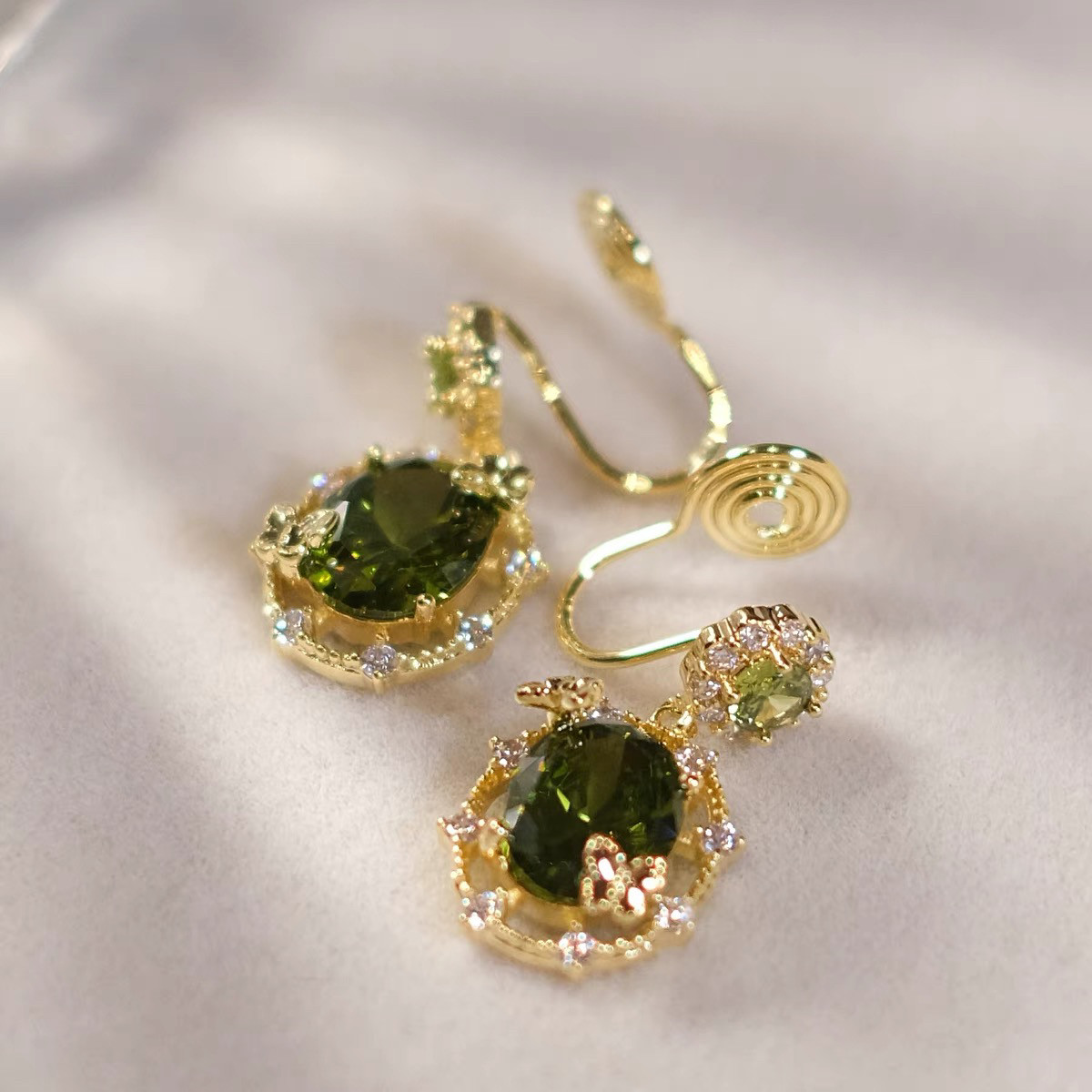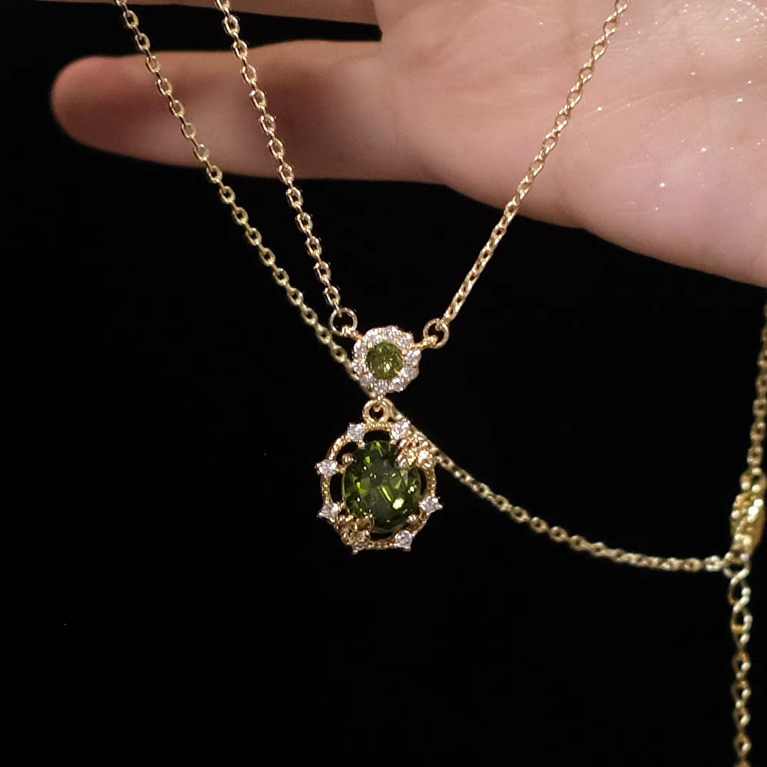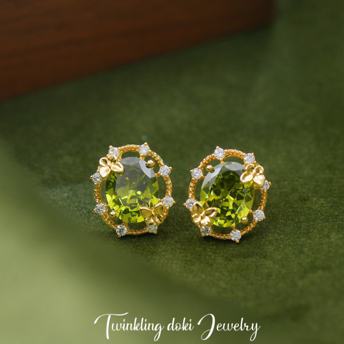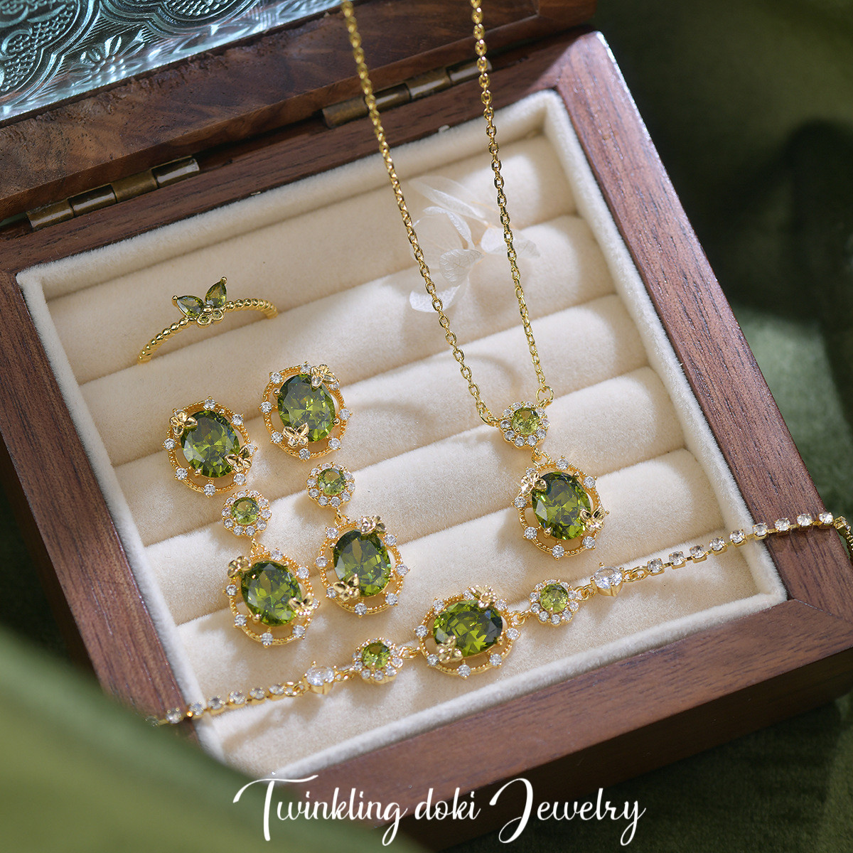 綠野仙蹤~森系精緻滿鑽超閃橄欖綠鋯石耳釘耳夾手鏈項鍊戒指套裝