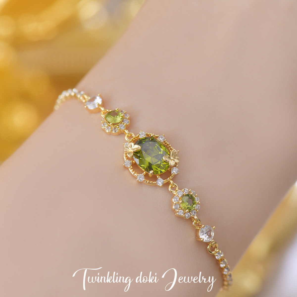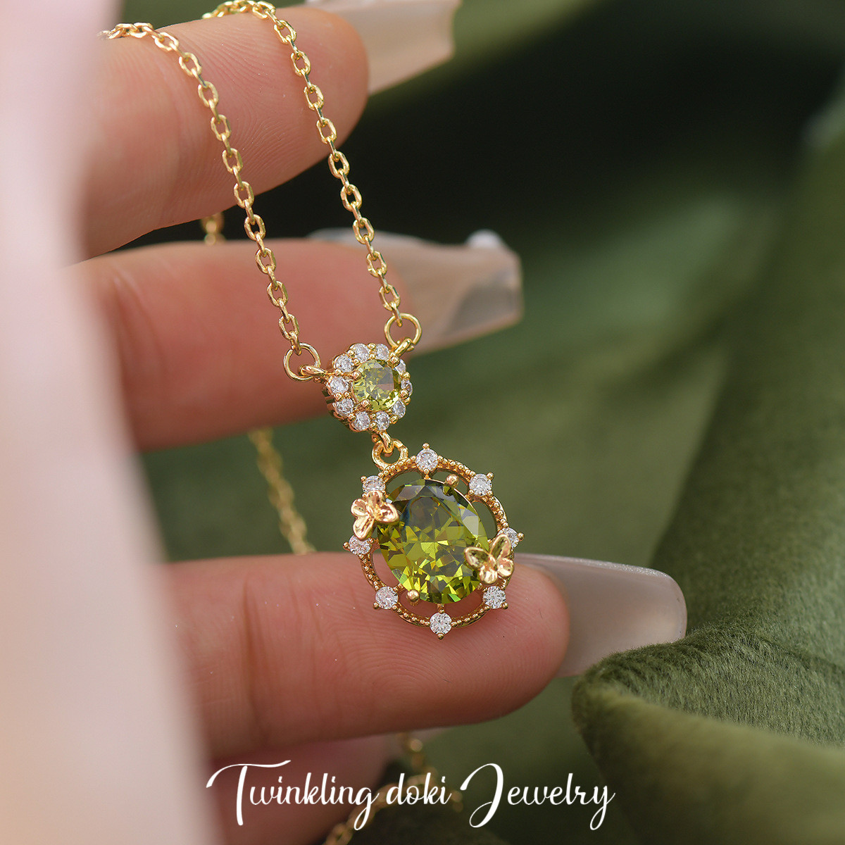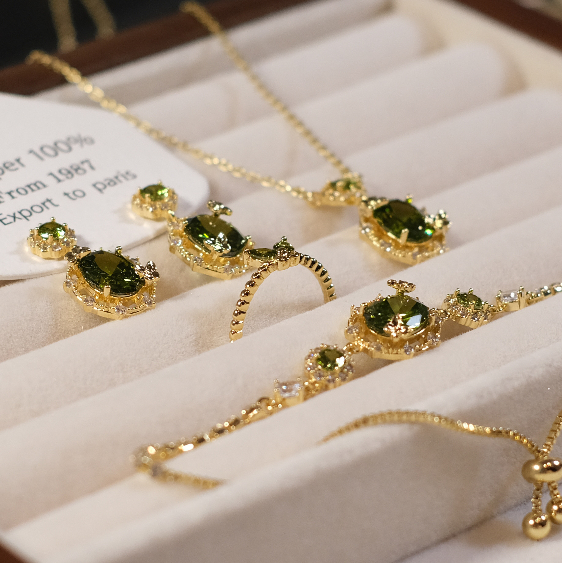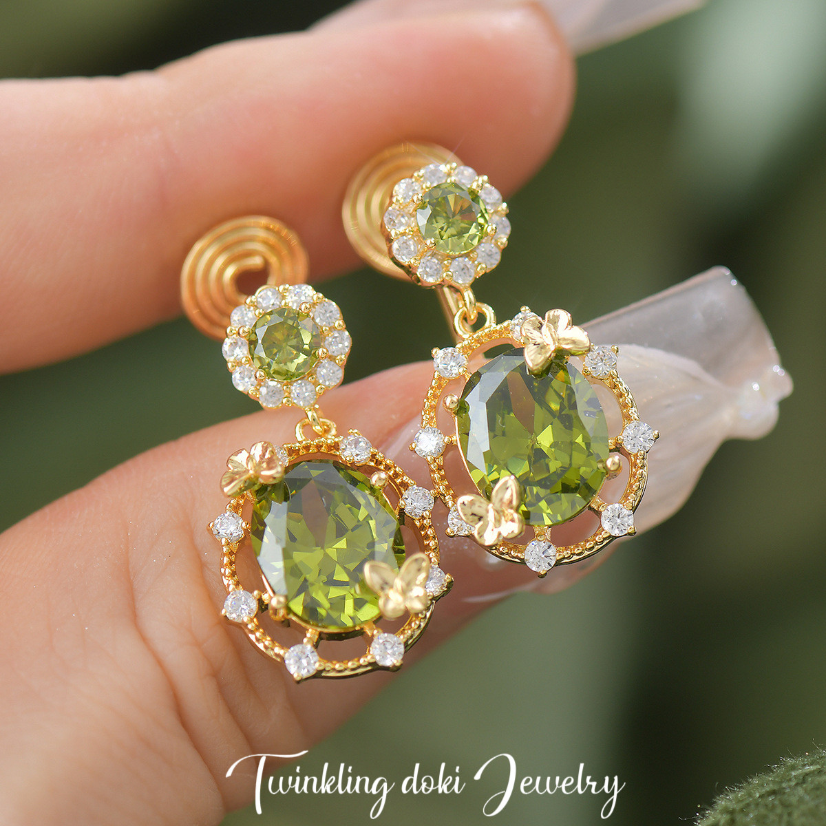 綠野仙蹤~森系精緻滿鑽超閃橄欖綠鋯石耳釘耳夾手鏈項鍊戒指套裝