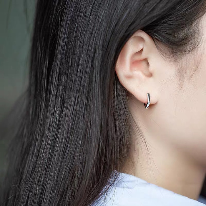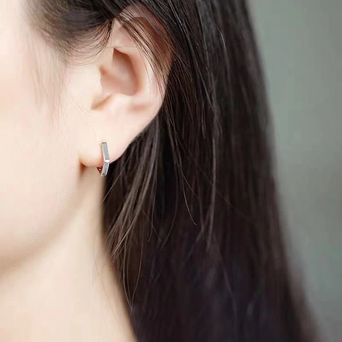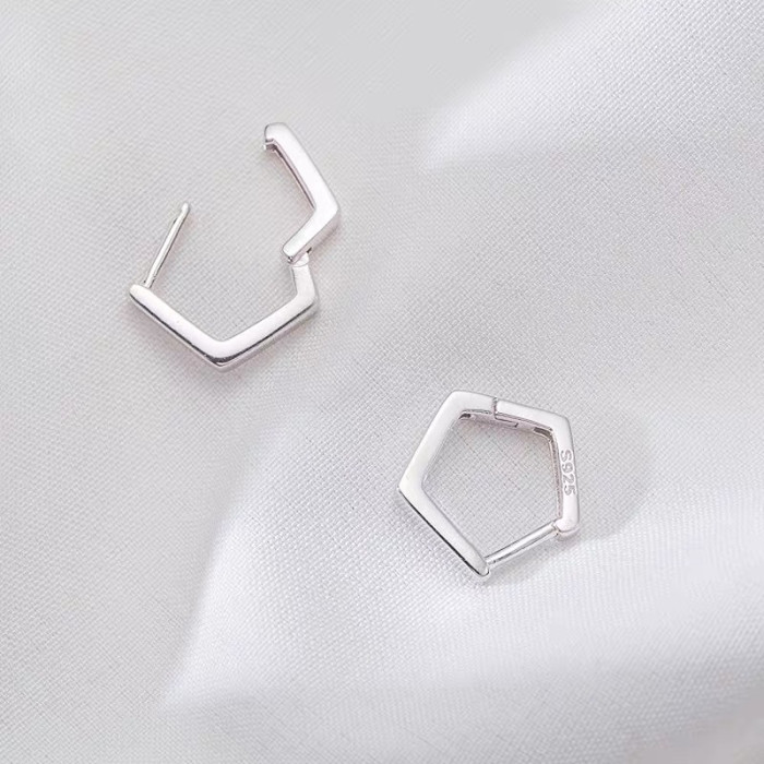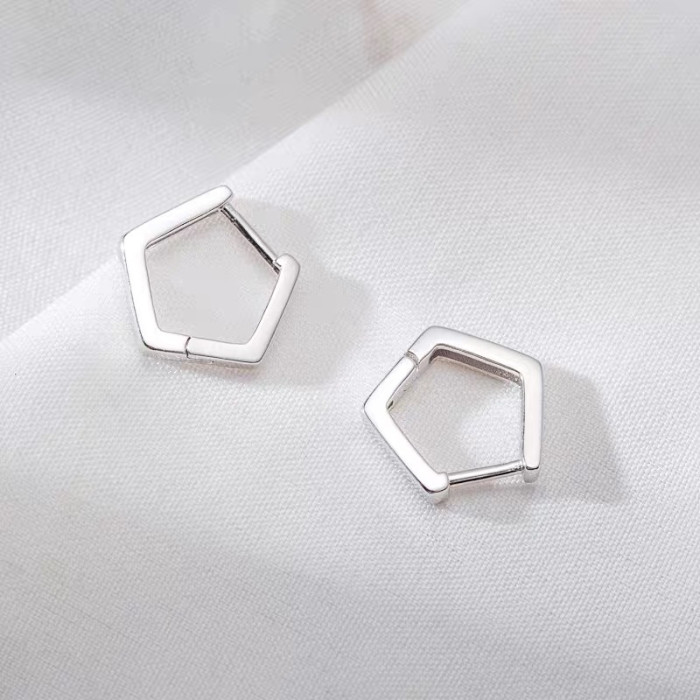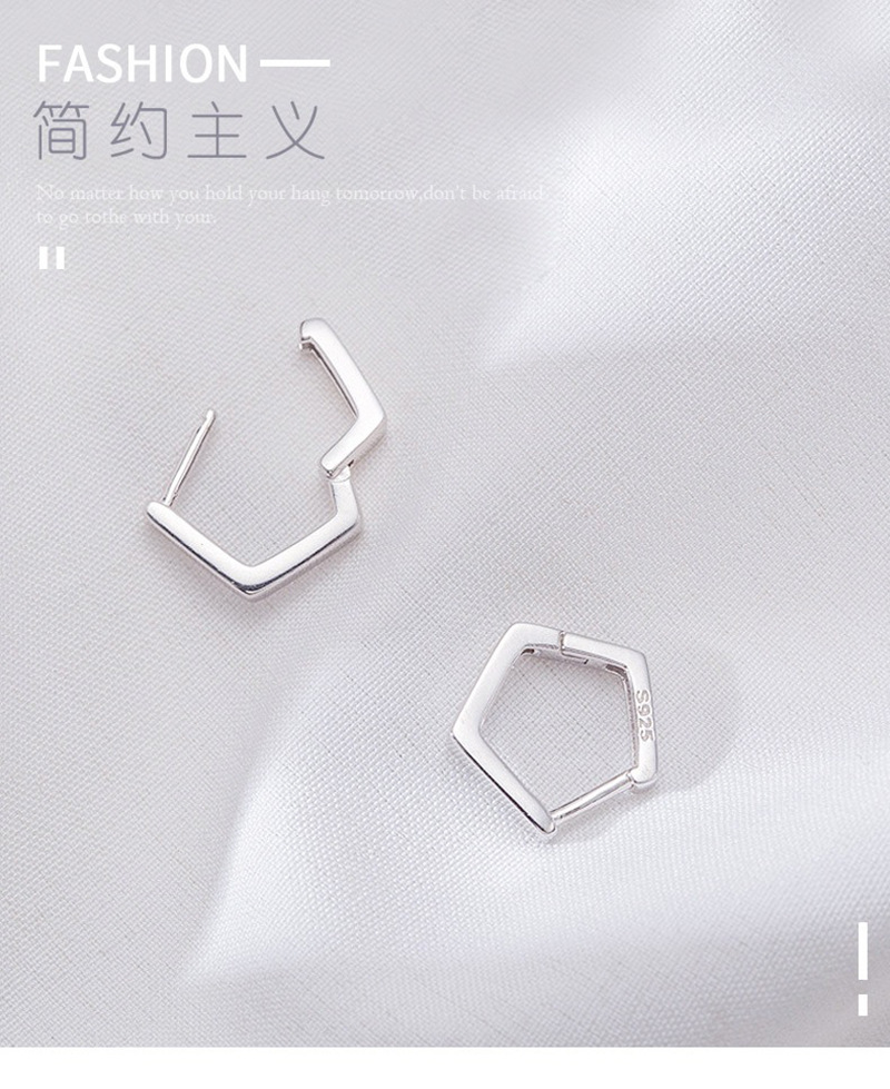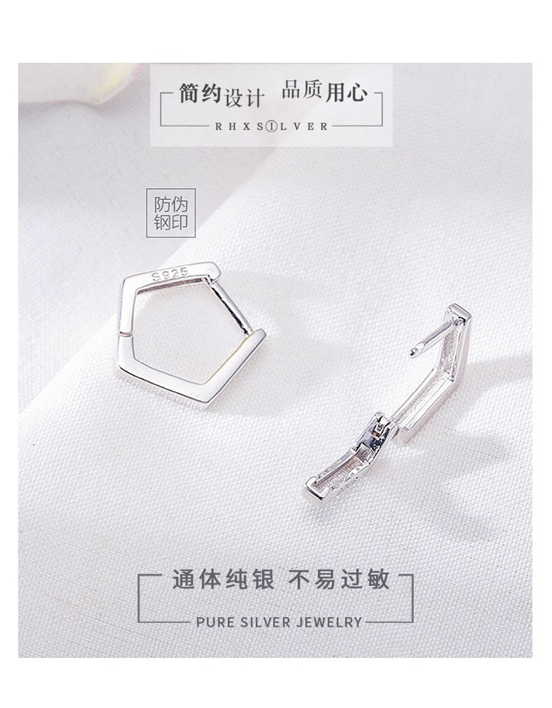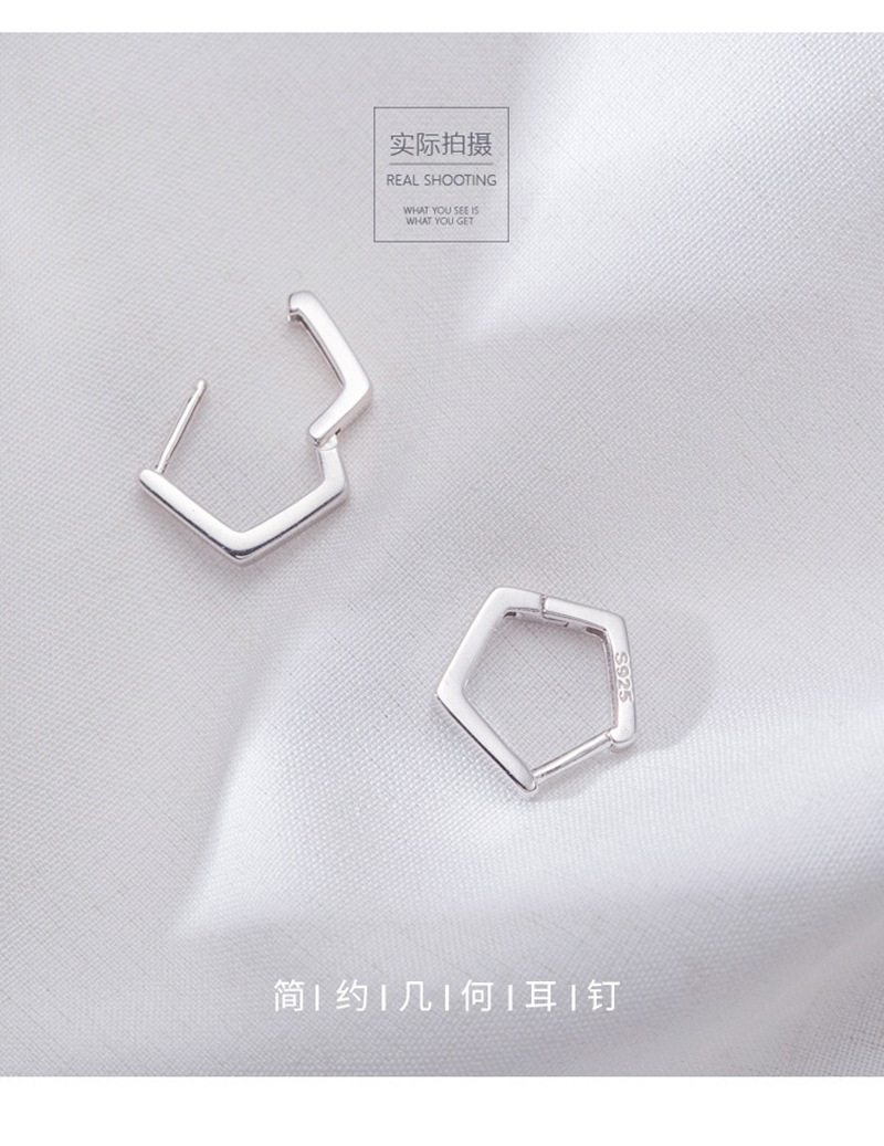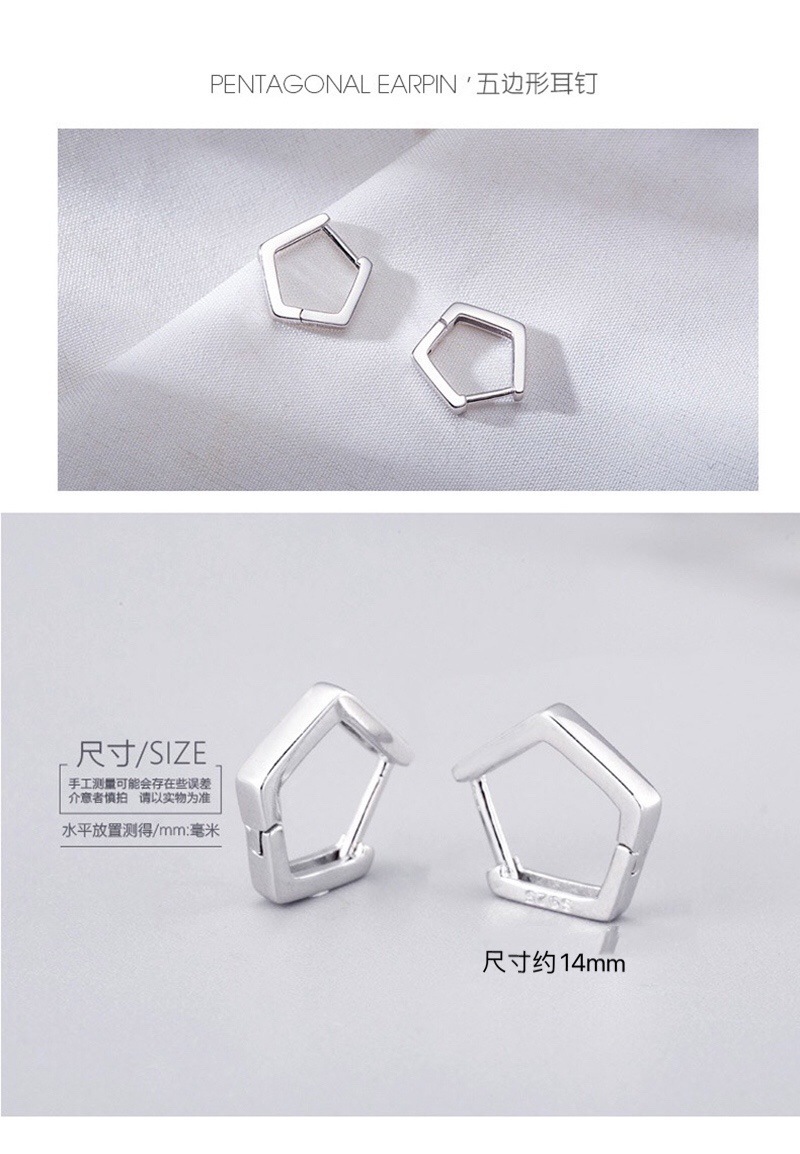 如業 925純銀耳釦女日系韓國簡約風格幾何五邊形短款耳飾耳圈個性