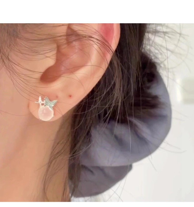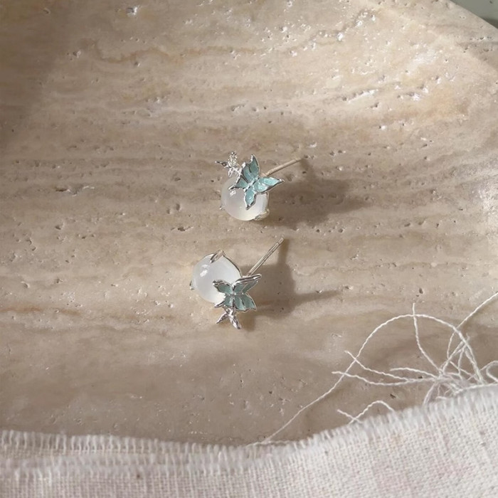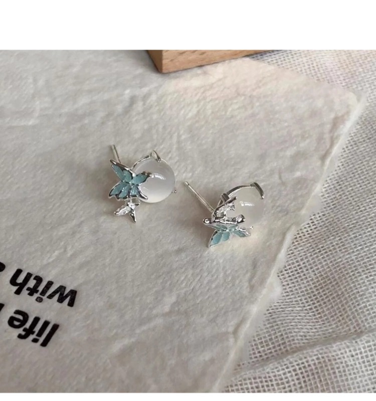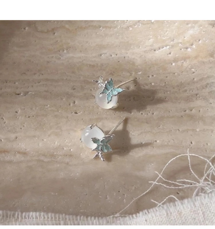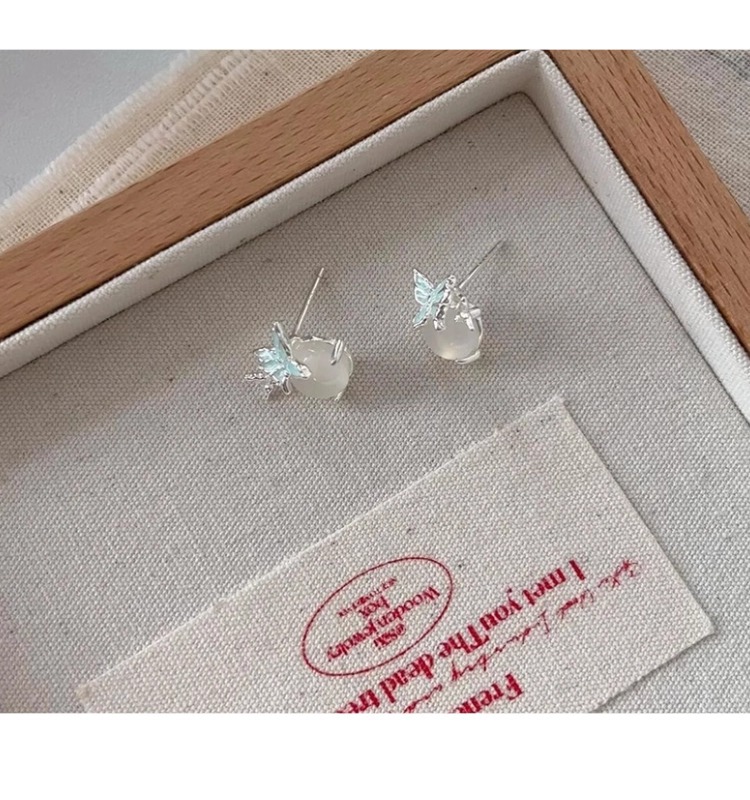925銀針藍蝴蝶白玉髓耳釘清冷感獨特小衆設計高級感輕奢精緻耳環