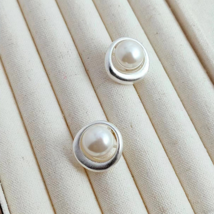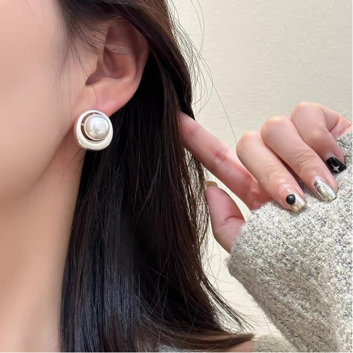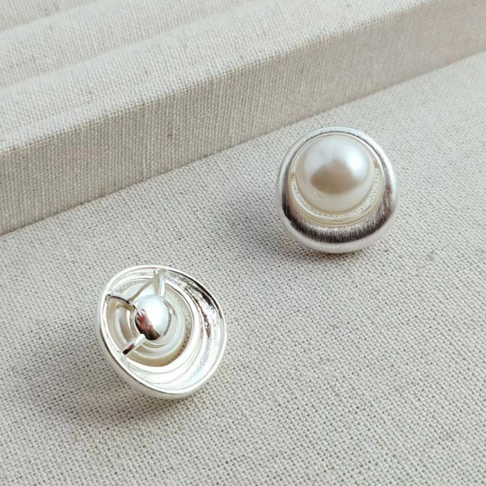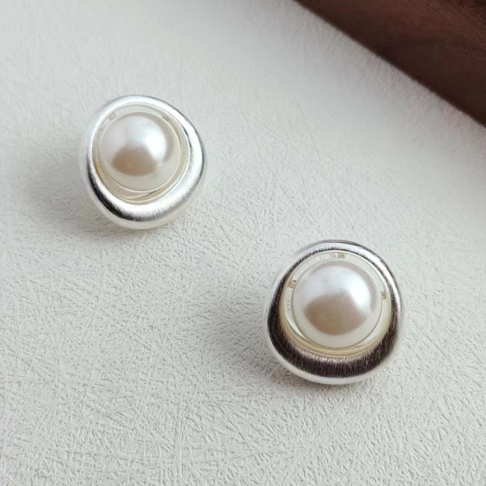 復古氣質珍珠耳釘女小衆設計手工拉絲925銀針耳環輕奢高級感耳飾