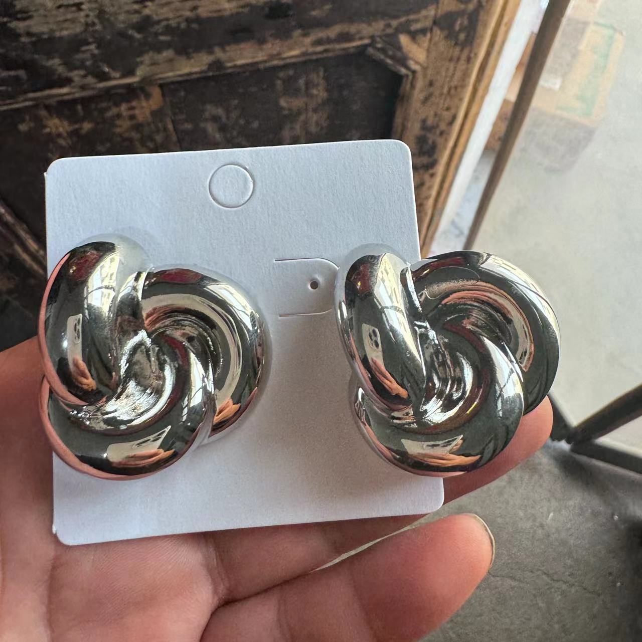 歐美港味復古金屬幾何圈圈耳環女925銀針耳釘個性獨特
