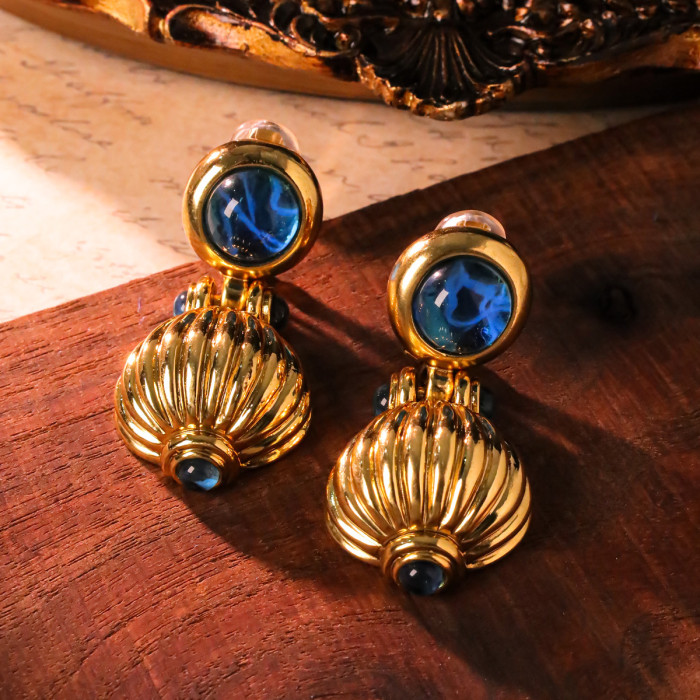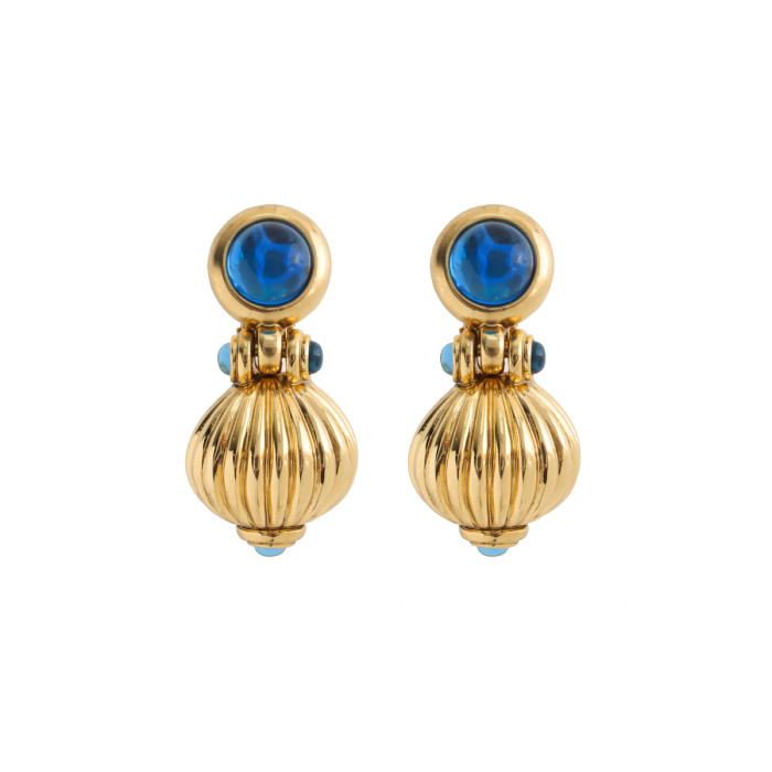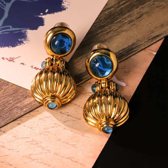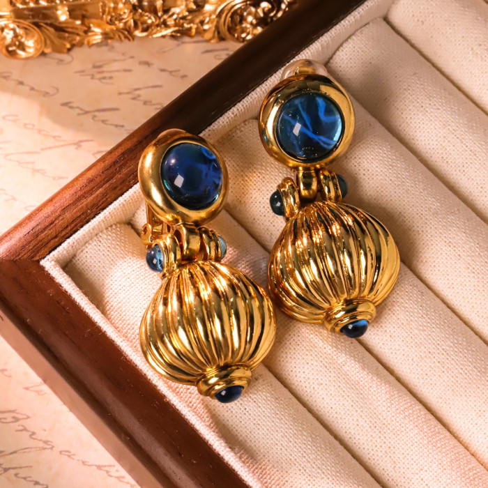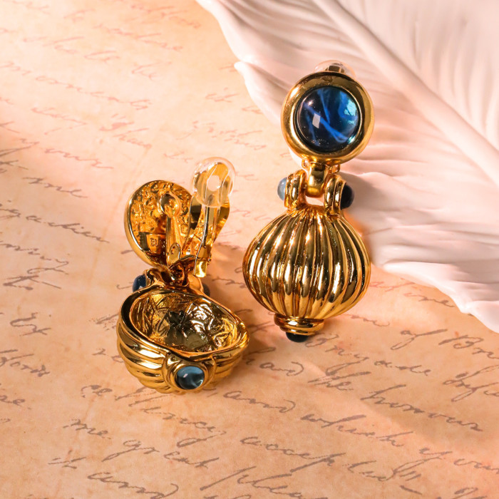 復古vintage宮廷風藍色金屬耳夾重工輕奢優雅耳飾女青島中古