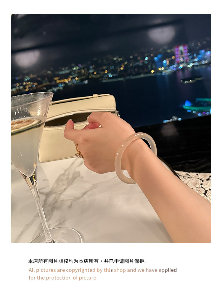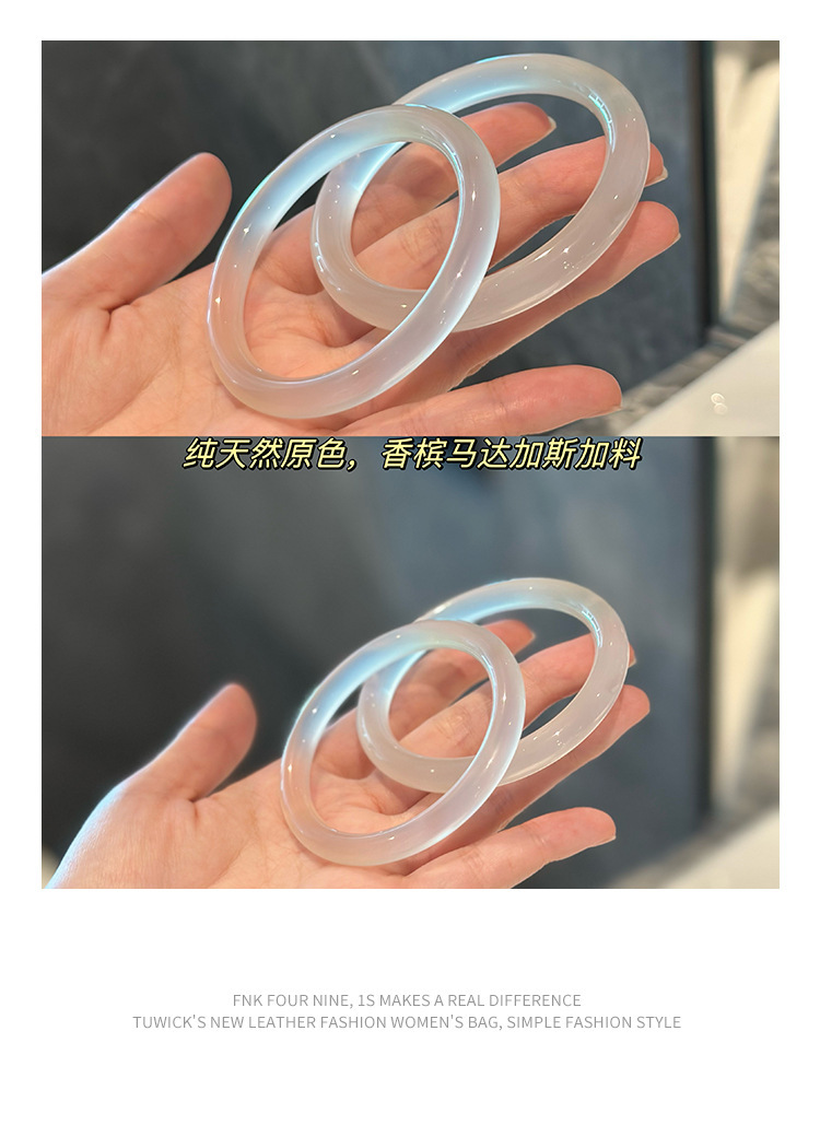 天然冰種香檳色瑪瑙手鐲女高級馬達加斯加細圓條冰透玉髓鐲子百搭