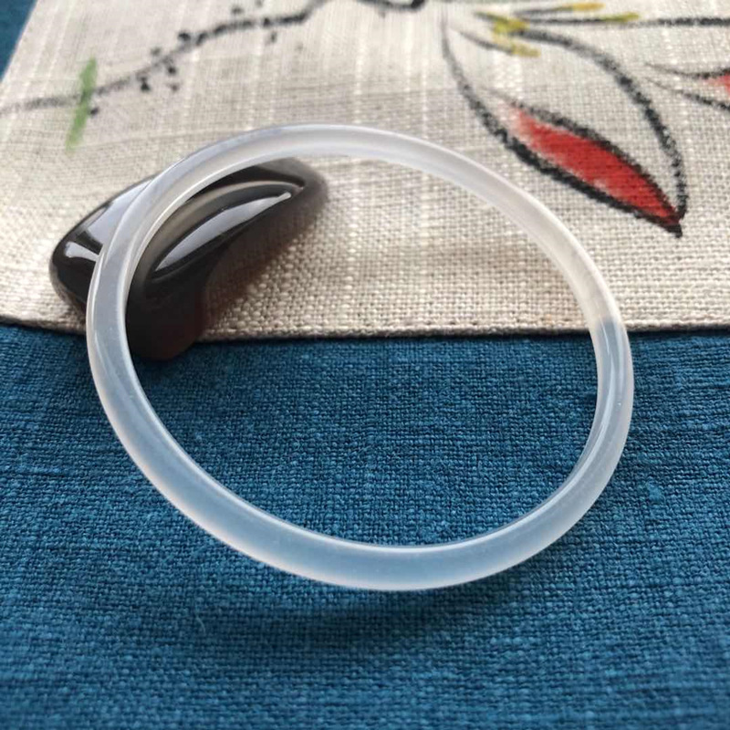 天然瑪瑙手鐲冰種荔枝凍白玉髓手鐲女細圓條叮噹鐲菸灰色極細玉鐲