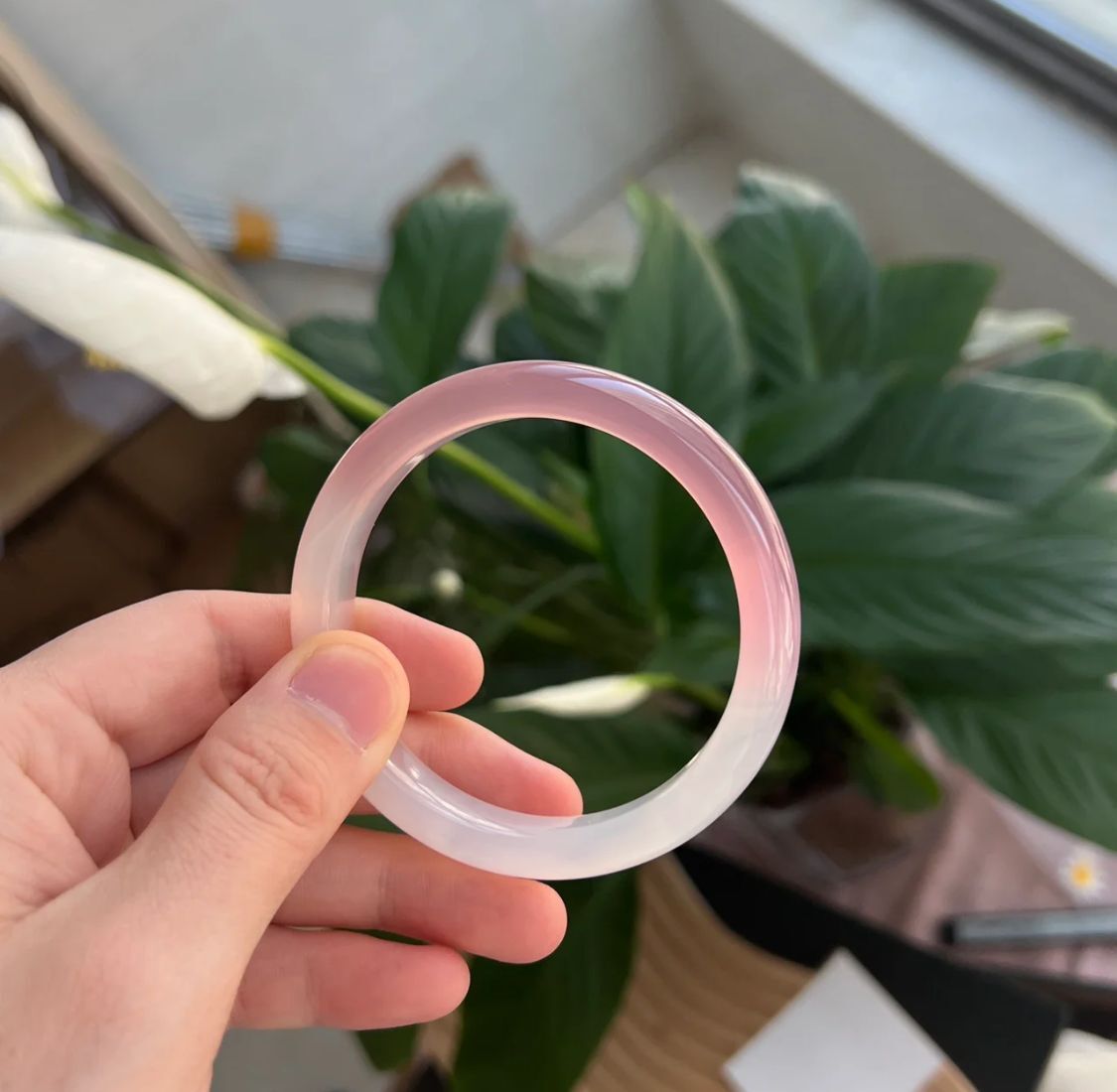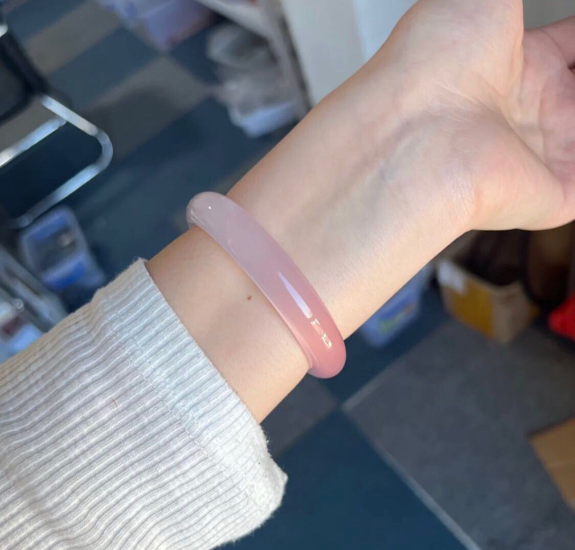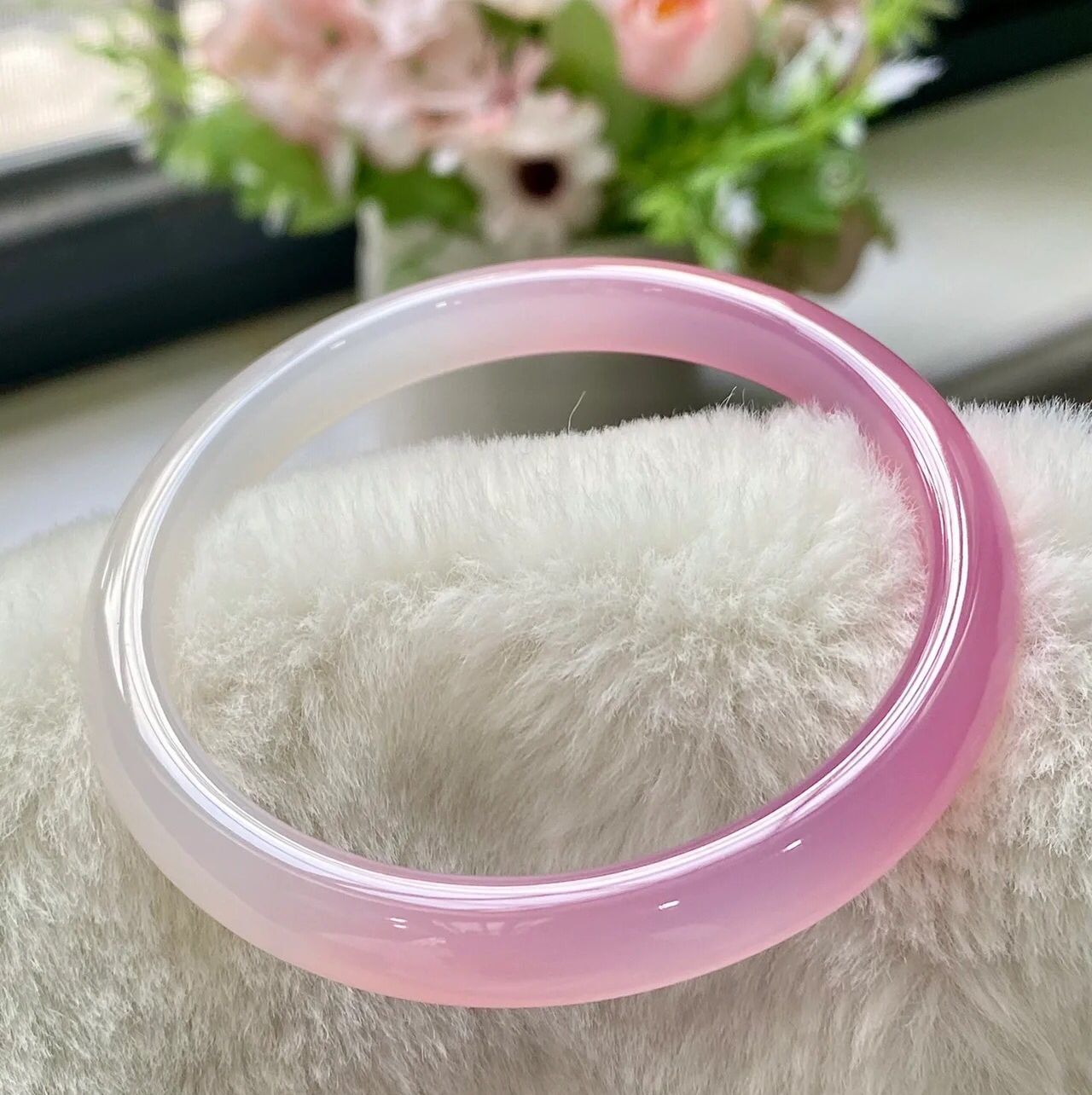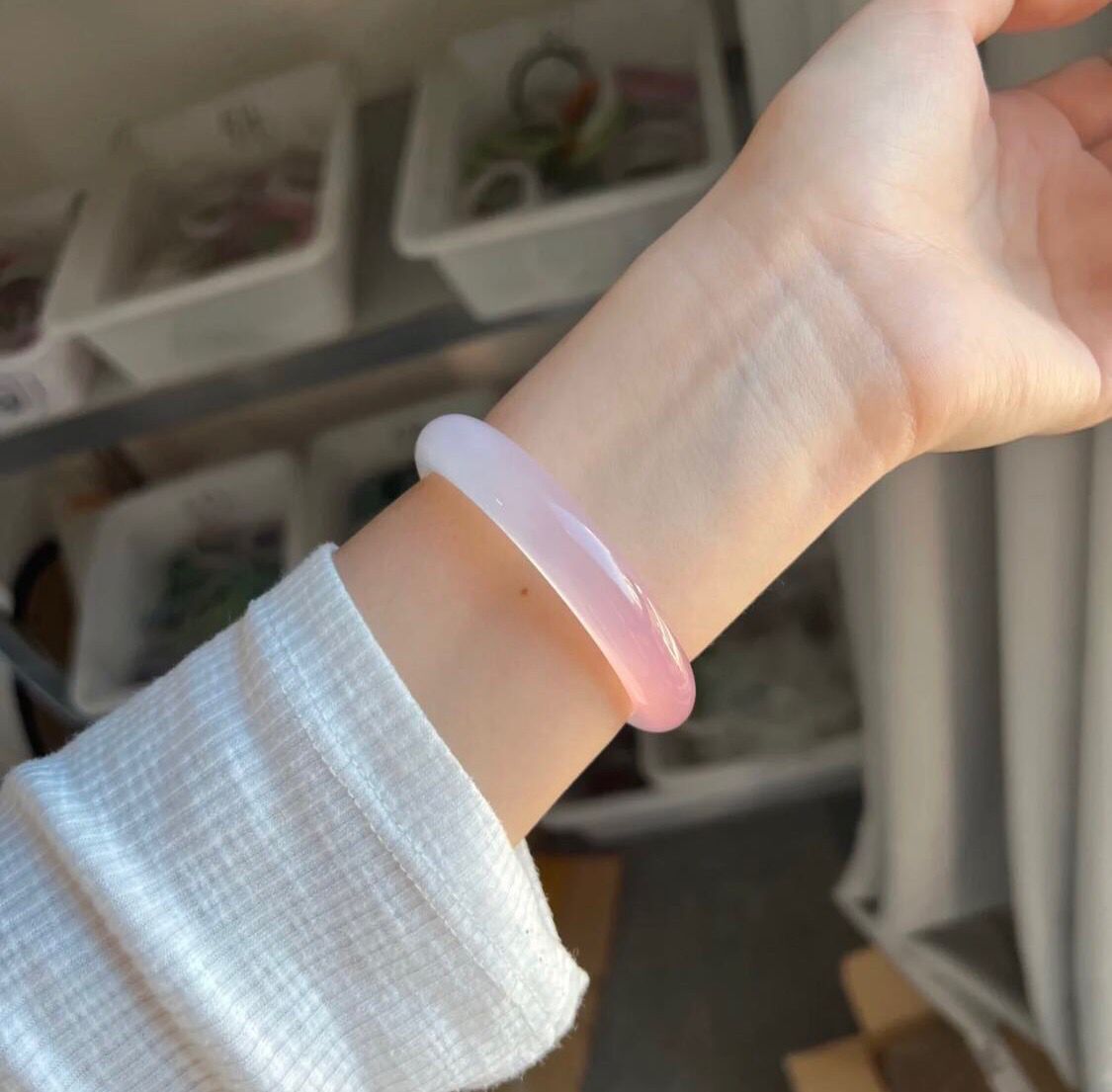 時尚新款高冰漸變粉玉髓手鐲鬱金香半山半水瑪瑙玉石鐲子