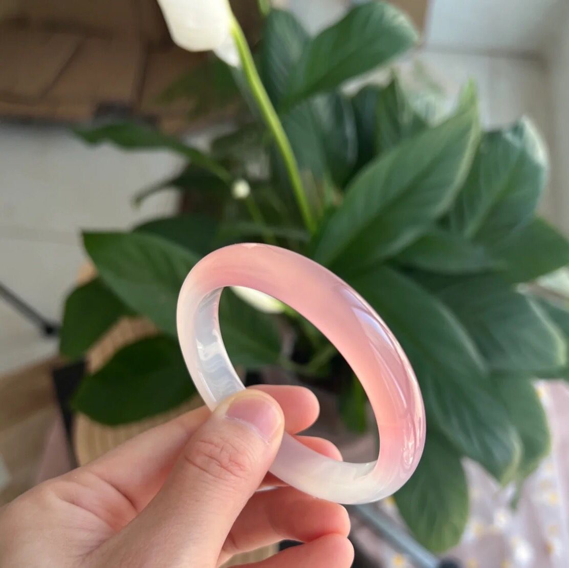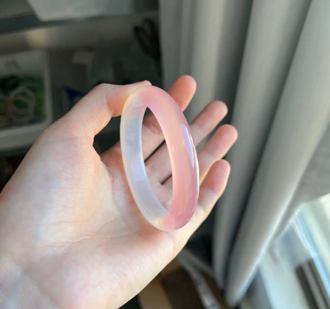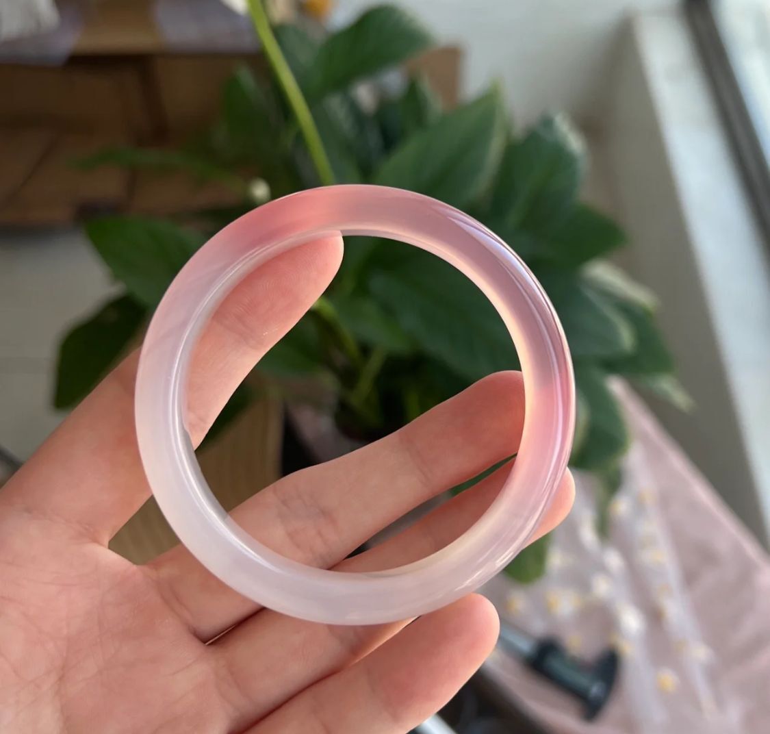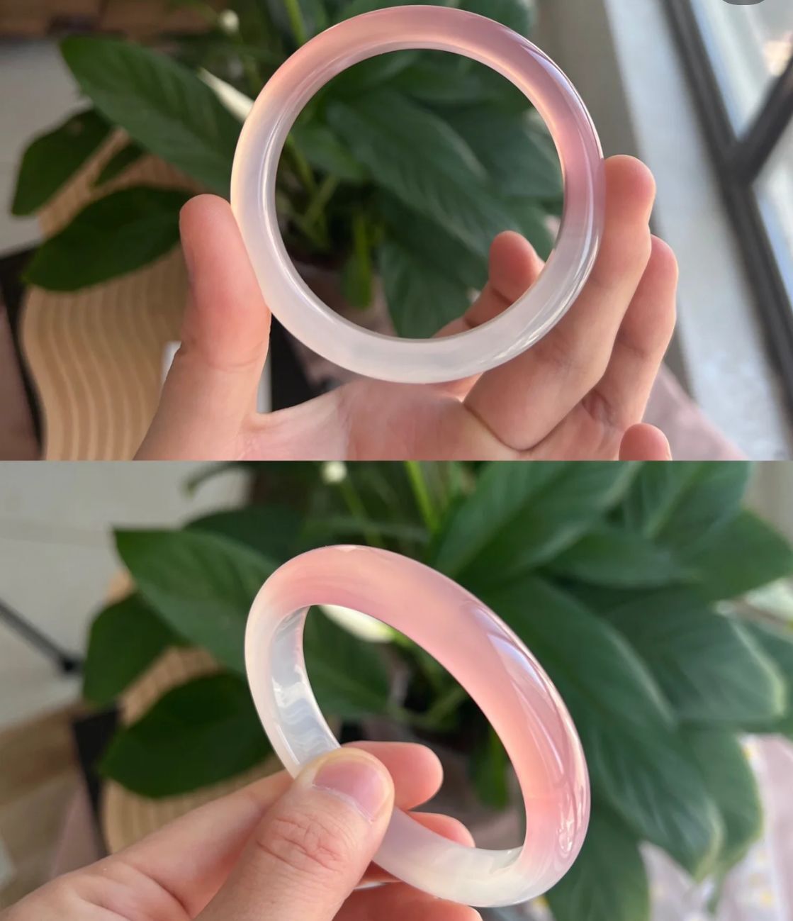 時尚新款高冰漸變粉玉髓手鐲鬱金香半山半水瑪瑙玉石鐲子