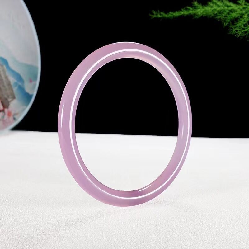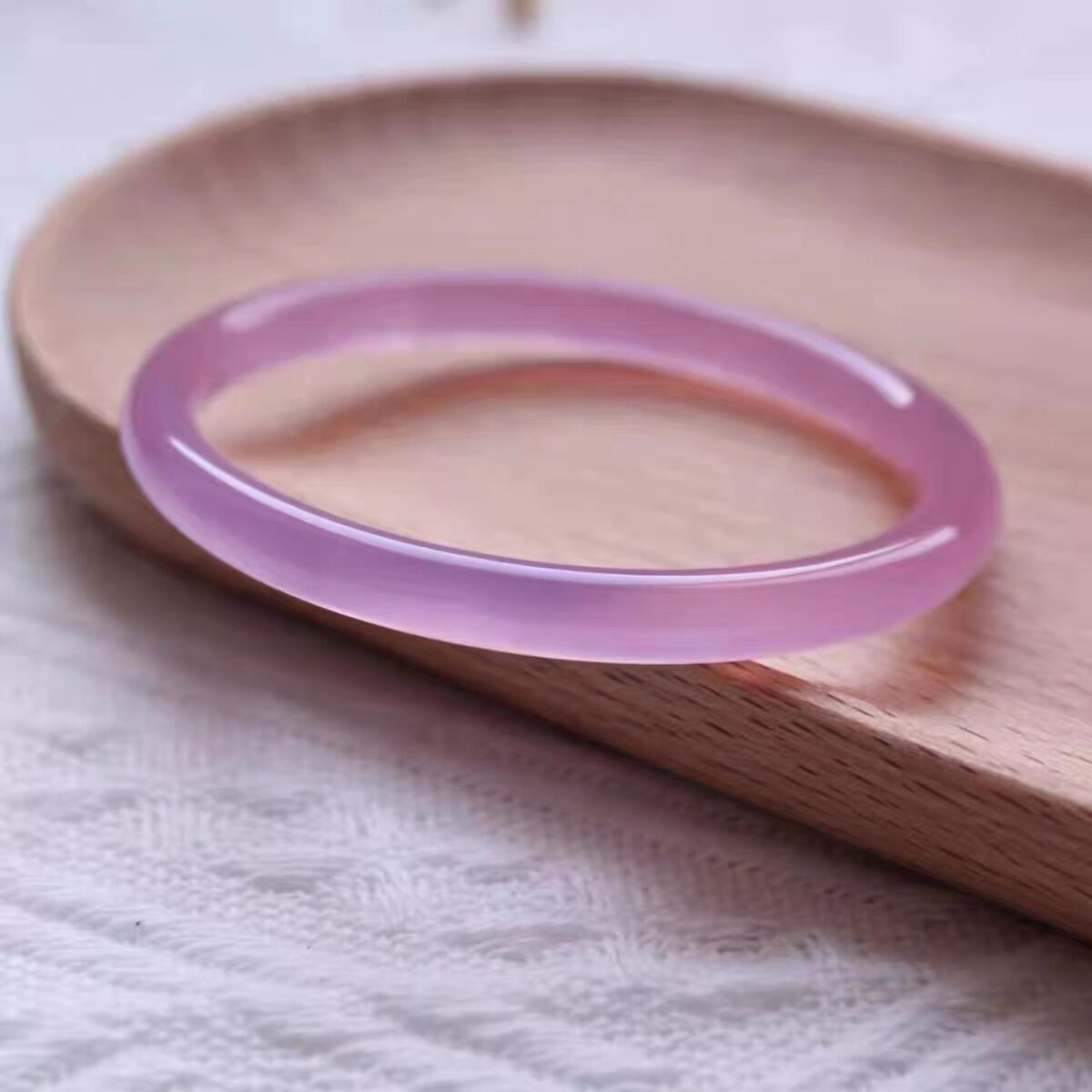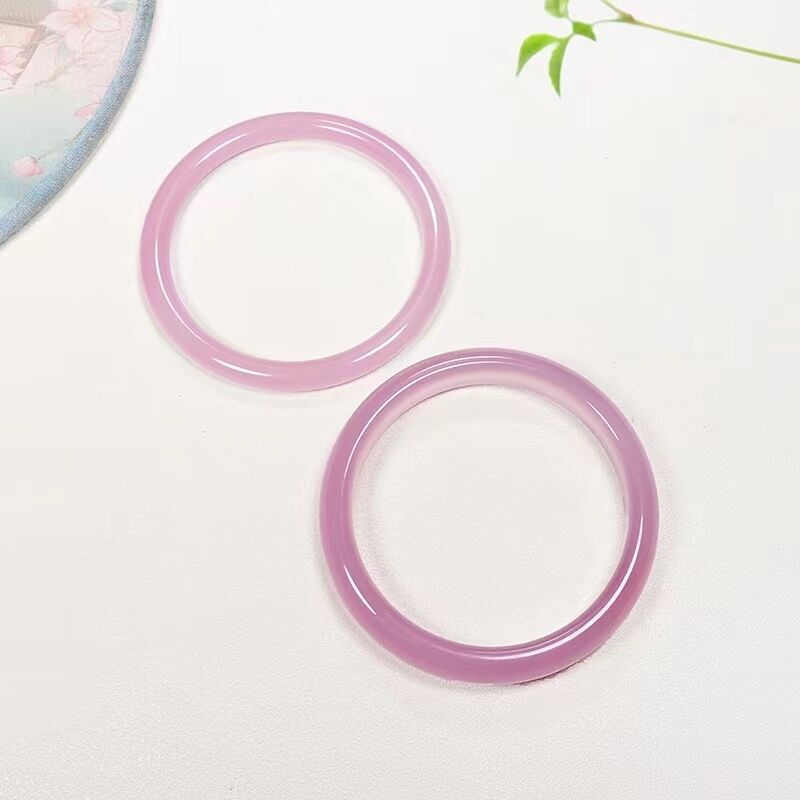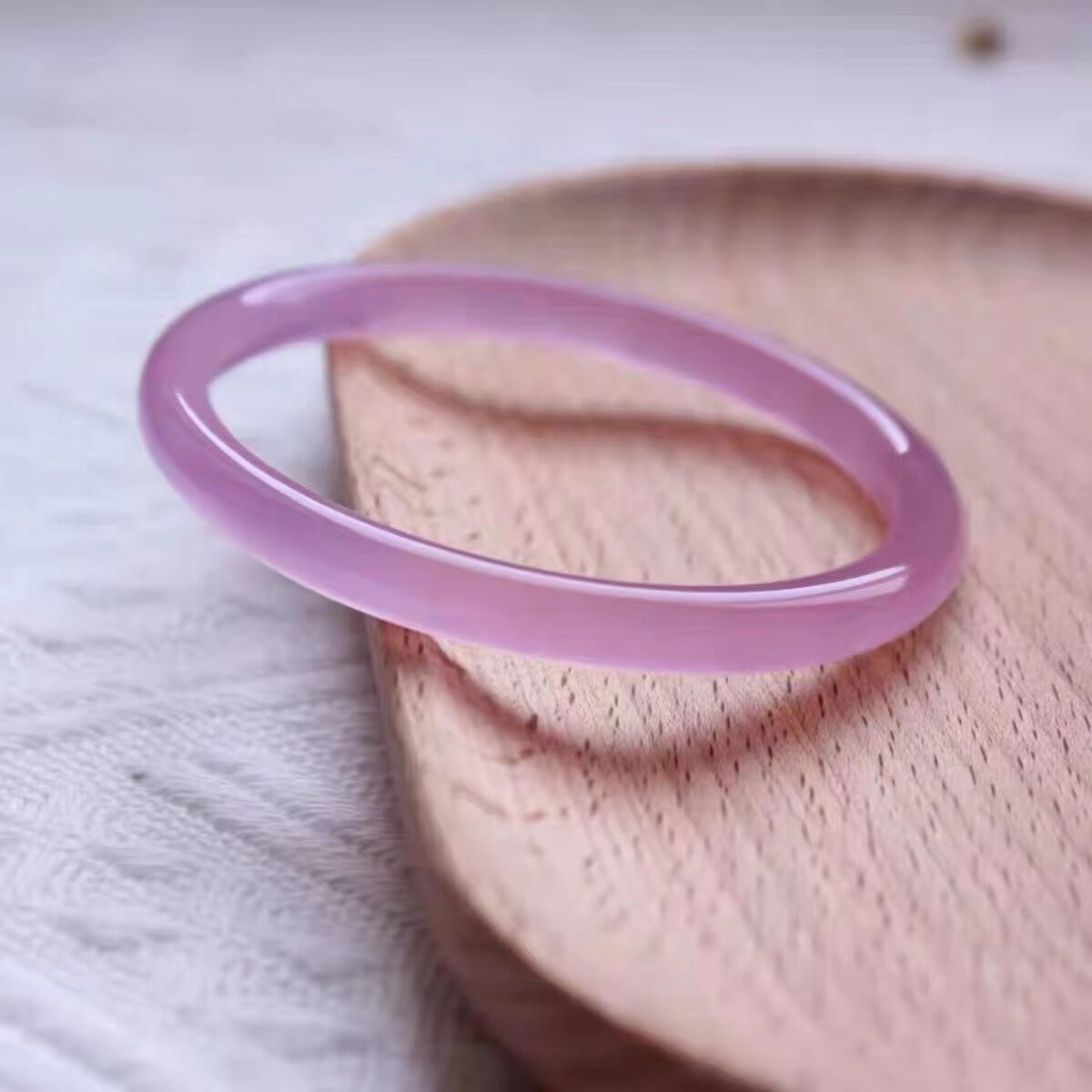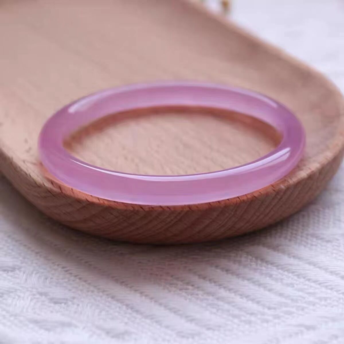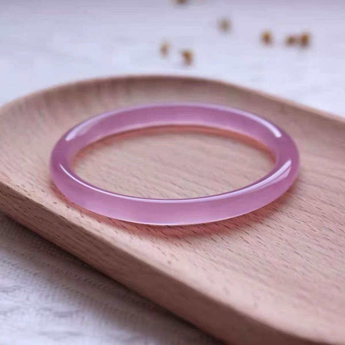 天然粉玉髓瑪瑙手鐲冰種叮噹鐲少女美人條仙女鐲圓條手鐲飾品