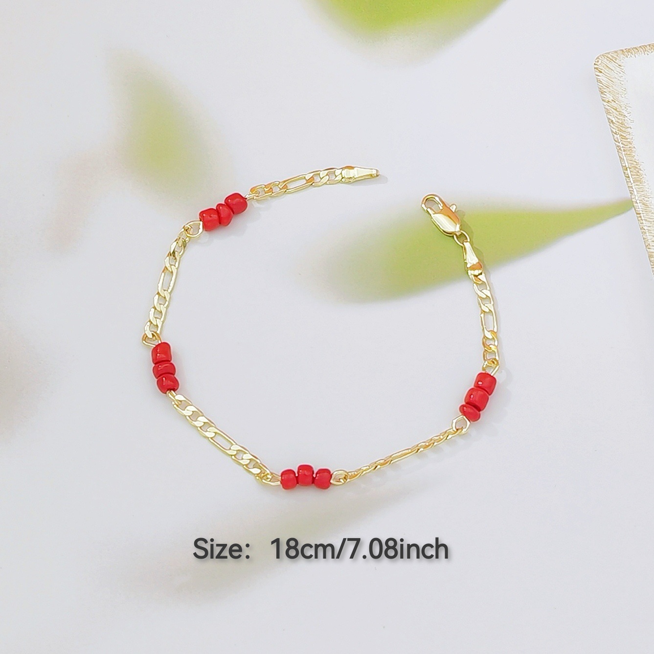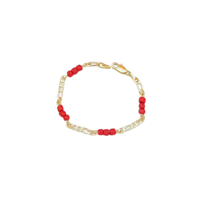 仿紅瑪瑙串珠拼接鏈條設計感飾品銅鍍18k金百搭首飾手鏈