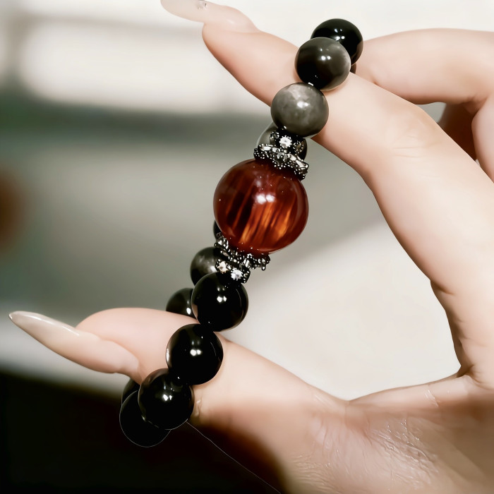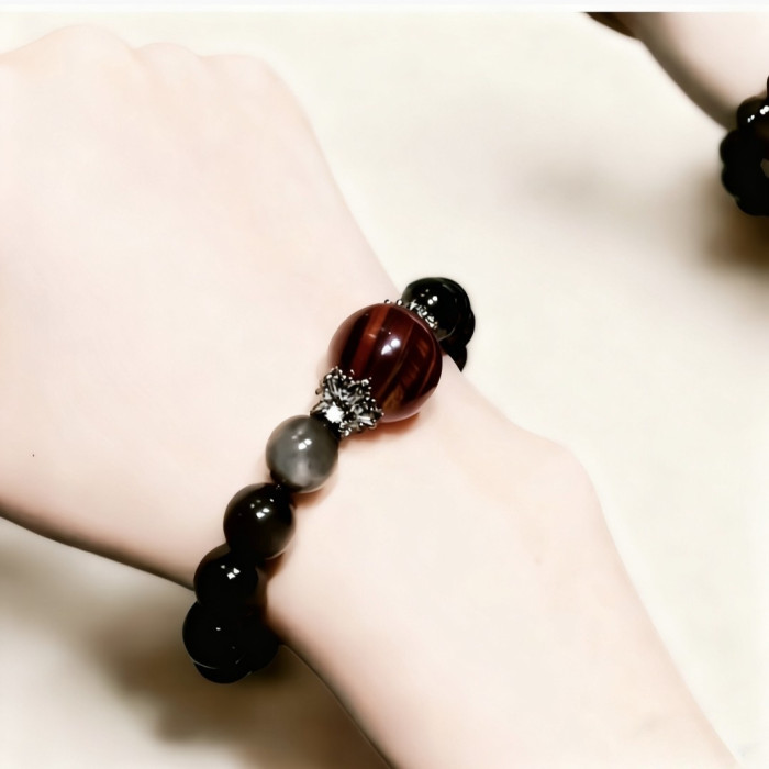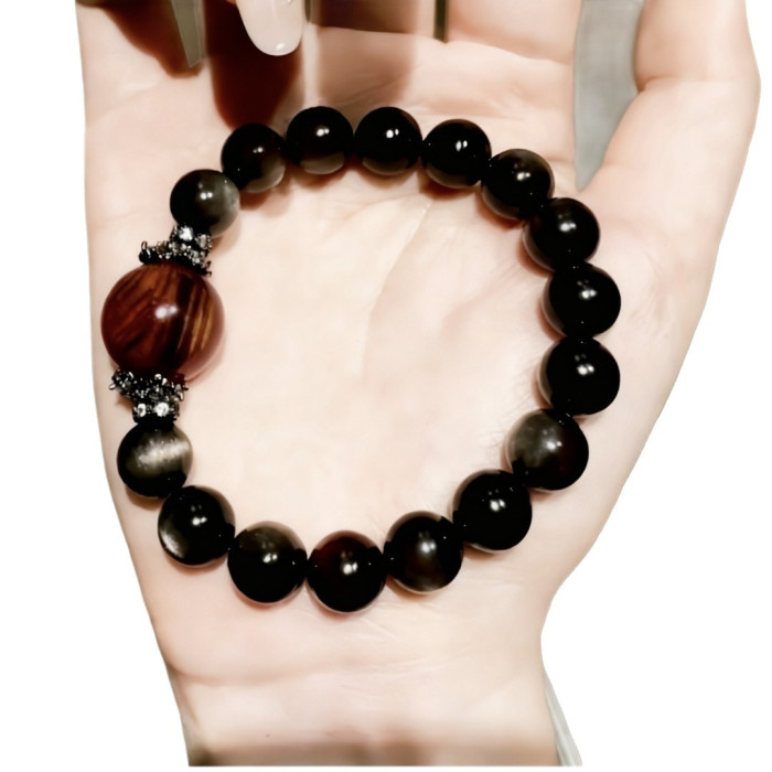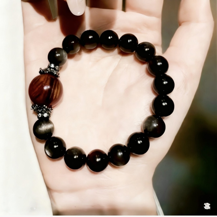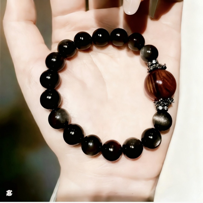 【黑曜權杖】2025天然銀曜石虎眼石水晶手鏈女款原創設計手串手工