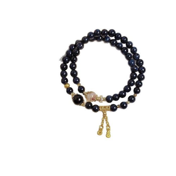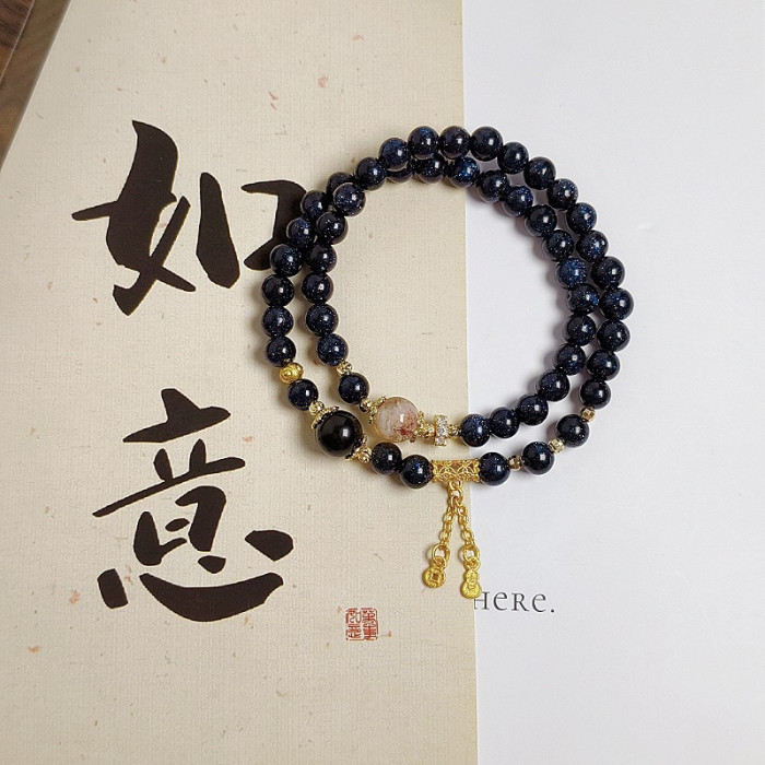 天然淡水珍珠阿拉善瑪瑙雙圈手鏈文藝復古藍砂石簸箕滿福吊墜手飾
