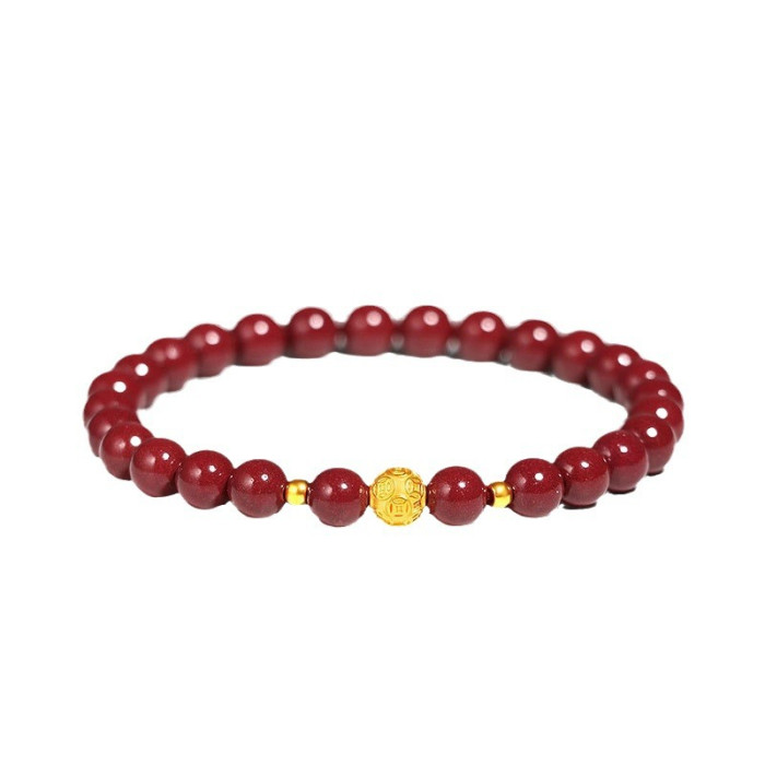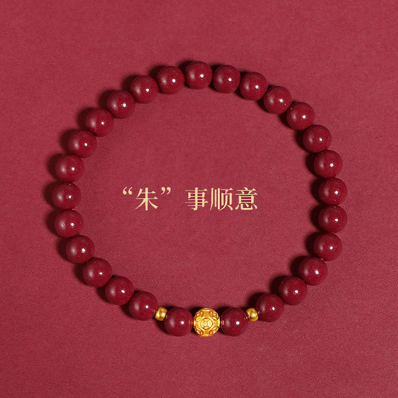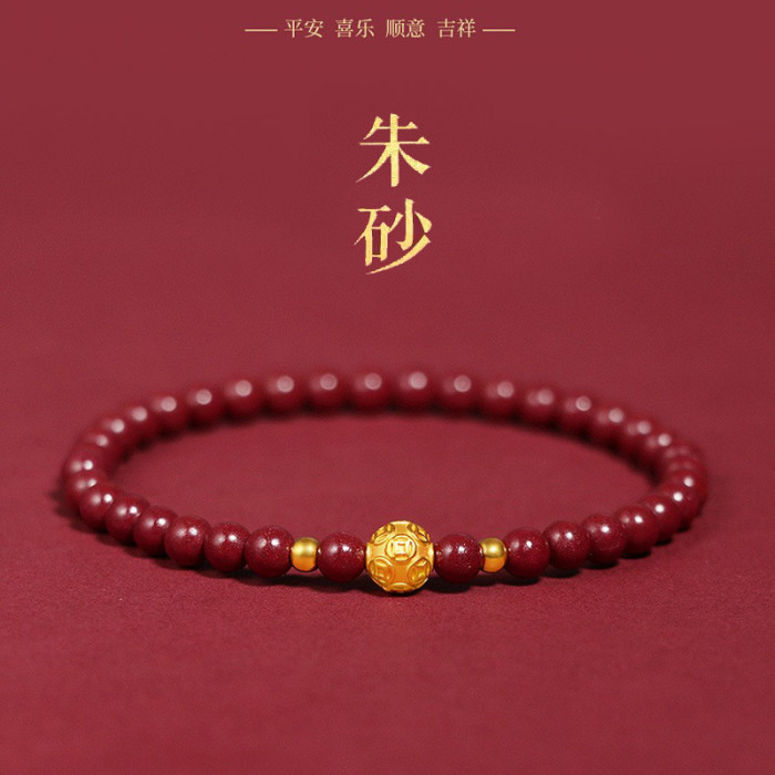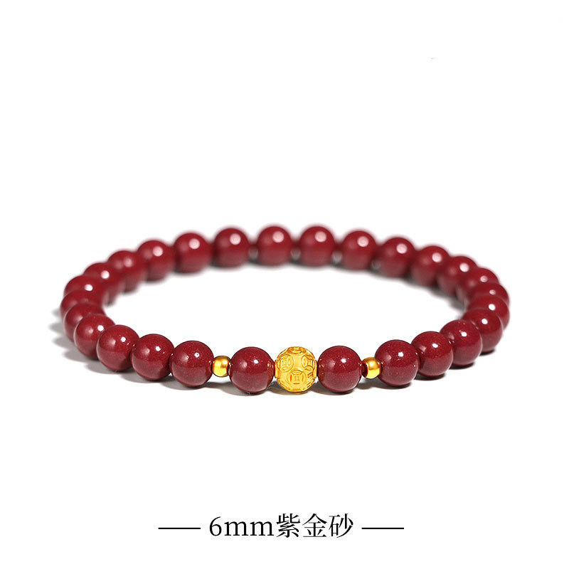 原礦硃砂手串女款錢幣珠沙金龍年本命年紫金砂帝王砂手鏈情侶禮物